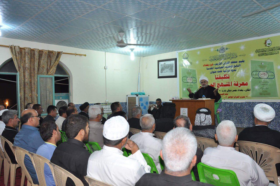 أقام معهد القران الكريم / فرع بغداد التابع للعتبة العباسية المقدسة ندوتهُ القرآنية والتي تحت عنوان (تكليفنا المنهج الحق) والتي اقيمت في في مقر مدرسة اصحاب الكساء (عليهم السلام) لعلوم القرآن في حسينية اصحاب الكساء عليهم السلام في قضاء المدائن جسر ديالى في العاصمة بغداد بعد صلاة العشاء يوم الجمعة ١٣تشرين الاول ٢٠١٧ وحضر الندوة لفيفٌ من الاساتذة وطلاب العلوم الدينية والمهتمين بالشأن القرآني واعتلى المنصة سماحة الشيخ (ضياء الدين ال مجيد الزبيدي) مدير مركز علوم القرآن وتفسيرهُ وطبعه في العتبة العباسية المقدسة حيث ألقى محاضرة مفعمة بالمعلومات القيمة تناولت التعريف بالمنهج الحق وأهميته البالغة للمكلفين وابرز مميزاته كما تمت الإشارة الى ان معهد القران الكريم اصدر مؤخرا كتاباً تحت هذا العنوان والذي كان مطلباً ملحاً للكثير من المؤمنين لكي يكون لهم دليلاً يستفيدون منه في معرفة طريق النجاة من الضلال ويكون لهم مشعلا هاديا على طريق الثقلين وقد تمحورت الندوة في صلب هذا الموضوع الشيق ثم اجاب سماحته على المداخلات المهمة من الفضلاء والأساتذة والحضور. وفِي ختام الندوة قدمت المدرسة درع باسم الندوة لسماحة الشيخ الزبيدي تكريما له على هذا الجهد المميز متمنين عليه تكرار الحضور الى هذه المدرسة لمزيد من الندوات النافعة خدمة للمنهج الحق كتاب الله والعترة الطاهرة عليهم السلام. ومن الجدير بالذكر ان مركز علوم القرآن وتفسيره وطبعيه يقيم العديد من الدورات والندوات القرآنية المثمرة بالإضافة الى استمرار فيوضات مطبوعاته وبحوثه القرآنية والعلمية المثمرة.