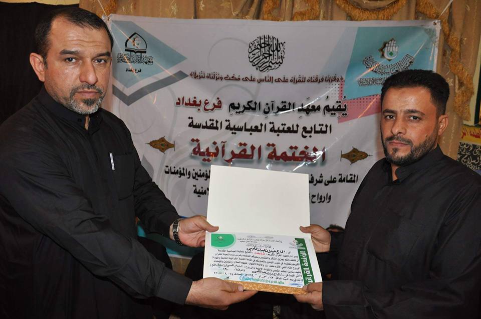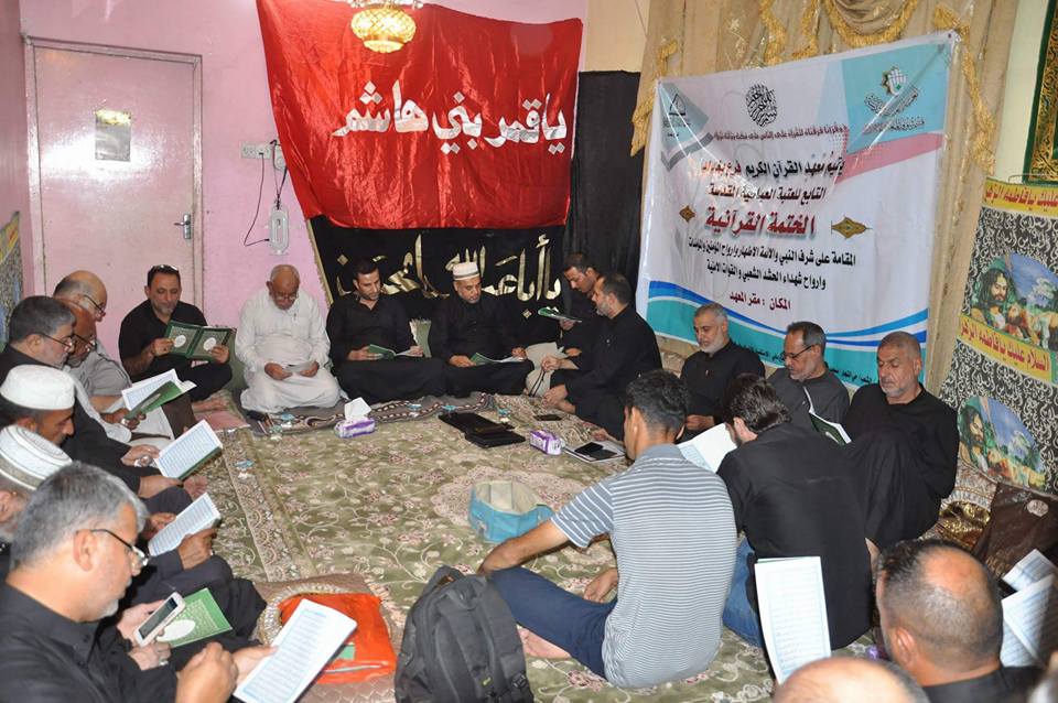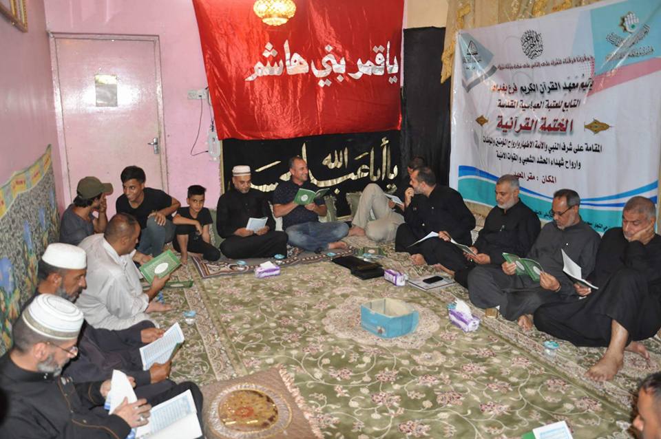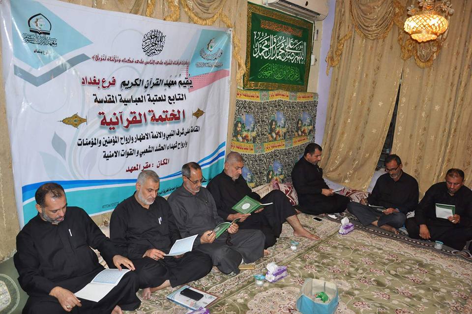 قراءة القرآن الكريم لها من الأجر والثّواب من الله تعالى ما يحمي به العبد المؤمن من عذاب الله فكل حرف يقرأهُ المسلم بحسنة و الحسنة بعشر أمثالها ولختمات القرآن المتزامنة لشهادات اهل بيت ( عليهم السلام) اجر كبير وعظيم ودلالة كبيرة واشارة مهمة تشير الى الرابط القوي بين القرآن الكريم والعترة المباركة من اجل ذلك اقام معهد القران الكريم فرع بغداد التابع لقسم شؤون المعارف الإسلامية والإنسانية في العتبة العباسية المقدسة الختمة القرآنية المرتلة في بيت احد المؤمنين في محافظة بغداد . الختمة هذه مهداة الى الامام علي بن الحسين السجاد (عليه السلام) بذكرى استشهاده الأليمة في الخامس والعشرين من شهر محرم الحرام. اما مسك ختام المائدة الرمضانية فكان عند رفع الايدي بدعاء الفرج والدعاء لقواتنا الأمنية وحشدنا الشعبي المبارك المرابطين في سوح الوغى لمقاتلة التنظيم الإرهابي في عراقنا الحبيب. يذكر ان معهد القرآن الكريم فرع بغداد يقيم العديد من الأنشطة المستمرة من ضمنها الختمات المباركة في ولادات ووفيات الائمة الاطهار (عليهم السلام) للتذكير بالعلاقة الوطيدة بينهم .