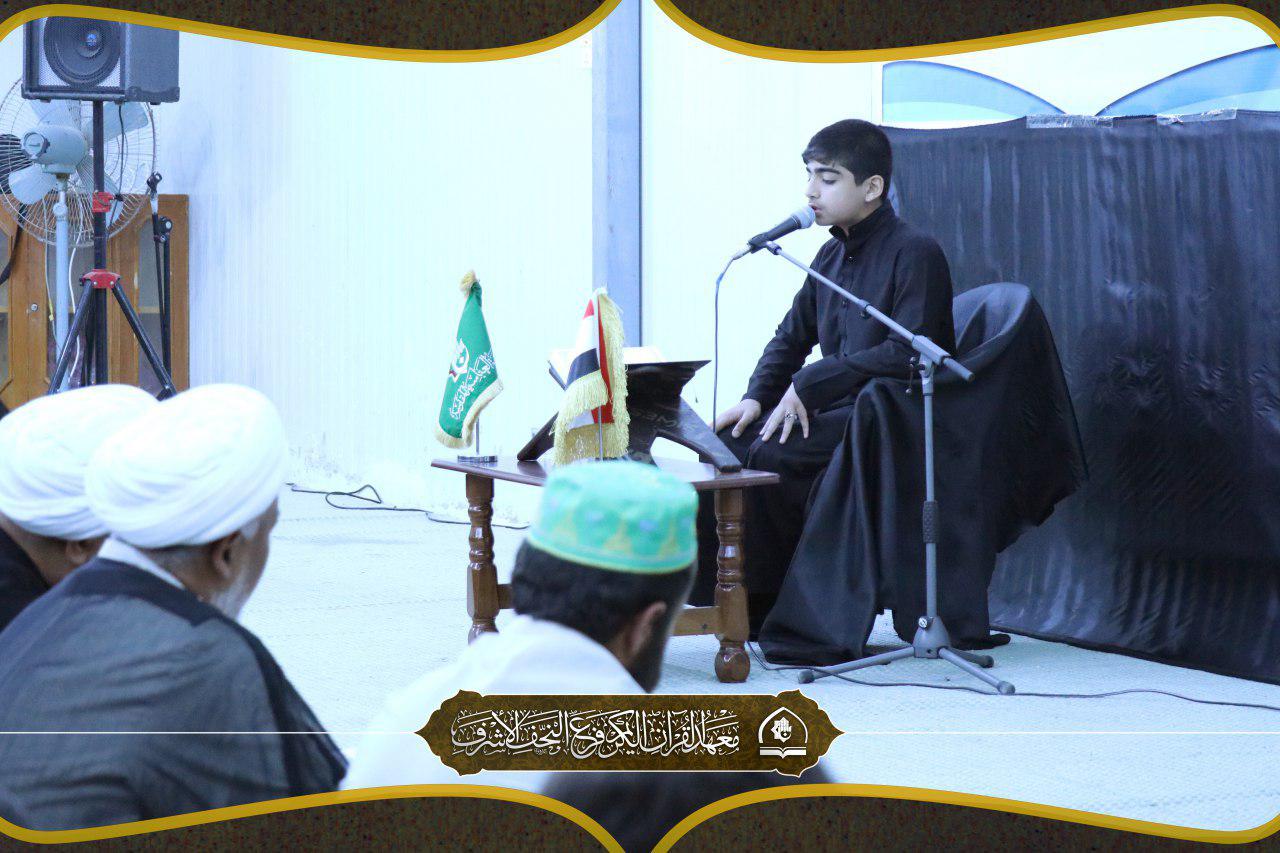 أقام معهد القُرآن الكريم / فرع النّجف الأشرف التابع للعتبة العبّاسيّة المقدّسة محفلاً قرآنيّاً مُباركاً ضمن مشروع المحطّات القُرآنيّة التعليمية في الزّيارة الأربعينيّة الذي تقيمه الهيئة القرآنية العليا في العتبات والمزارات المقدسة حيث افتُتِحُ المحفل بتلاوة مُباركة، تلَتها كلمةُ معتمد سماحة السيد السيستاني (دام ظلُّه) وتضمّن المحفل مشاركة القارئ (البرعم عليّ مسلم) أحد طلبة مشروع أمير القُرّاء الوطني. وفي فقرة الحفظ شارك الحافظ (البرعم صادق يونُس)، وهو من طلبة معهد القرآن الكريم فرع النجف الأشرف. وتخّللت فقرات المحفل أسئلة قرآنيّة طُرحت على الحاضرين ووُزّعت الهدايا على أصحاب الإجابة الصحيحة. وكان لزوار الإمام الحسين (عليه السلام) مشاركة بتلاوة قرآنية عَطِرة، وكان اختتام المحفل بتلاوة عطرة شغفت قلوب السامعين. ومن الجدير بالذكر ان معهد القرآن الكريم التابع للعتبة العباسية المقدسة يقيم العديد من النشاطات الفاعلة والمثمرة فضلاً عن المشاريع الرائدة التي تعتبر الأولى من نوعها على الساحة القرآنية من اجل نشر شذى ربيع القلوب بين أواسط المجتمع