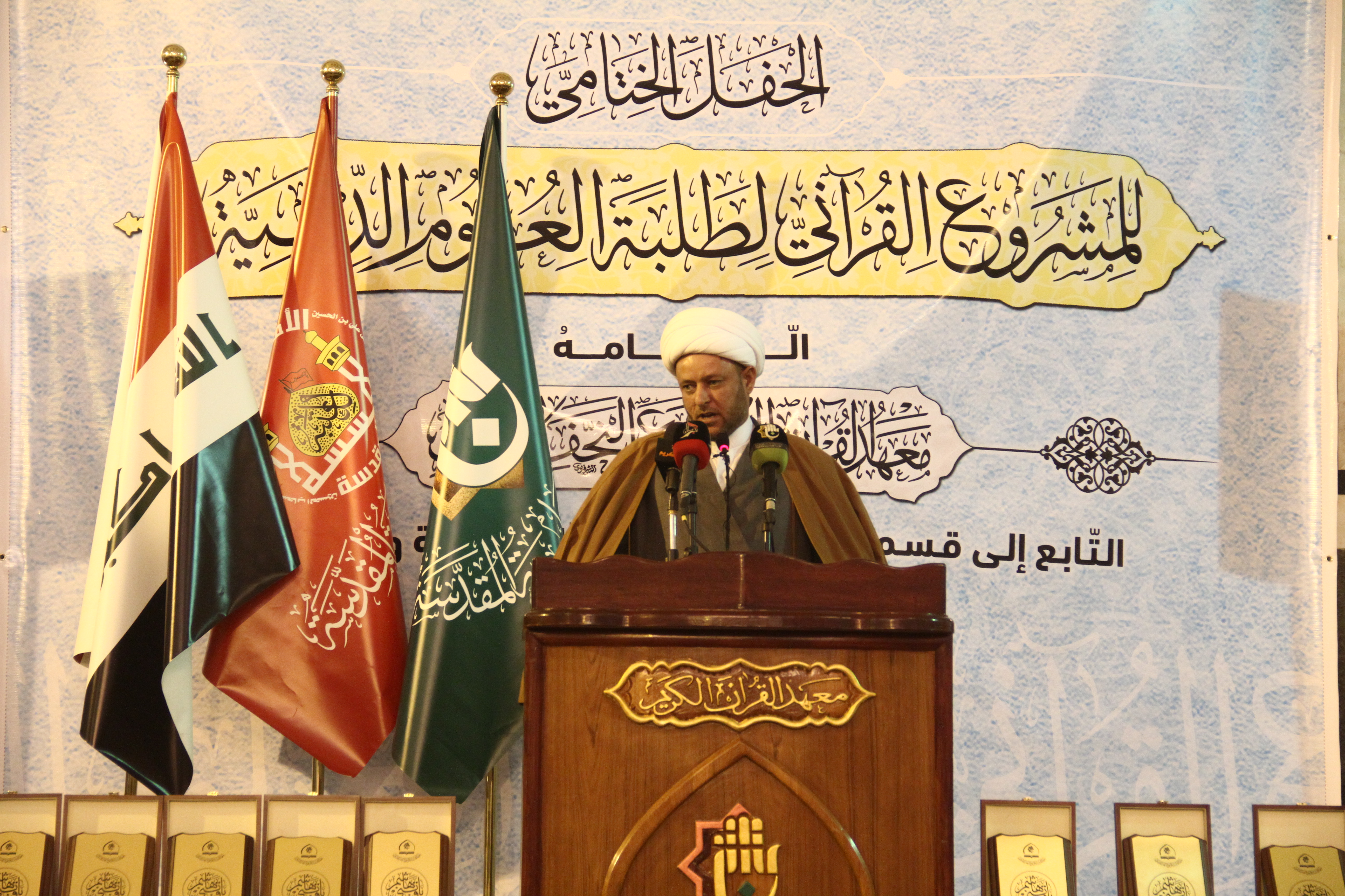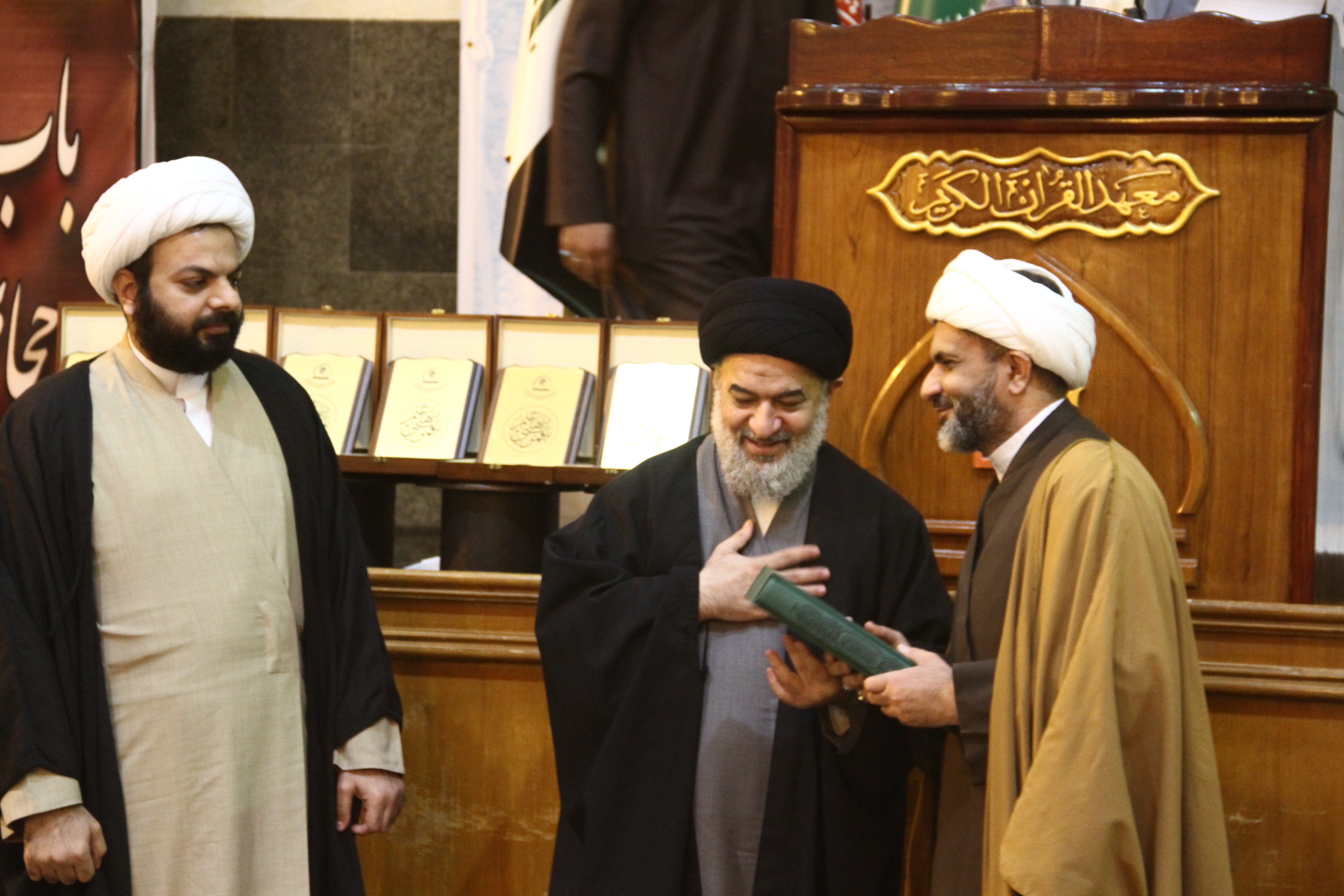 احتضنتْ مدينةُ النجف الأشرف فعاليات الحفل الختامي للمشروع القرآني لطلبة العلوم الدينية في الحوزة العلمية الذي أقامهُ فرعُ معهد القرآن الكريم في المحافظة، جاء هذا الحفل بالتزامن مع ذكرى ولادة سيّد المرسلين النَّبيّ الأكرم محمّد (صلى الله عليه واله) والإمام الصَّادق (عليه السلام) وحضره الكثير من الشخصيات العُلَمائية وفضلاء الحوزة العلمية الشريفة فضلاً عن طلبة العلم المشاركين في المشروع المتفرد من نوعه. الحفل شهد كلمة لمدير معهد القرآن الكريم الشيخ جواد النصراوي: رحَّب خلالها بالحاضرين الكرام من ممثلي المرجعية العليا والسادة الفضلاء ومسؤولي العتبة العباسية المقدسة وخريجي هذا الحفل المبارك، كما بارك ولادة النبي الأكرم والإمام الصادق (صلوات الله عليهم) وترحّم على أرواح شهداء القوات الأمنية والحشد الشعبي ودعا بالشفاء العاجل للجرحى الأبطال. كما استعرض فضيلته جملة من نشاطات المعهد منذ تأسيسهُ إلى هذا اليوم بدءاً بالمشاريع القرآنية الفكرية التي تبناها مركز علوم القرآن وتفسيرهُ وطبعه كطباعة المصحف الشريف ولأول مرة في العراق وبجهود عراقيّة عبَّاسيّة خالصة، وإعداد القرآن بالقلم الناطق الذي سيرى النور قريباً وبأصوات قرّاء عراقيين وتفاسير شيعية، والعمل على تفسير القرآن الكريم بروايات أهل البيت (عليهم السلام) كما اعتمدت بعضُ الجامعات العراقية مناهجَ هذا المركز كمناهج تدريسية مثل جامعة كربلاء، والبصرة، وذي قار. وبعدها جاء دور المشاريع الإقرائية التي منها مشروع الدورات القرآنية الصيفية التي تخرّج منها أكثر من(16.000) طالب، ومشروع أمير القرّاء الوطني للبراعم، ومشروع التلاوة الوطني للكبار، والختمات القرآنية الرمضانية،والمسابقة الفرقية بنسختها الثالثة على التوالي التي شارك فيها اكثر من 10 محافظات عراقية، كما ذكر النصراوي مشروع حفظ القرآن الكريم الذي يشترك فيه اكثر من 500 حافظ للكتاب العزيز، واخيراً مشروع المحطات القرآنية التعليمية في الزيارات المليونية وخلال الزيارة الاربعينية هذا العام كان عدد الذين استفادوا من هذا لمشروع اكثر من (350.000) زائر، وهناك الكثير من المشاريع الرائدة التي رفد بها معهد القرآن الساحةَ القرآنية. وأما عن هذا المشروع لطلبة الحوزات العلمية الذي اشترك فيه أكثر من 130 طالب حوزوي وكانت هذه المرحلة الاولى وبعد النجاح والاقبال ستكون هناك مراحل لاحقة في المحافظات الاخرى إن شاء الله كما قدم الشيخ النصراوي شكرهُ إلى كل من ساهم في انجاح هذا المشروع المبارك. وجاء بعد ذلك كلمة لسماحة المتولي الشرعي للعتبة العباسية المقدسة السيد احمد الصافي (دام عزه) رحب فيها بالجميع وأثنى على الجهود القرآنية المميزة التي يبذلها معهد القرآن الكريم، ولقراءة الكلمة كاملة من خلال الرابط الآتي:http://mk.iq/view2.php?id=2413 وجاء بعدها عرض فيلم وثائقي مفصّل للمشروع القرآني لطلبة العلوم الدينية وأكّد في هذا العرض أن من أهم المرتكزات التي يعتمد عليها طالب العلوم الدينية حتى يكون مبلغاً او خطيباً او إمام مسجد هي اتقان القراءة الصحيحة للقرآن الكريم عموماً وللصلاة خصوصاً فقد وفد الى هذا المشروع طلبة العلوم الدينية سواء من العراق أو خارجه. وشهد الحفل ابتهالات وتواشيح دينية في ذكرى ولادة الرسول الأكرم (صلى الله عليه وآله) والإمام الصادق(ع) بصوت الخطيب الشيخ (جعفر الدجيلي). وفي ختام الحفل تم تكريم الطلبة المشاركين في هذا المشروع المبارك وكل من ساهم في انجاحه.