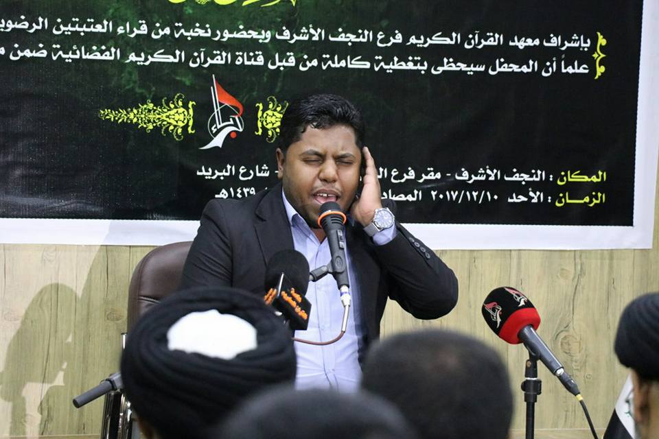 ضمن مشروع (منابر النّور) وتزامُناً مع أيّام ذكرى المولد النّبويّ الشّريف وابتهاجاً بانتصار أبطال العراق الميامين وطرد الدّواعش التّكفيريّين: أقام مركزُ المشاريع القُرآنيّة في معهد القُرآن الكريم التّابع للعتبة العبّاسيّة المُقدسة محفلاً قُرآنيّاً بمشاركة نخبة مِن قُرّاء العتبتين المقدّستين الرّضويّة والعبّاسيّة، وذلك في مقرّ معهد القُرآن الكريم فرع النّجف الأشرف. افتُتِحَ المحفلُ بتلاوةٍ عطرة للقارئ السّيّد أحمد الزّامليّ (مسؤول وحدة التّلاوة في معهد القرآن الكريم فرع النجف الأشرف ). تبعها وقوف الحاضرين لإهداء ثواب قراءة سورة الفاتحة إلى أرواح شهداء العراق وأبطالِهِ الّذين ضحّوا من أجل الحفاظ على وطنهم وأعراضِ مُواطِنيه ومُقدّساتِهم. ثُمّ استمع الحاضرون إلى تلاوةٍ عطرةٍ بصوت الأستاذ السّيّد حسنين الحلو (قارئ العتبة العبّاسيّة المقدّسة). تلتها فقرة إبتهالات في حُبّ النّبيّ وآله الأطهار بصوت القارئ والمبتهل (قاسم الجبوريّ). وكان مسكُ الختام تلاوة مباركة بصوت السّيّد محمّد جواد حُسينيّ (قارئ العتبة الرّضويّة المقدّسة). كان هذا وسط حضور قرآنيّ مُميّز من مختلف شرائح المجتمع، وبدا على الحاضرين الإنصاتُ والتّخشُّعُ عند استماعهم لآيات القرآن الحكيم. الأحد 21 ربيع الأوّل 1439 هـ