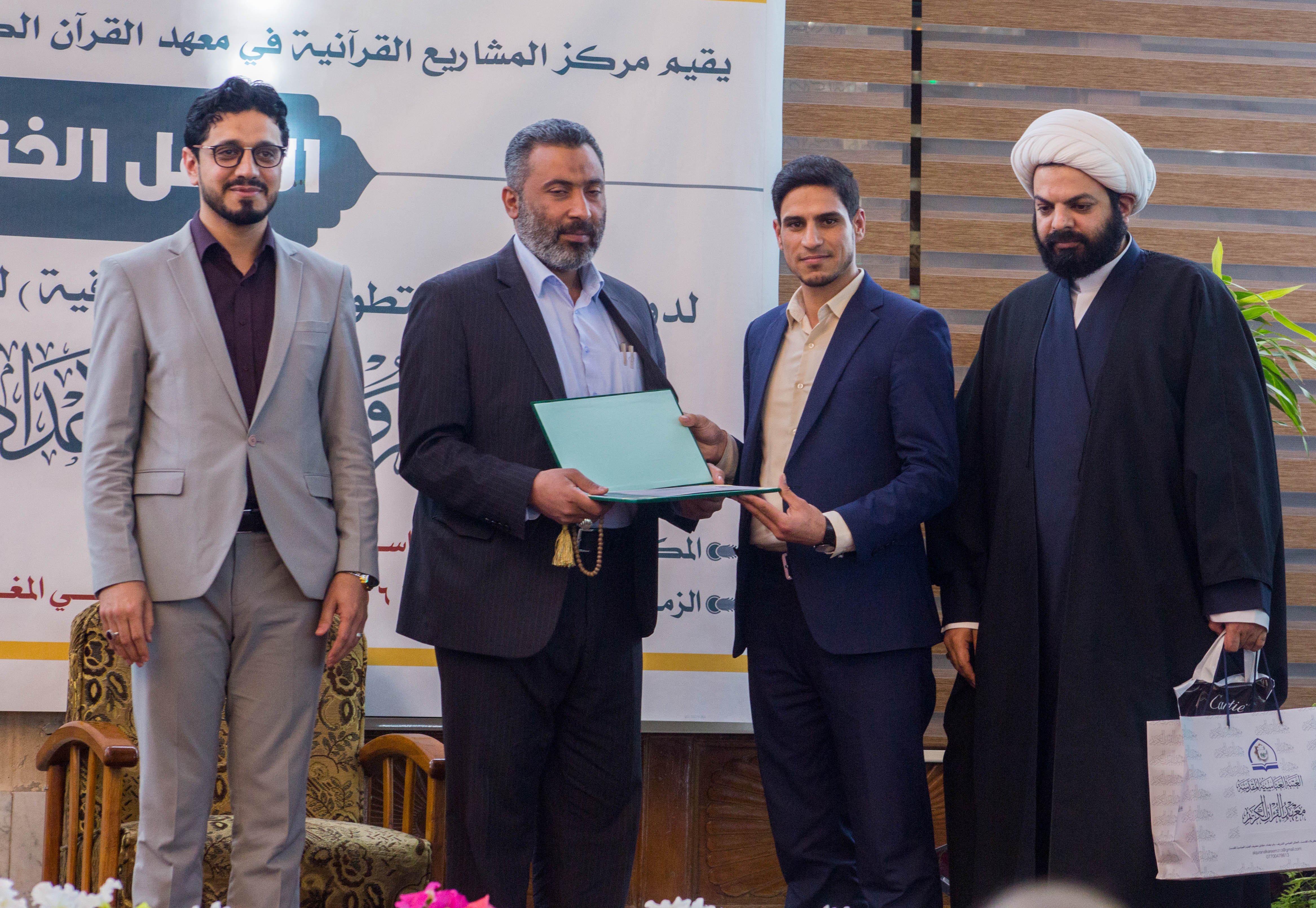 اختتم مركز المشاريع القرآنية التابع لمعهد القرآن الكريم في العتبة العباسية المقدسة اليوم الجمعة 16/2/2018م دورات التلاوة (التطويرية والاحترافية) للمدة الربيعية ضمن المشروع الوطني لإعداد القرّاء في العراق التي استمرت خمسة عشر يوماً وحاضر فيها نخبة من الأساتذة. حفل الختام أقيم في رحاب الصحن العبّاسيّ المُطهّر، حيث شهدت فعالياته حضورا كبيرا، افتتحت بتلاوة عطرة شنّفت أسماع الحاضرين تلاها القارئ (محمد زليف) أحد طلبة المشروع. فيما تلتها كلمة معهد القرآن الكريم ألقاها مديره الشيخ جواد النصراوي التي رحب فيها بالحاضرين كما بارك للطلبة المشاركين تخرجهم وأثنى على الجهود المبذولة من مركز المشاريع القرآنية. مضيفاً: أن العتبة العباسية المقدسة نحت منحى التخصص في كل مجالاتها سواء أكانت العمرانية أم المدنية أم الفكرية وغيرها من المجالات ومنها النشاطات القرآنية، فمعهد القرآن الكريم هو الجهة الوحيدة المتخصصة بالنشاطات القرآنية في جميع مجالاتها وتفرعاتها، فهذا المعهد المبارك امتدت نشاطاته إلى أغلب المحافظات العراقية سواء أكانت هذه النشاطات في مجال حفظ القرآن الكريم أم في التلاوة أم الدراسات القرآنية، ففي مجالات الحفظ هناك أكثر من (500) طالب يسعون لحفظ الكتاب من خلال دورات المعهد، وفي مجال الدراسات القرآنية هناك مركز متخصص في معهد القرآن الكريم هو مركز علوم القرآن وتفسيره وطبعه الذي أنجز ولله الحمد ولأول مرة في العراق طباعة المصحف الشريف بجهود عراقية وعباسية خالصة وأنجاز آخر أيضا هو (القلم الناطق بالقرآن والتفسير) الذي سيرى النور قريباً وبأصوات قرآنية مشهورة وتفاسير أهل البيت (عليهم السلام). أما من جانب المحافل والتلاوات والمشاريع القرآنية المميزة فهنالك مركز متخصص وهو مركز المشاريع القرآنية فقد أقام نشاطات ومشاريع متعددة، أذكر منها المسابقة الفرقية ومشروع أمير القرّاء الذي وصل صداه إلى أغلب الدول، والذي اشتراك طلبته في مسابقات دولية عدة وحازوا على مراتب متقدمة في تلك المسابقات، أما في هذا المشروع الذي نحن في صدد ختام نسخته الثالثة وهو المشروع الوطني لإعداد القرّاء في العراق الذي حصل على الريادة من نقابة القرّاء في جمهورية مصر العربية وتم إعداده على وفق منهج علميّ صحيح وبإشراف أساتذة دوليين مختصين يقدمون المعلومة بشكل احترافي إلى الطلبة المشاركين، وما يميز هذا المشروع عن بقية المشاريع الأخرى أن طلبته قصدوا كربلاء المقدسة من مختلف المحافظات العراقية. وفي ختام كلمته شكر الشيخ النصراوي كل من ساهم في انجاح هذه المشاريع القرآنية المباركة وعلى رأسهم سماحة المتولي الشرعي للعتبة العباسية المقدسة السيد أحمد الصافي (دام عزه) وأعضاء مجلس الإدارة في العتبة المقدسة وجميع الجهود المبذولة في معهد القرآن الكريم من أجل خلق جيل يستنير بكلمات كتاب الله العزيز. جاءت بعدها تلاوة جماعية لمدرسة الشيخ مصطفى إسماعيل تلاها طلبة مشروع أمير القرّاء الوطني. كما تضمن الحفل كلمة لأساتذة تلك الدورات قدمها الأستاذ والمدرب الدولي (عباس أنجام) من إيران بيّن فيها أن هذا الإنجاز وهذا التطور الذي شاهدناه من طلبة العراق في مجال التلاوة فوق تصورنا، ونأمل من الله سبحانه وتعالى أن سنوات القادمة تجعل من العراق الأول في مجال القرآن ببركة هذه الجهود المبذولة والطاقات والقابليات عند الشباب. أما مسك الختام فكان مع تلاوة للقارئ أحمد جمال من محافظة ذي قار. وفي ختام الحفل وُزعت الشهادات التقديرية على أساتذة المشروع وشهادات المشاركة للطلبة المشاركين في المشروع.