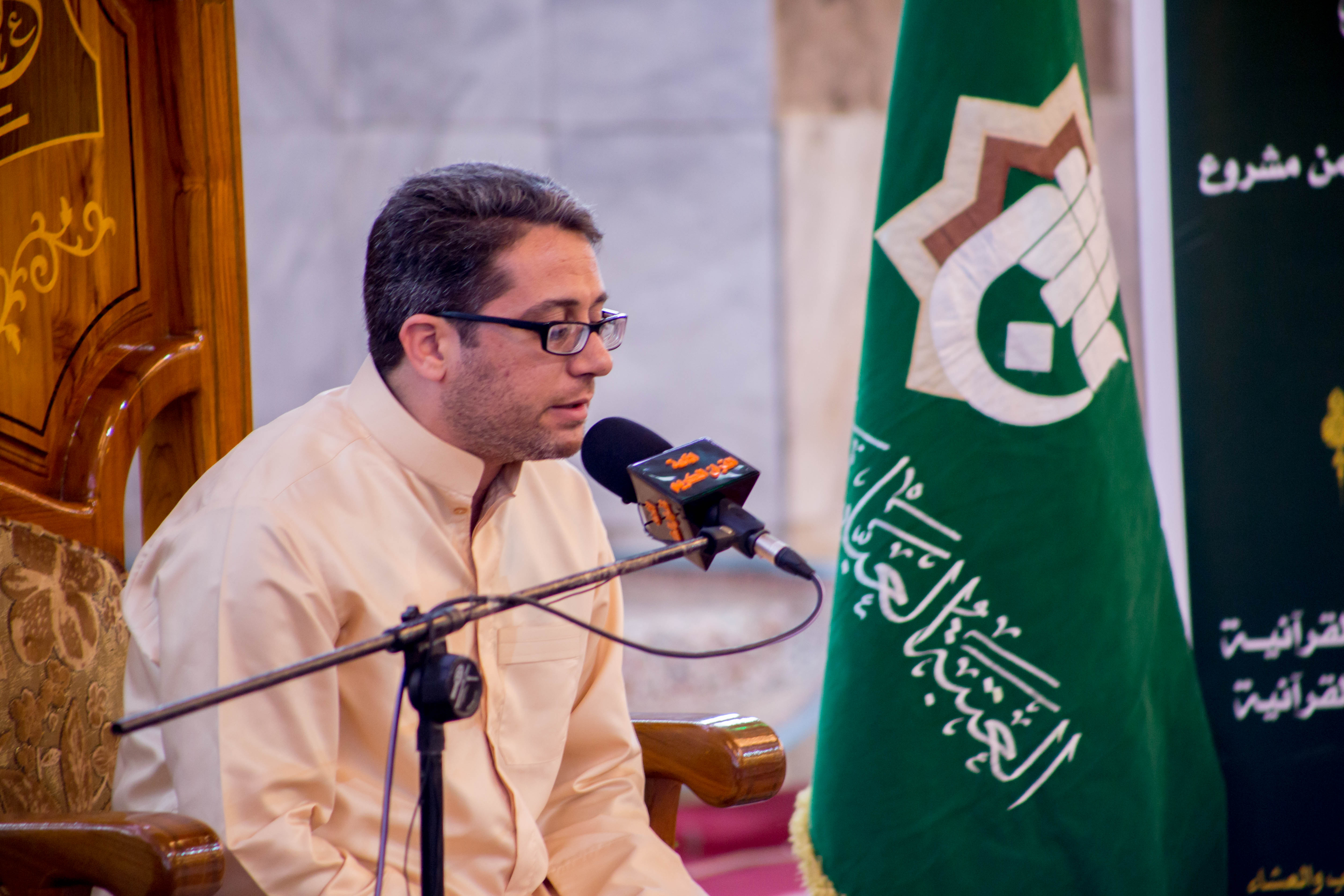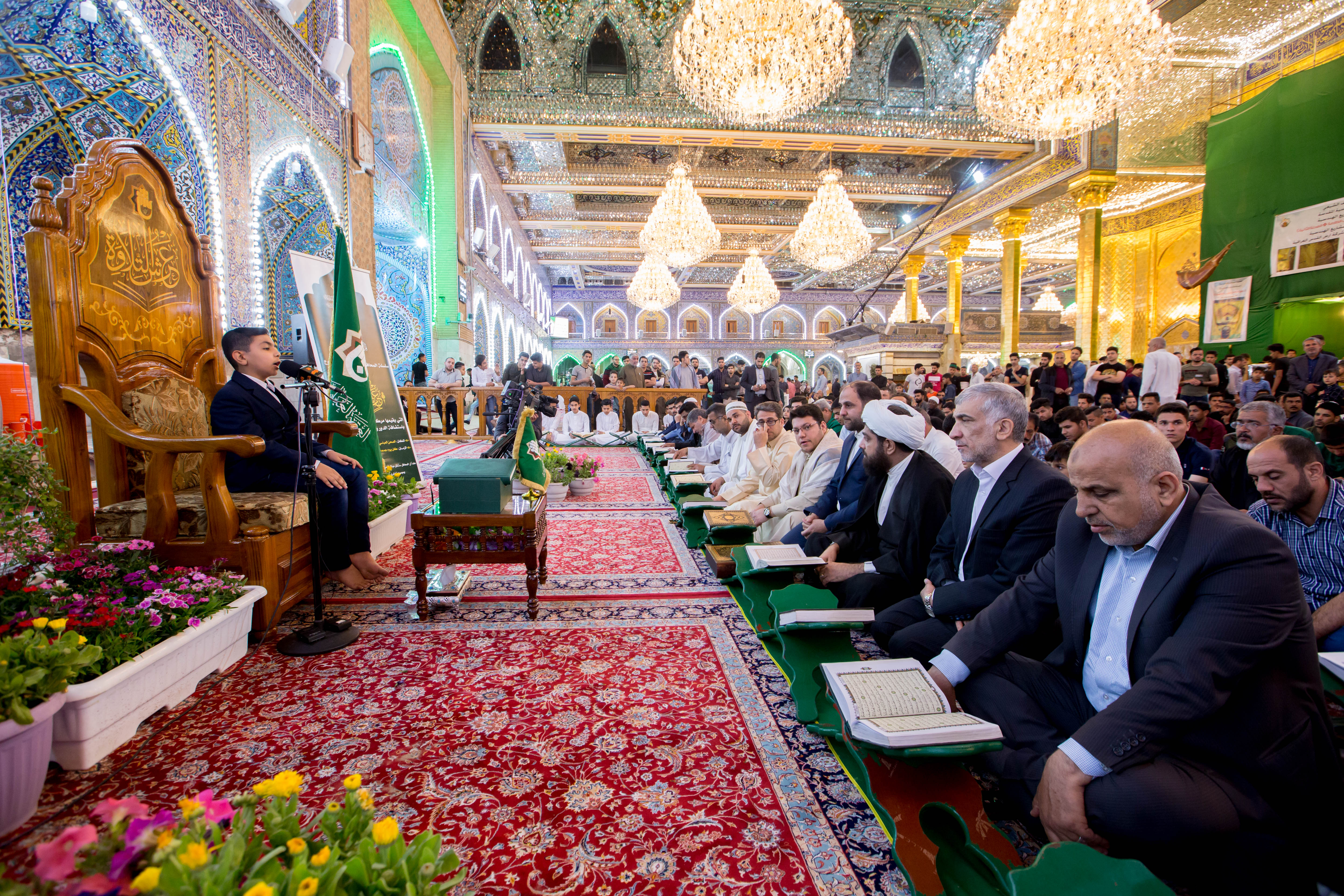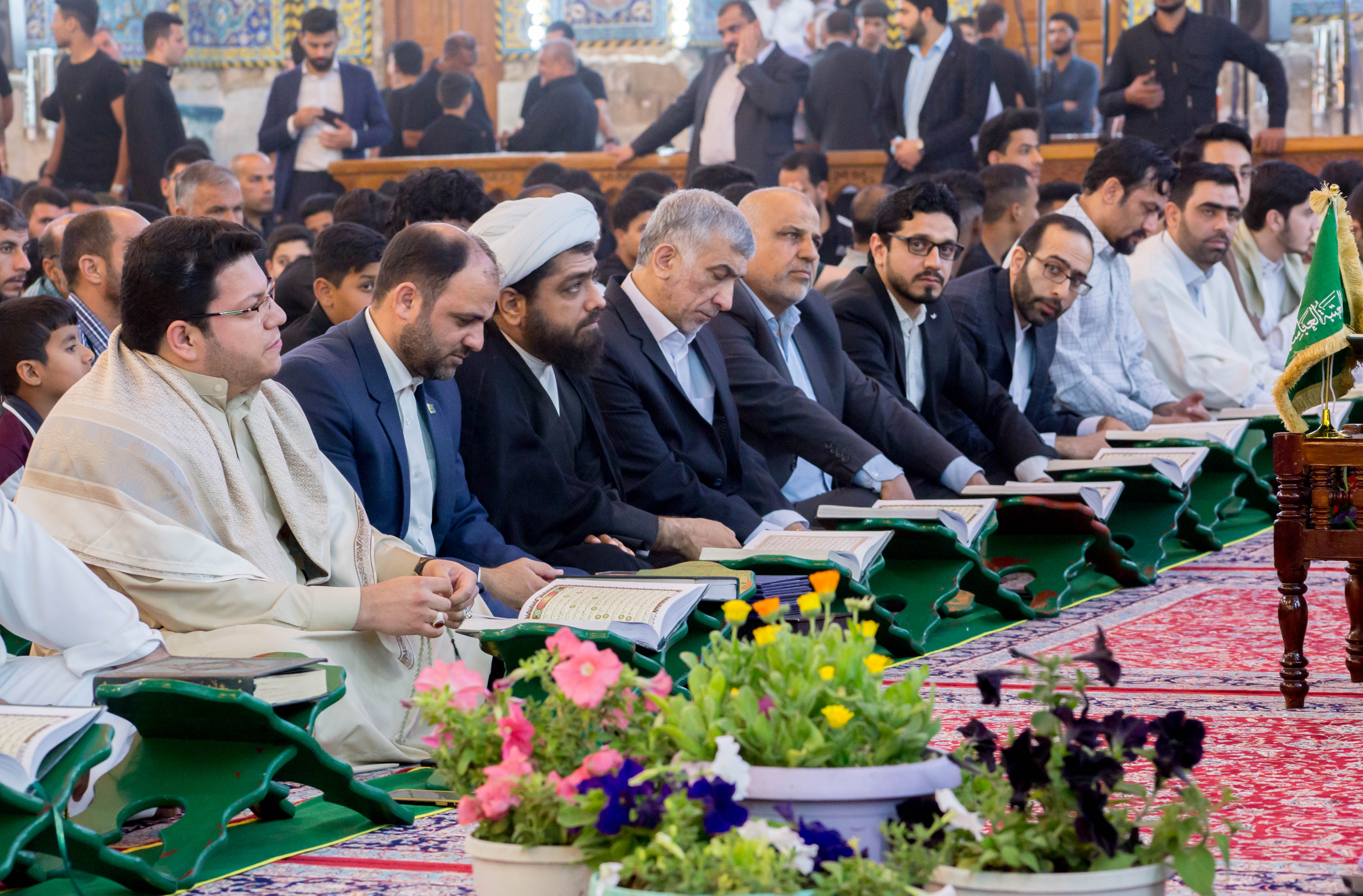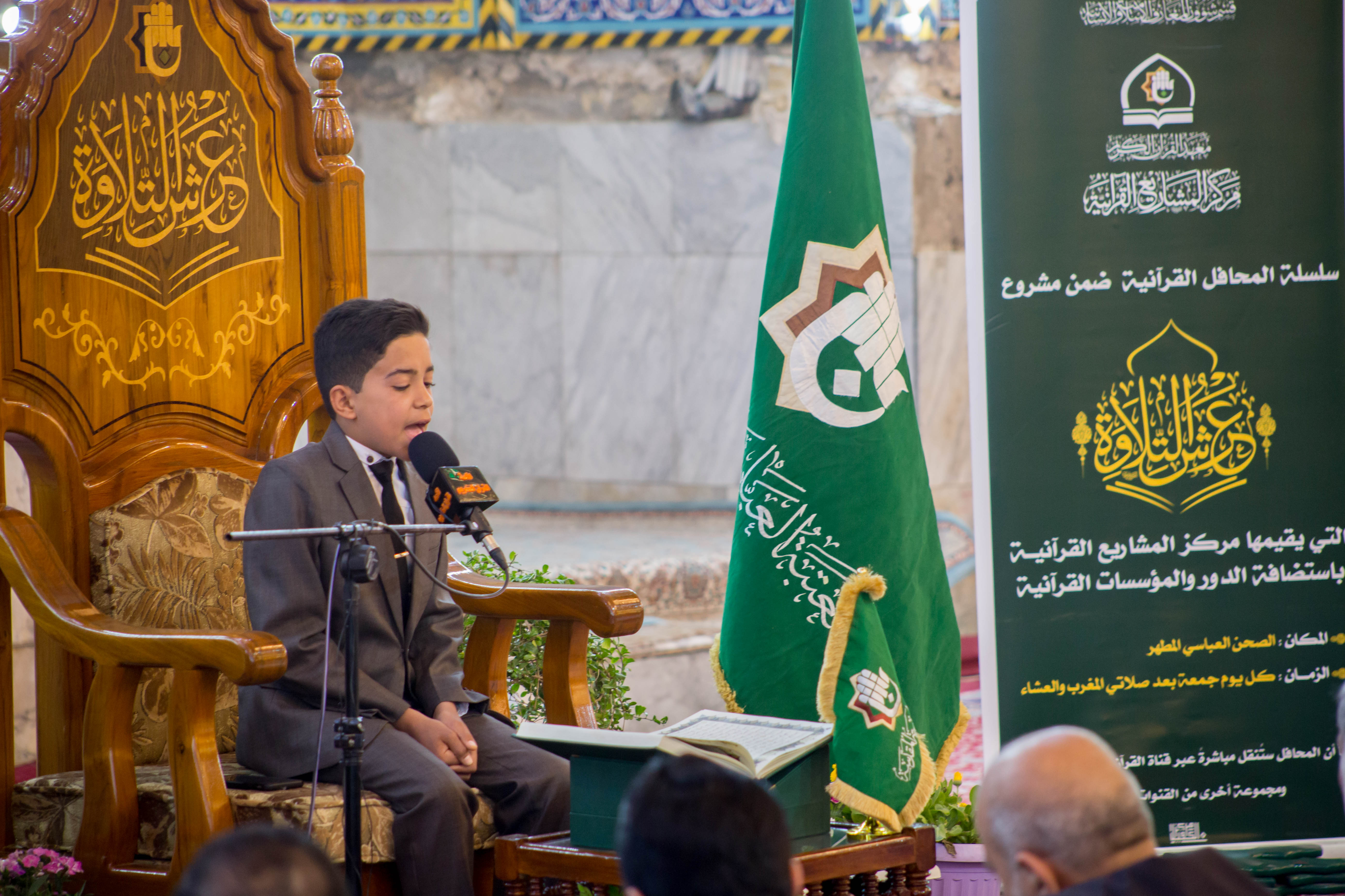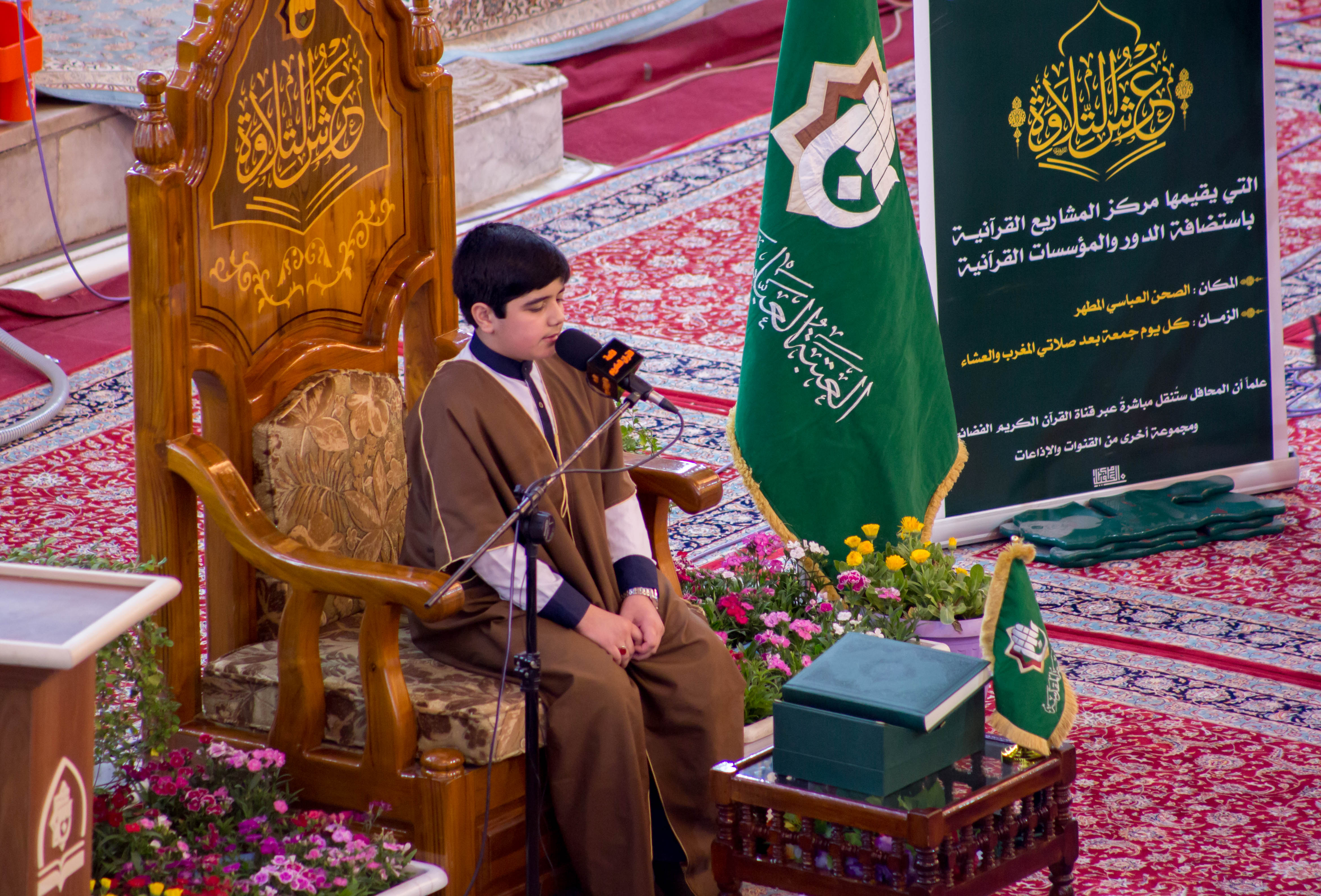 أقام مركز المشاريع القرآنية في معهد القران الكريم التابع للعتبة العباسية المقدسة محفله القرآني الثاني ضمن مشروع (عرش التلاوة) في الصحن العباسي المطهر وبحضور معاون وزير الثقافة والإرشاد الإسلامي في إيران (الدكتور فقهي زادة) وعدد من مسؤولي العتبة العباسية المقدسة، وايضاً وفد توأم مشروع أمير القراء الوطني في إيران (مشروع التلاوة الوطني) وجمع غفير من زائرين مرقد ابي الفضل العباس (عليه السلام). افتتح المحفل بتلاوة عطرة وعلى الطريقة العراقية تلاها الموهوب (محمد عباس) أحد طلبة مشروع أمير القراء الوطني، جاء بعدها تلاوة للبرعم الإيراني (محمد صادق صارمي) أحد براعم الوفد الضيف، تلتها تلاوة شنفت اسماع الحاضرين تلاها القارئ الدولي من جمهورية إيران (وحيد نظريان)، فيما جاء بعدها تلاوة للموهوب من أمير القراء (علي مرتضى)، وكان مسكاً للختام القارئ الإيراني الدولي (حامد علي زادة). وفي ختام الحفل تم توزيع الشهادات التقديرية على وفد توأم مشروع أمير القراء الوطني. يذكر أن مشروع (عرش التلاوة) الذي أطلقه مركز المشاريع القرآنية في معهد القرآن الكريم التابع للعتبة العباسية المقدسة مؤخراً يقام مساء كل يوم جمعة في رحاب الصحن العباسي المطهر ويستضيف عددٌ من القراء الدوليين.