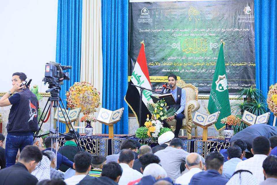 أقام مركز المشاريع القرآنية في معهد القرآن الكريم التابع للعتبة العباسية المقدسة محفلهُ الأسبوعي ضمن (مشروع منابر النور) وبالتعاون مع دار القرآن الكريم في قضاء عفك بمحافظة الديوانية، وبمشاركة نخبة من كبار قرّاء إيران وطلبة الهيئة التنفيذية لمشروع التلاوة الوطني التابع لوزارة الثقافة والإرشاد الإسلامي في إيران توأم مشروع أمير القرّاء الوطني. وقد أُفتتح الحفل بتلاوة لقارئ العتبة العباسية المقدسة ليث العبيدي، تلتها تلاوة للقارئ الإيراني محسن رشيدي أحد أعضاء الوفد الضيف. ومن ثم تلاوة للقارئ إسحاق العطية أحد طلبة الدورة الإحترافية الثانية في المشروع الوطني لإعداد القرّاء في العراق، بعدها تلاوة لقارئ العتبة الرضوية المقدسة حسين بور كوير. أما مسك ختام التلاوات فكان مع البرعم علي مرتضى أحد طلبة مشروع أمير القراء الوطني. وقد حضر الحفل مدير معهد القرآن الكريم التابع للعتبة العباسية المقدسة الشيخ جواد النصراوي وجمعٌ غفيرٌ من المهتمين بالشأن القرآني في القضاء. يذكر أن مركز المشاريع القرآنية أقام ضمن مشروعه منابر النور العديد من المحافل القرآنية في أقضية ونواحي معظم مدن عراقنا الحبيب والحضور الكبير سمته البارزة.