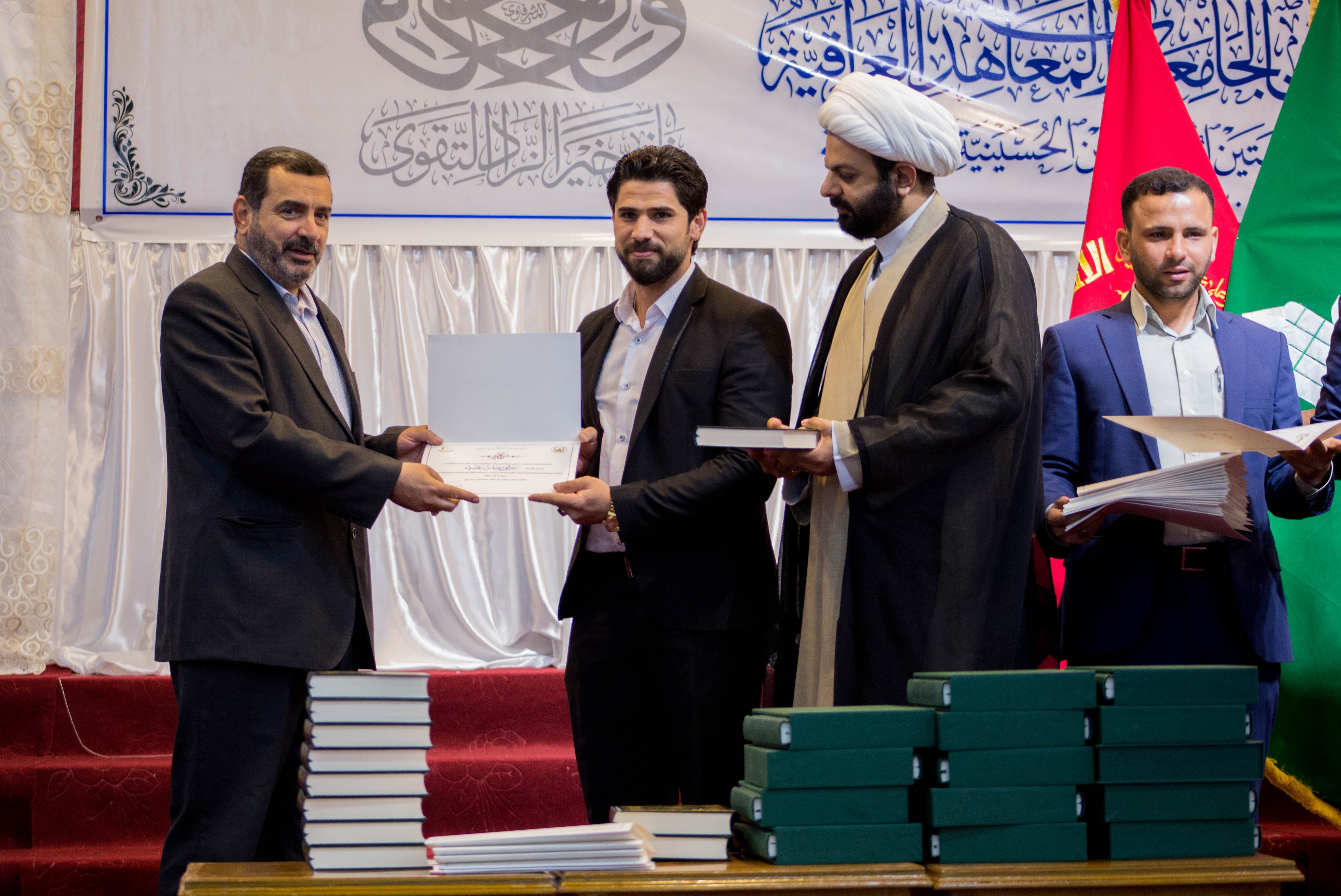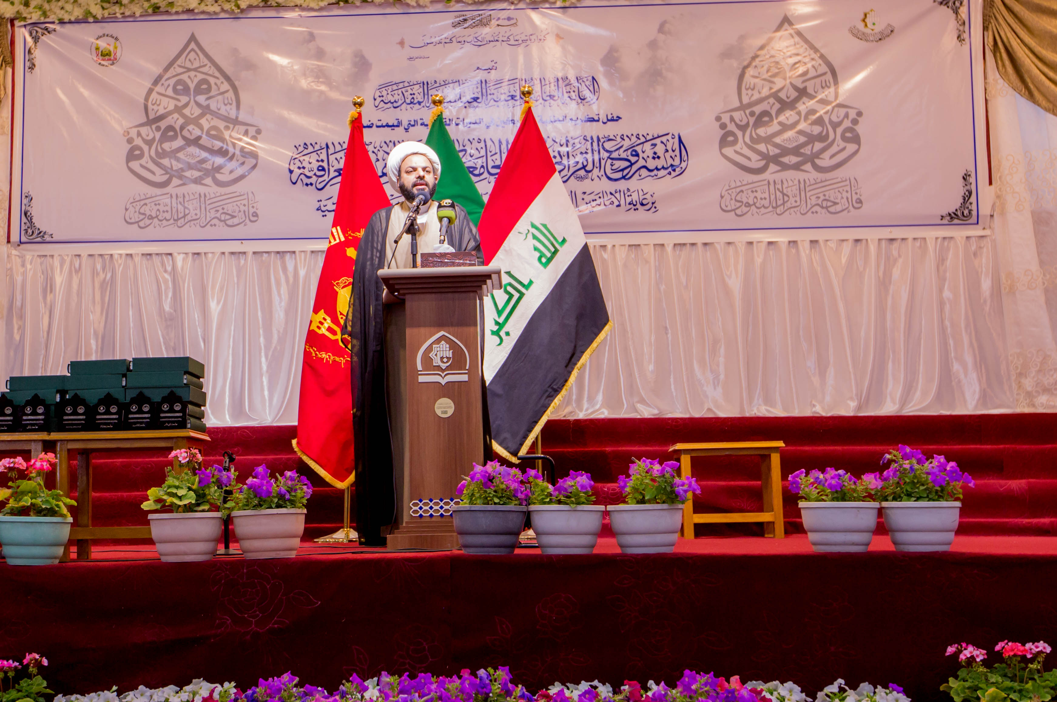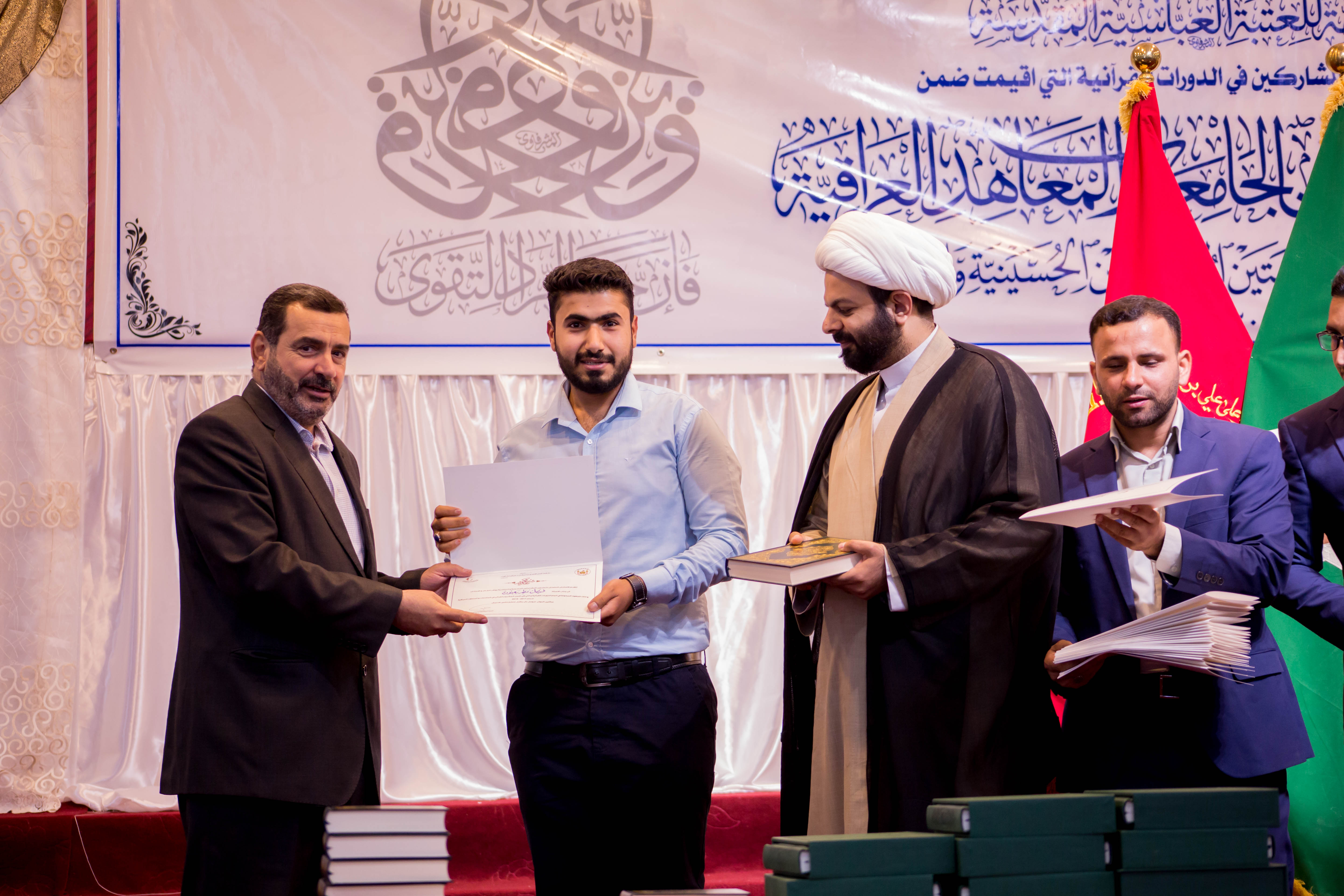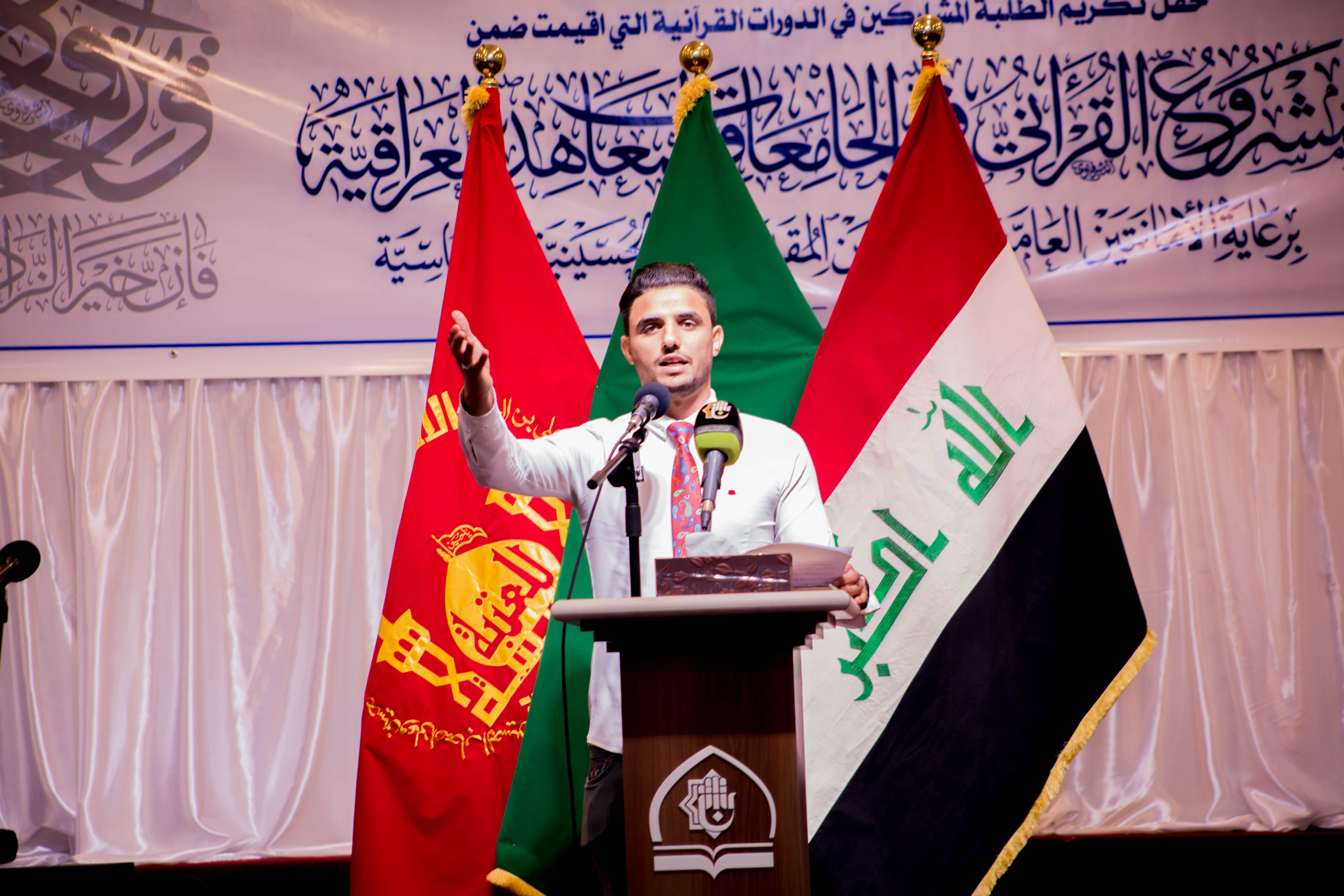 اختتمت العتبةُ العبّاسيّة المقدّسة المشروعَ القرآنيّ في الجامعات والمعاهد العراقية الذي أقامته الأمانتان العامتان للعتبتين المقدستين الحسينية والعباسية، متمثلة بمعهد القرآن الكريم التابع لقسم شؤون المعارف الإسلامية والإنسانية فيها، الذي شارك فيه أكثر من 1000 طالب وطالبة من عموم جامعات ومعاهد العراق الحبيب. افتتح الحفل بتلاوة مباركة شنّفت اسماع الحاضرين تلاها القارئ (هشام جهاد) أحد طلبة هذا المشروع المبارك، فيما تلتها قراءة سورة الفاتحة المباركة على أرواح شهداء العراق الأبرار. جاء بعد ذلك كلمة الأمانة العامة للعتبة العباسية المقدسة ألقاها أمينها العام المهندس السيد محمد الأشيقر-دام توفيقه- التي بارك فيها للحاضرين المبعث النبوي الشريف، قائلا: تزامناً مع هذه الذكرى المباركة ارتأت العتبة المقدسة متمثلة بمعهد القرآن الكريم أن تزف لنا مجموعة من الوجوه النيرة من الطلبة المشاركين بهذا المشروع القرآني المبارك. مضيفاً: أن العتبة العباسية المقدسة اعتنت بالعديد من النشاطات ومن أهم نشاطاتها واهتماماتها هي خدمة الزائرين الكرام وايضاً المشاريع الفكرية والإنسانية والثقافية اما النشاطات القرآنية فأولتها العتبة كل العناية خدمة للثقلين الشريفين الكتاب والعترة الطاهرة. مؤكداً: أن الكتاب العزيز هو الدستور الإلهي العظيم الذي ينبغي أن نعتز ونتمسّك به وهذا النشاط والاهتمام والتمسك من الشباب الواعي الذي نراه الآن يبعث فينا روح الامل، فلا يسعنا إلا أن نبارك لكم هذه الجهود القرآنية المباركة والنجاح المستمر، ولزم أمور وزمام هذا البلد المعول عليكم وخير مثال على ذلك اخوانكم في القوات الأمنية والحشد الشعبي رحم الله الشهداء منهم وحفظ الابطال ومنّ على جرحانا بالشفاء العاجل إن شاء الله. تلتها كلمة معهد القرآن الكريم ألقاها مديره الشيخ جواد النصراوي التي رحب فيها بالحضور ومسؤولي العتبة العباسية المقدسة وبارك لهم ذكرى المبعث النبوي الشريف، وأستعرض خلال كلمته عددا من المشاريع القرآنية التي يقيمها معهد القرآن الكريم. مبيناً: أن العتبة العباسية المقدسة أولت القرآن الكريم عناية كبيرة وجعلته من الأولويات إذ لا يُقدم نشاط إلا وكان الرد بالموافقة والتشجيع والاهتمام وطلب الزيادة من المشاريع القرآنية المباركة، فمعهد القرآن الكريم أقام الكثير من النشاطات والمشاريع وكان كل واحد منها يستهدف شريحة معينة من المجتمع من أجل تجذير هذه الثقافة عند الجميع والتي منها: مشروع الدورات القرآنية الصيفية الذي استهدف أكثر من 16000 طالب خلال العام الماضي والمشروع القرآني لطلبة العلوم الدينية الذي استهدف طلبة الحوزة العلمية وايضاً المشروع الوطني لإعداد القرّاء في العراق، ومشروع أمير القرّاء الذي استهدف البراعم ومشروع تحفيظ القرآن الكريم وهو خاص بحفظ الكتاب العزيز الذي استهدف كل الفئات والمستويات وايضاً مشروع المحطات القرآنية في الزيارة الاربعينية الذي استهدف جميع الفئات والمستويات وكان عدد المستفيدين خلال الأعوام الماضية اكثر من 400,000 زائر ولا ننسى هذا المشروع الذي نحن في صدد ختامه الذي استهدف اهم شريحة في المجتمع وهم طلبة الجامعات والمعاهد العراقية والمشترك فيه اكثر من 1000 طالب وطالبة علماً أن هذا المشروع هو مشترك بين الامانتين العامتين للعتبتين المقدستين الحسينية والعباسية. مضيفاً: في السنوات القادمة ستكون هناك ندوات قرآنية تعالج المشكلات والاشكاليات في الحرم الجامعي ومنها الالحاد وترك التقليد وهذه من أخطر الإشكالات التي تهدد عقيدة الفرد المسلم وعلى غرار ذلك سنقيم ندوات وبحوث علمية يديرها خيرة أساتذة الحوزة العلمية رداً على هذه الإشكالات، كما شكر كل من ساهم في إنجاح هذا المشروع القرآني المبارك وعلى رأسهم سماحة المتولي الشرعي للعتبة العباسية المقدسة السيد أحمد الصافي -دام عزه- والأمين العام للعتبة المقدسة السيد محمد الاشيقر والسادة أعضاء مجلس الإدارة وإدارة قسم شؤون المعارف ا