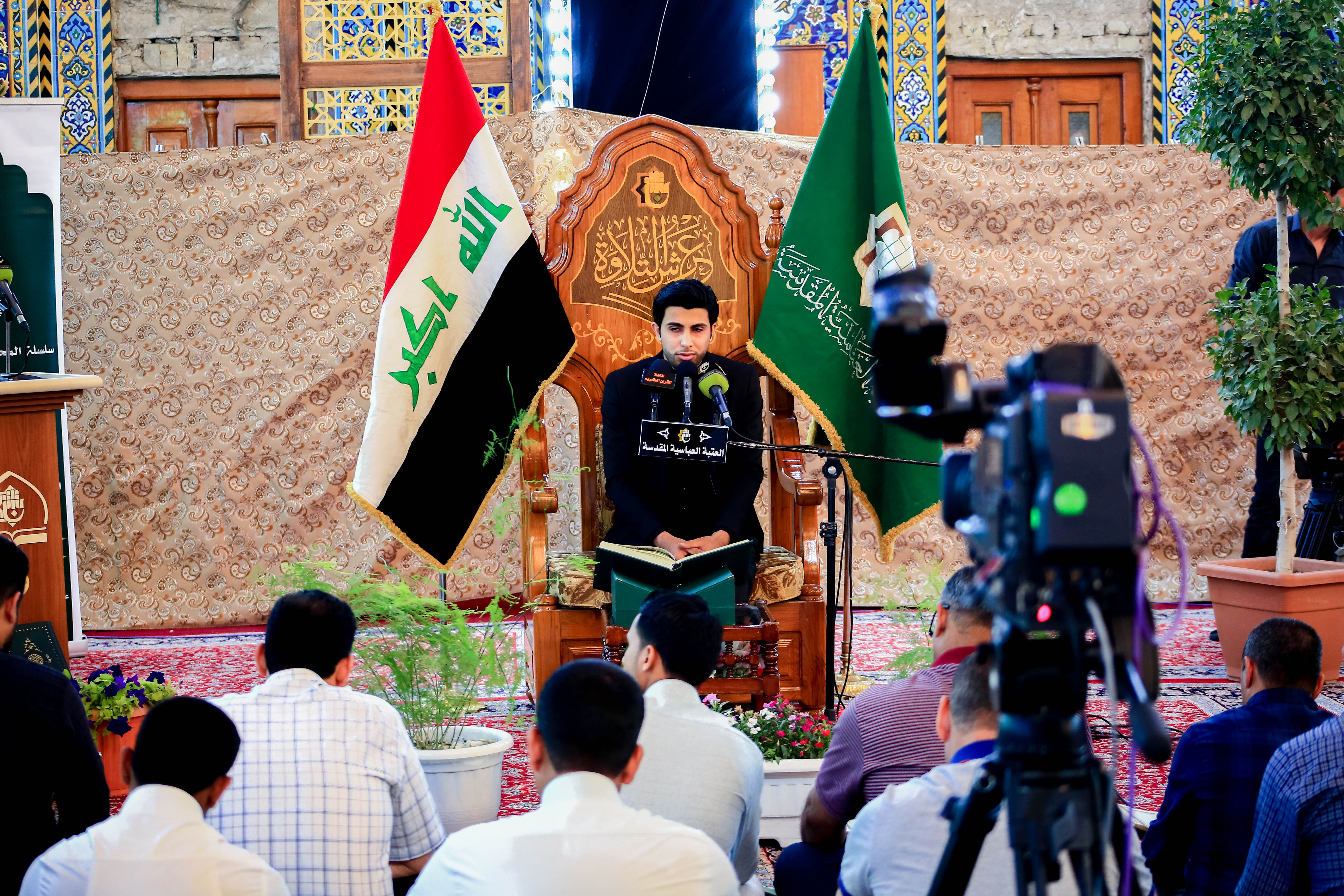 ضمن سلسلة المحافل القرآنية في مشروع عرش التلاوة الذي يُقيمه مركز المشاريع القرآنية في معهد القرآن الكريم التابع للعتبة العباسية المقدسة تحل ضيفاً عليه كلية الإمام الكاظم (عليه السلام) في ذي قار قسم علوم القرآن الكريم. افتتح الحفل بتلاوة عطرة تلاها القارئ أحمد عامر أحد طلبة الدورة الاحترافية (المستوى الثاني) التي يُقيمها مركز المشاريع القرآنية، تلتها تلاوة لأحد موهبيّ مشروع أمير القرّاء الوطني الموهوب علي مسلم، جاء بعدها تلاوة للقارئ عمار الحلي من البصرة الفيحاء، وكان ختامها مسك مع الطريقة المنشاوية التي عانقت قباب أبي الفضل العباس ( عليه السلام ) بصوت القارئ الشيخ حسام المنشداوي . يذكر ان مشروع عرش التلاوة يقام مساء كل يوم جمعة في الصحن العباسي المطهر.