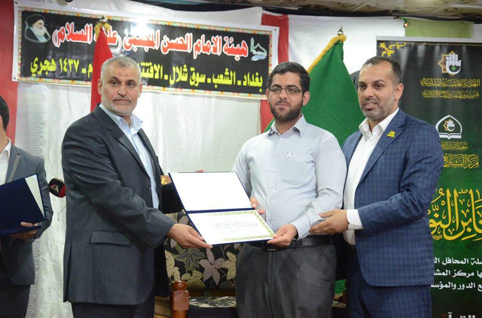 تزامناً مع الولادة الميمونة والذكرى الرابعة لتأسيس معهد القرآن الكريم / فرع بغداد التابع للعتبة العباسية المقدسة أقام الفرع محفلاً قرآنياً مباركاً ضمن مشروع منابر النور والذي يقيمه مركز المشاريع القرآنية في معهد القرآن الكريم وسط العاصمة بغداد بمدينة الشعب داخل مسجد وحسينية الإمام الحسن المجتبى (عليه السلام) وسط حضور جمع من المؤمنين والمهتمين بالشأن القرآني. أفتتح المحفل بتلاوة عطرة تلاها القارئ اسحاق العتابي، جاء بعدها تلاوة مباركة شنفت اسماع الحاضرين تلاها القارئ الدولي من دولة أفغانستان محمد علي فروغي، تلتها كلمة معهد القرآن الكريم ألقها مسؤول فرع بغداد الاستاذ نبيل الساعدي والتي استعرض من خلالها نشاطات المعهد في السنوات الأخيرة والانجازات التي حققها ودأب الفرع عليها من خلال المشاريع المميزة والدورات والندوات والمحافل القرآنية في عموم العاصمة بغداد، وكان ختامها مسك مع تلاوة قرآنية مميزة تلاها قارئ ومؤذن العتبة الرضوية المقدسة من جمهورية إيران الإسلامية السيد محمد جواد حسيني. وفي ختام الحفل تم توزيع الشهادات التقديرية على المشاركين في هذا المحفل المبارك من قبل إدارة معهد القرآن الكريم / فرع بغداد.