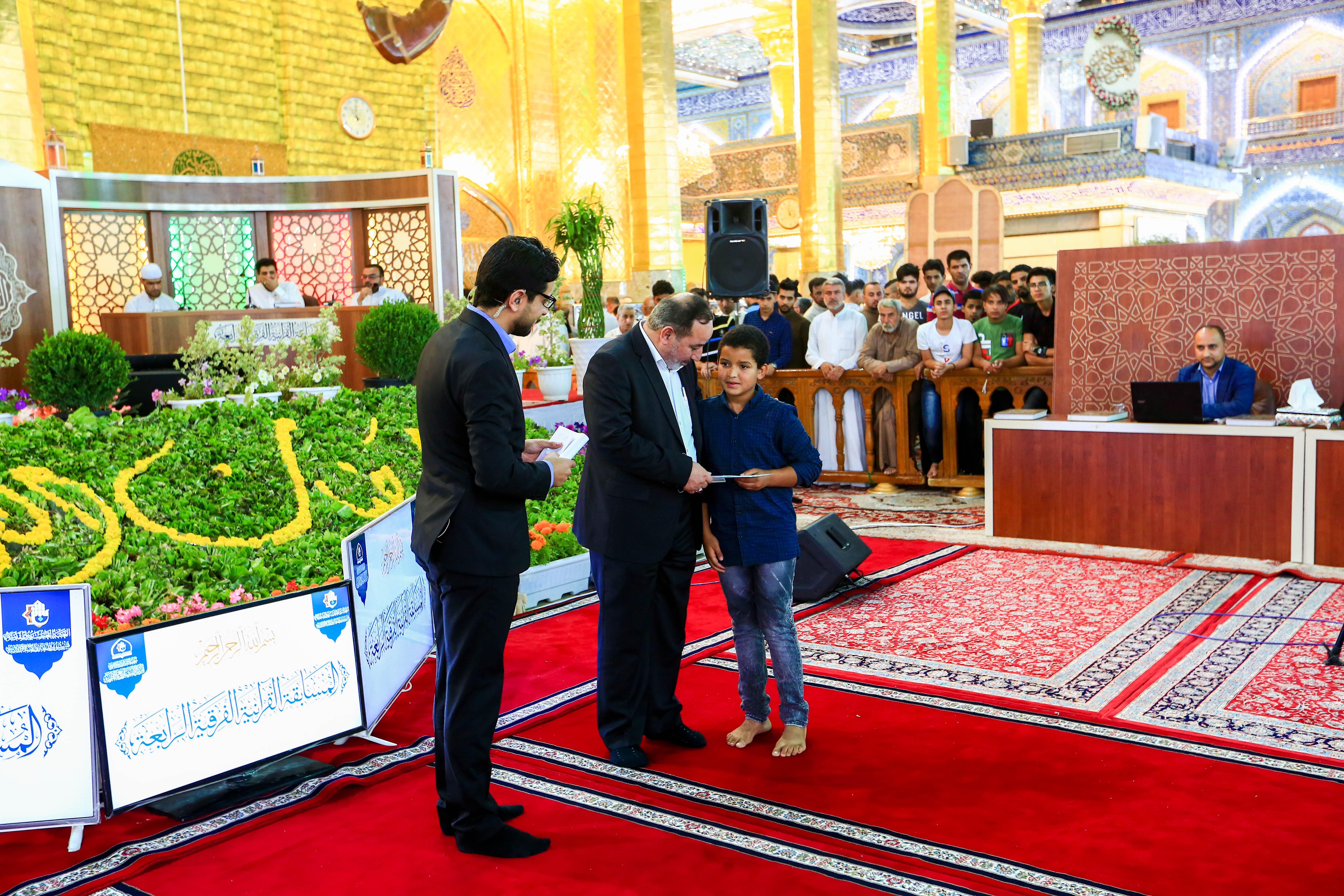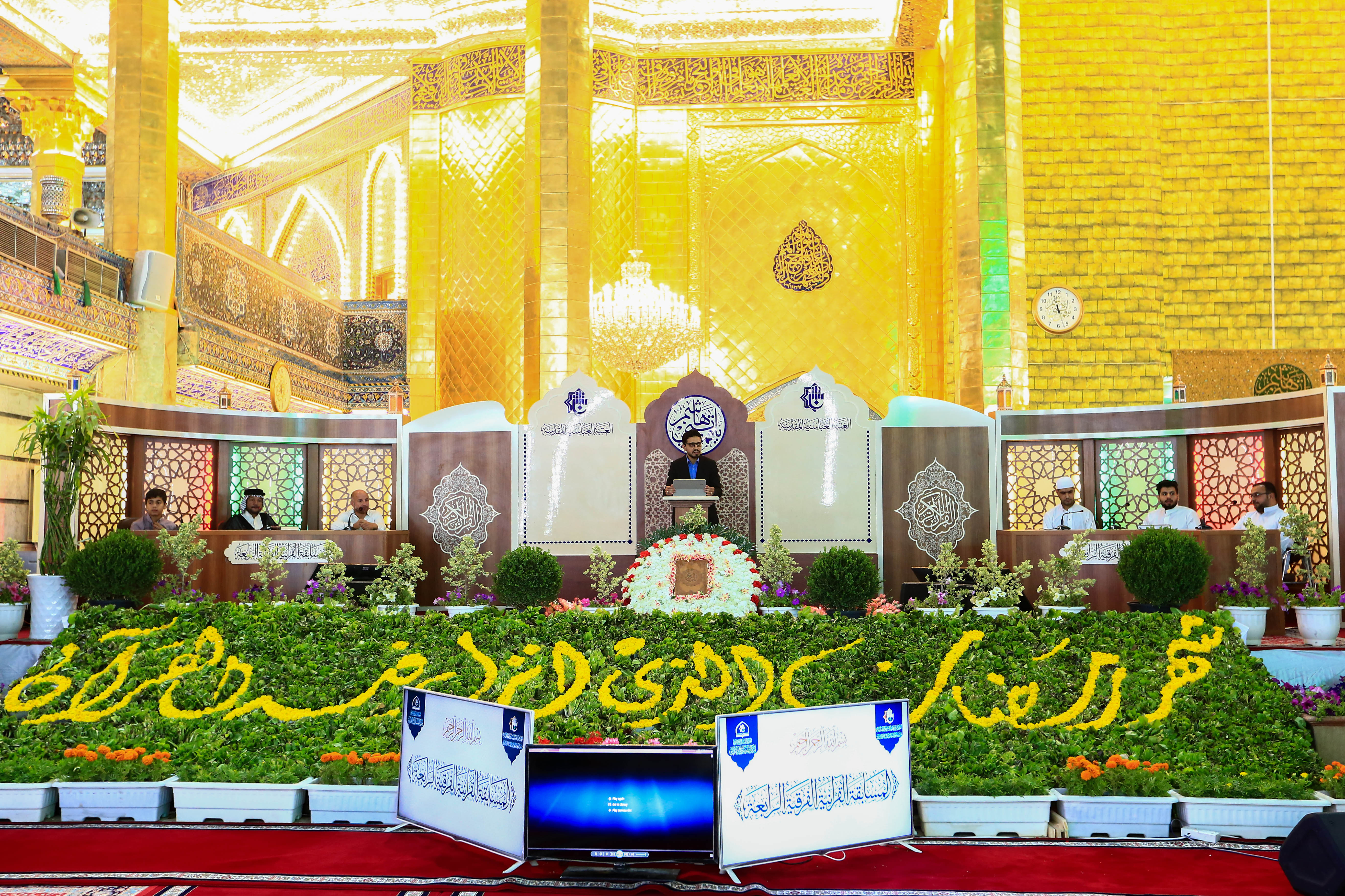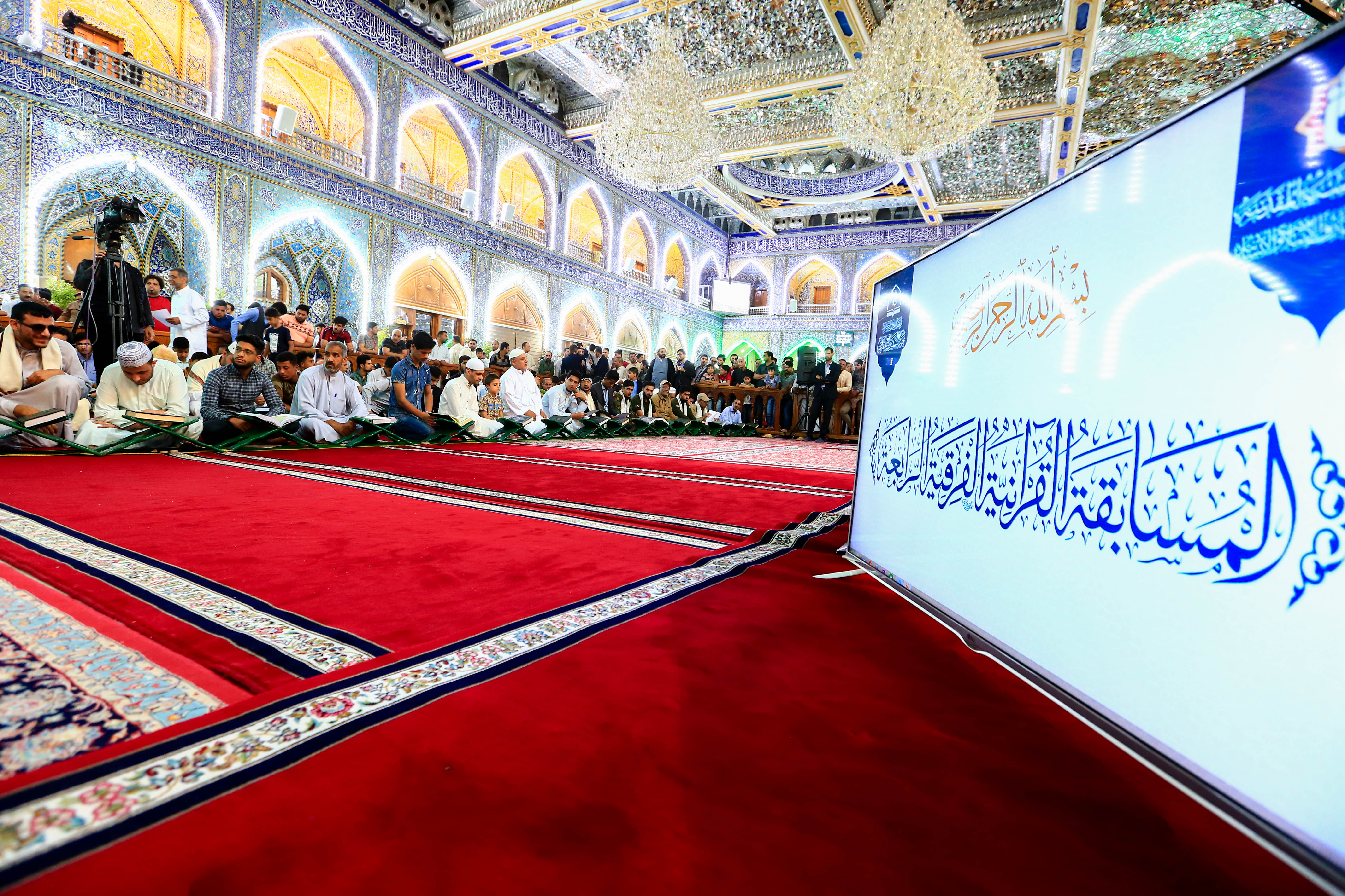 انطلقت امس فعاليات المسابقة القرآنية الفرقية الوطنيّة الرابعة التي يقيمها مركز المشاريع القرآنية في معهد القرآن الكريم التابع لقسم شؤون المعارف الإسلامية والإنسانية في العتبة العبّاسية المقدّسة وبمشاركة فرقاً يمثلون مختلف المحافظات العراقية ويشتمل كل فريق على (قارئ، وحافظ، ومهتم بالتفسير)، فقد التقى من خلال القرعة في اول مباراة فريق واسط بفريق كربلاء (ب) ، المسابقة التي يحتضن فعالياتها صحن أبي الفضل العباس(عليه السلام) وتتكوّن من أسئلة مختلفة تشمل تلاوة آية في مقام محدد ومعاني تفسيرية لعدد من الآيات القرآنية وكذلك أحكام شرعية خاصة بالقرآن مضافاً إلى أحكام التلاوة ومجاراة في الحفظ وفقرة من القارئ والتي ميز فيها المتسابقون القارئ المختار من خلال صوته فقط مضافاً إلى عدد من الفقرات الجديدة مثل المخطوطات القرآنية المضافة اخيراً، والمسابقة تكشف مع التقدم نحو المراحل النهائية وكل تلك الإجابات تقيم بإشراف من الخبراء. ومن الجدير بالذكر أن المسابقة ستستمر لمدة (15) يوماً وتُقام في تمام الساعة العاشرة مساء كلّ يوم، كذلك سيتمّ توجيه أسئلةٍ قرآنية للحاضرين وتجرى قرعةٌ فيما بينهم من أجل الظفر بجائزةٍ يومية.