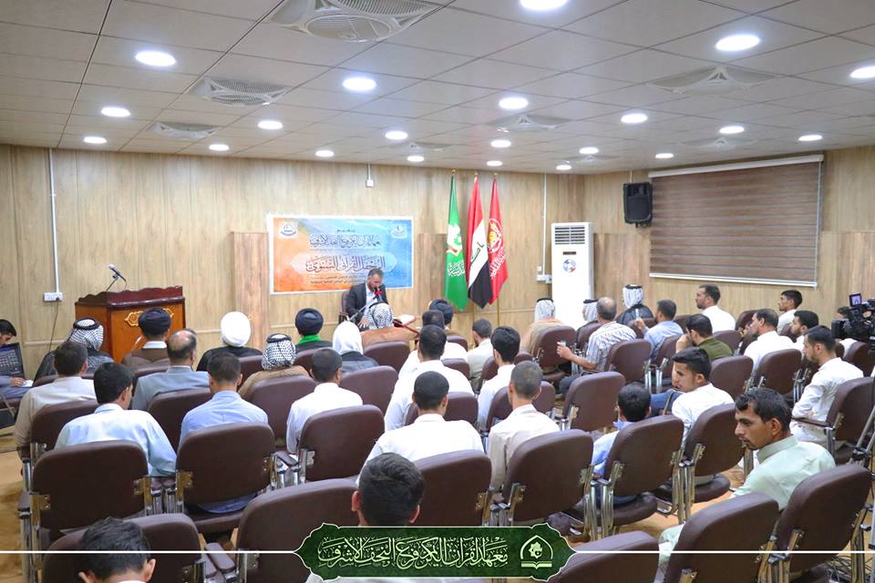 أقام معهد القرآن الكريم / فرع النّجف الأشرف التابع لقسم شؤون المعارف الإسلامية والإنسانية في العتبة العباسية المقدسة محفلا قرآنيا مباركا تزامناً مع ولادة الإمام الحسن المُجتبى (عليه السّلام)، يوم الجُمعة المصادف 16 رمضان 1439هـ في مقره بحي الحنّانة، وتضمّن المحفلُ تكريماً وبحضور مدير معهد القرآن الكريم في العتبة العباسية المطهرة الشيخ جواد النصراوي للمشاركين في البرامج القُرآنيّة الرّمضانيّة التي يقيمها المعهد وشملتْ ثلاث عشر ختمة قرآنية في مختلف مناطق النّجف الأشرف وأقضيتها ونواحيها ،وكذلك الدّورات القُرآنيّة ومُختلف النّشاطات خلال شهر رمضانَ المُبارك.