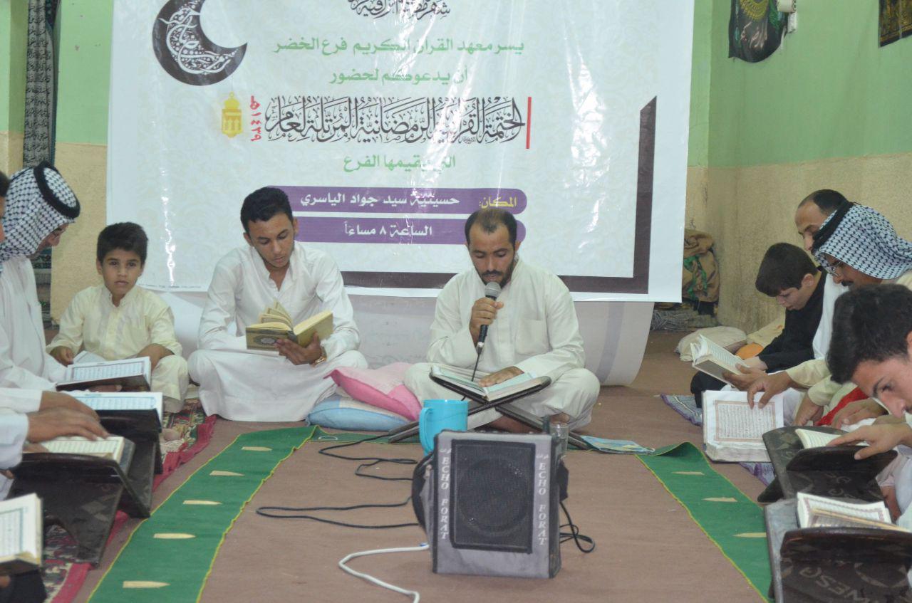 تواصل الختمات القرآنية الرمضانية التي يقيمها معهد القرآن الكريم / فرع الخضر التابع للعتبة العباسية المقدسة وحسب البرنامج اليومي المعد لكل ختمة في جميع المناطق التابعة لمحافظة المثنى، وقد شهدت هذه الجلسات توافد المؤمنين لتزود بكتاب الله العزيز وحضوراً وانجذاباً من قبل أطفال وناشئة وكبار للمشاركة فيها، وستستمر هذه الختمات حتى نهاية الشهر الفضيل.