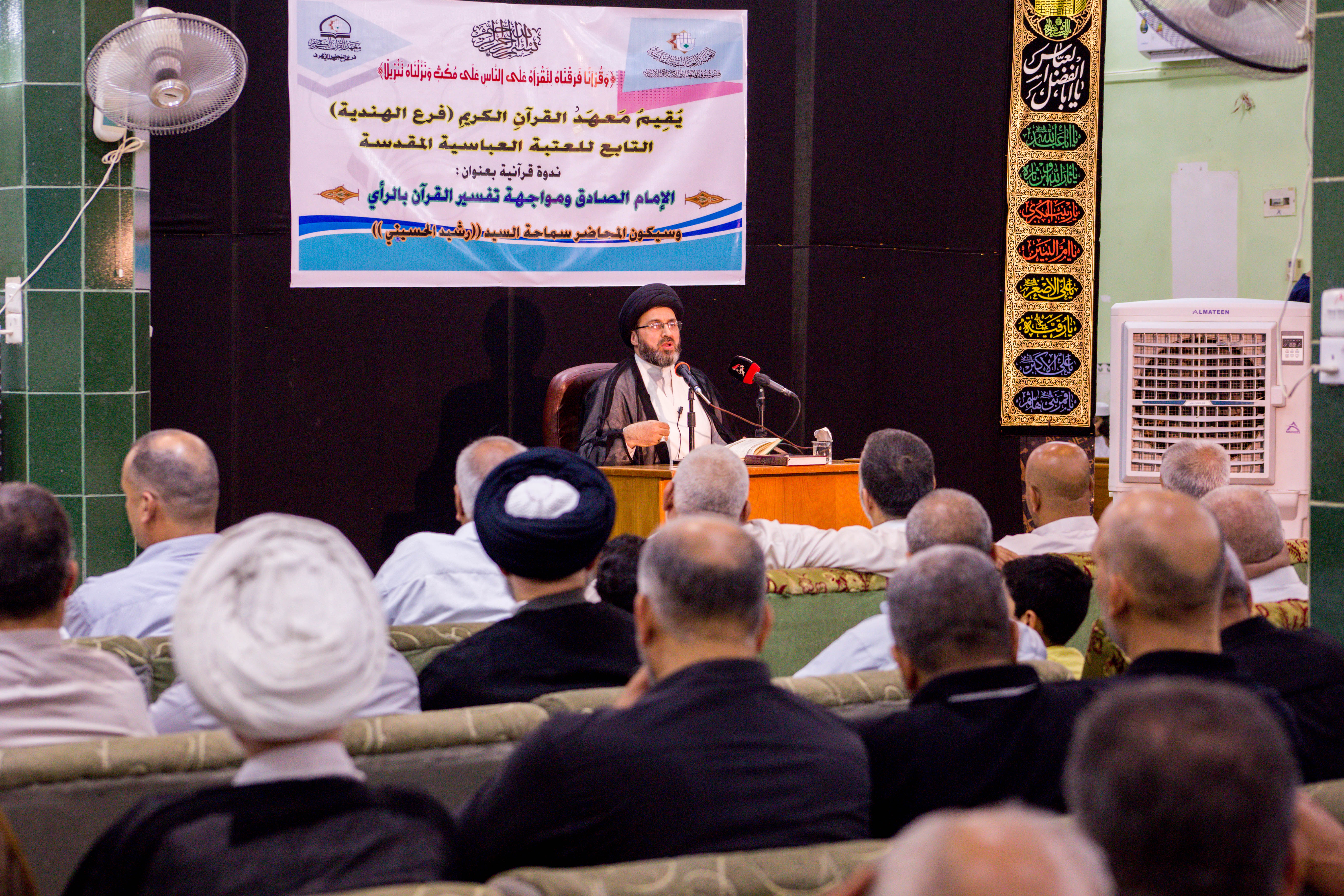 تزامناً مع استشهاد صادق الأئمة (عليه السلام) اقام معهد القرآن الكريم / فرع الهندية التابع للعتبة العباسية المقدسة ندوة قرآنية مباركة تحت عنوان (الامام الصادق "ع" ومواجهة التفسير بالرأي) التي حاضر فيها سماحة السيد رشيد الحسيني -دام توفيقه-، افتتحت الندوة بتلاوة قرآنية مباركة تلاها القارئ يوسف الفتلاوي، جاء بعدها دور الندوة التي بيّن من خلالها سماحته دور الامام في مواجهة الخطوط المختلفة بالتعامل مع القرآن الكريم وكان له منهجية خاصة بالتعامل مع هذه الخطوط ولابد ان نتبع هذه المنهجية في بناء الامة، بعيداً عن التجاذبات والاجتهاد في الرأي والتقول على الكتاب وتحميله ما لا يحتمل وهذا يتنافى مع منهج اهل البيت (عليهم السلام)، واكد سماحته على ان الامة بحاجة الى كسب الشباب الواعي وجرهم على فهم القرآن كخطوة أولى ومن بعدها العمل به فلا يمكن العمل بالقرآن مالم نفهمه وهذا هو هدف ومشروع كبير لتقويم الامة على منهج الثقلين. وكان حضور كبير ومميز للشخصيات البارزة وطلبة العلوم الدينية وأساتذة الجامعات والمهتمين بالشأن القرآني في هذه الندوة المباركة. تحدث لمركز الإعلام القرآني مسؤول فرع الهندية السيد حامد المرعبي قائلاً: بمناسبة استشهاد الامام الصادق (ع) اقام الفرع هذه الندوة التي عنوانها مواجهة التفسير بالرأي في منهجية الامام وهي واحدة من الندوات القرآنية الشهرية المستمرة التي يعدها الفرع ويقوم كل شهر باستضافة شخصية قرآنية حوزوية او شخصية اكاديمية الهدف منها هو نشر علوم الكتاب الكريم. كما أكد المرعبي: كان الدور البارز في هذه الندوات المستمرة هو الحضور الغفير لجمع من المؤمنين والأكاديميين وطلبة الحوزات العلمية والمهتمين بالشأن القرآني. يذكر ان معهد القرآن الكريم يقيم العديد من الندوات والدورات القرآنية والعلمية بالإضافة الى المشاريع الرائدة التي تعد الأولى من نوعها على الساحة القرآنية بغية نشر الوعي القرآني بين أوساط المجتمع.