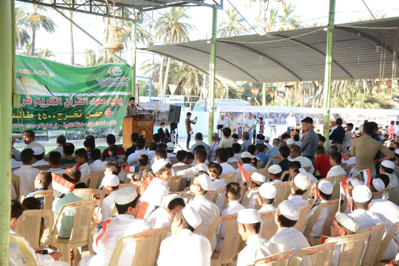 بمشاركة أكثر من 4,500 طالب أقام معهد القرآن الكريم / فرع بابل التابع للعتبة العباسية المقدسة حفل تخرج مشروع الدورات القرآنية الصيفية التي اقامها الفرع في المحافظة وبحضور جمع غفير من محبي الكتاب العزيز ومسؤولي العتبة العباسية المقدسة ووفود العتبات وأساتذة المشروع، استهل الحفل بتلاوة آيات من الذِكر الحكيم اعقبها كلمة معهد القرآن الكريم القها مديره الشيخ جواد النصراوي التي رحب فيها بالحضور الكبير والسادة الضيوف ومسؤولي العتبة العباسية المقدسة ووفود العتبات وأساتذة المشروع، ثم بين ان مشروع الدورات القرآنية الصيفية الذي ترعاه العتبة العباسية المقدسة المتنامي عام بعد عام كان لفرع بابل هذا العام النسبة الأكبر منه حيث بلغت ٢٥ % من نسبة العدد الكلي للمعهد و فروعه في المحافظات. كما اكد الشيخ النصراوي على ان فرع بابل شجرة مثمرة تلقي بظلالها و ثمرها على ابناء مدينة الحلة ومشاريع هذا الفرع في زيادة مستمرة من عام إلى عام و ما تحقق هذا النجاح لو لا الجهود الاستثنائية التي تبذل من قبل كادرهُ فلهم منا كل الشكر والتقدير لجهودهم القيمة، فيما شكر فضيلته العوائل الكريمة المؤمنة الطيبة على ما قدموه من تهيئة وتشجيع لأولادهم من خلال الحضور في الدورات المباركة وهم قد استغلوا العطلة الصيفية بأفضل استغلال وسخروا هذا الوقت الثمين لكي ينهلوا من كلام الله سبحانه وتعالى ويتعلموا تلاوته وحفظه. جاء بعدها كلمة فرع بابل ألقاها مسؤوله السيد منتظر المشايخي التي رحب فيها بالحاضرين ووجه من خلالها الشكر الى العتبة العباسية المقدسة متمثلتاً بمعهد القرآن الكريم وعلى راسهم سماحة المتولي الشرعي للعتبة العباسية المقدسة السيد احمد الصافي (دام عزه) على هذا الكرنفال الكبير والعرس القرآني المميز. وثم قدم التهاني الى طلبة هذا المشروع المبارك وبين ان الهدف من مشروع الدورات الصيفية هو بناء الإنسان بناء صحيحا وتربية الأولاد تربية تجعلهم يرتقون لما يريده الله والرسول وآل البيت الكرام عليهم السلام. وفي الختام تم عرض مسرحية قدمها نخبة من طلبة المشروع وكانت بعنوان (فالنتفقه)، اعقبها ختاماً دعاء الفرج لتعجيل في ظهور الحجة المنتظر (عج) وقراءة سورة الفاتحة لأرواح شهداء العراق الغيارى.