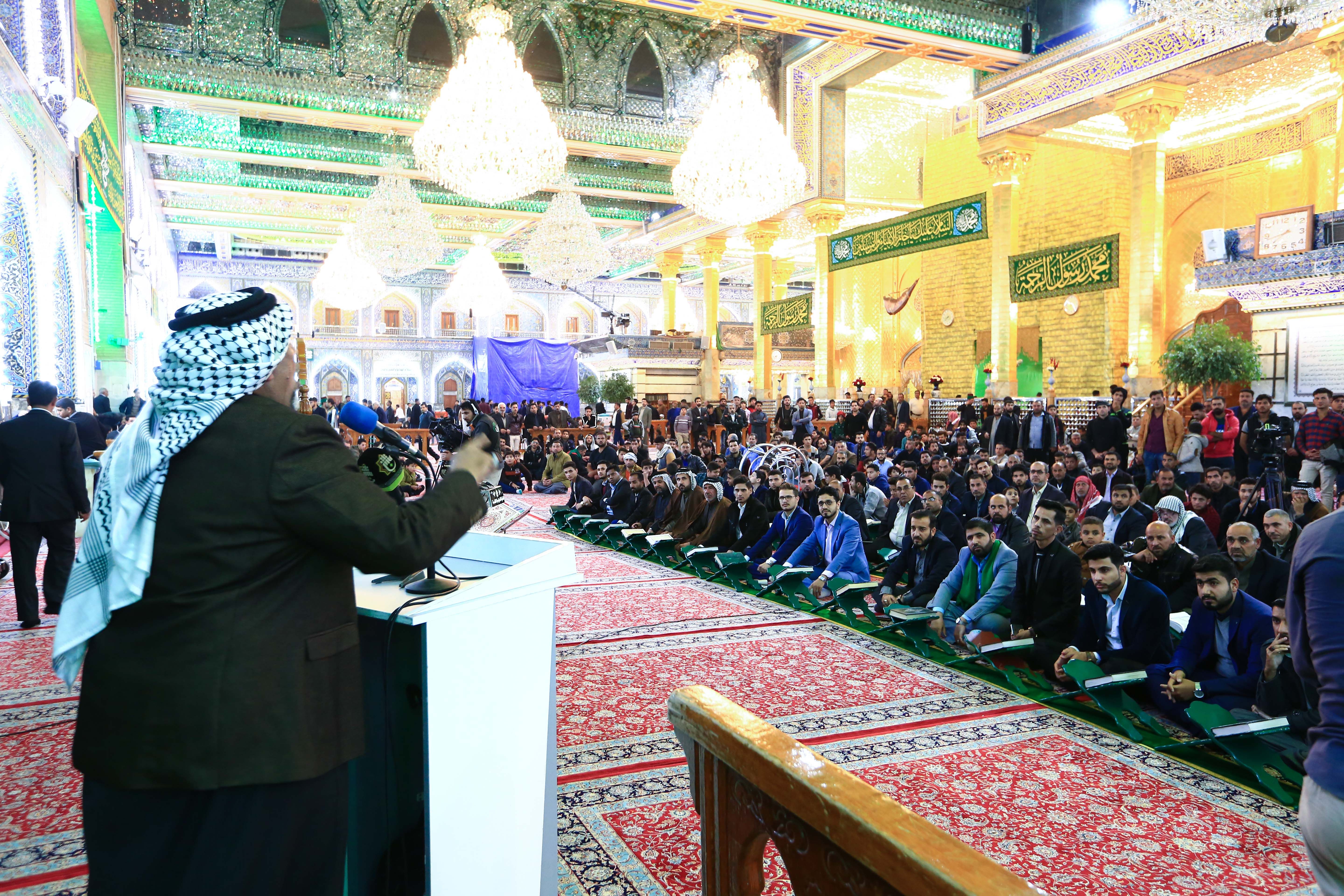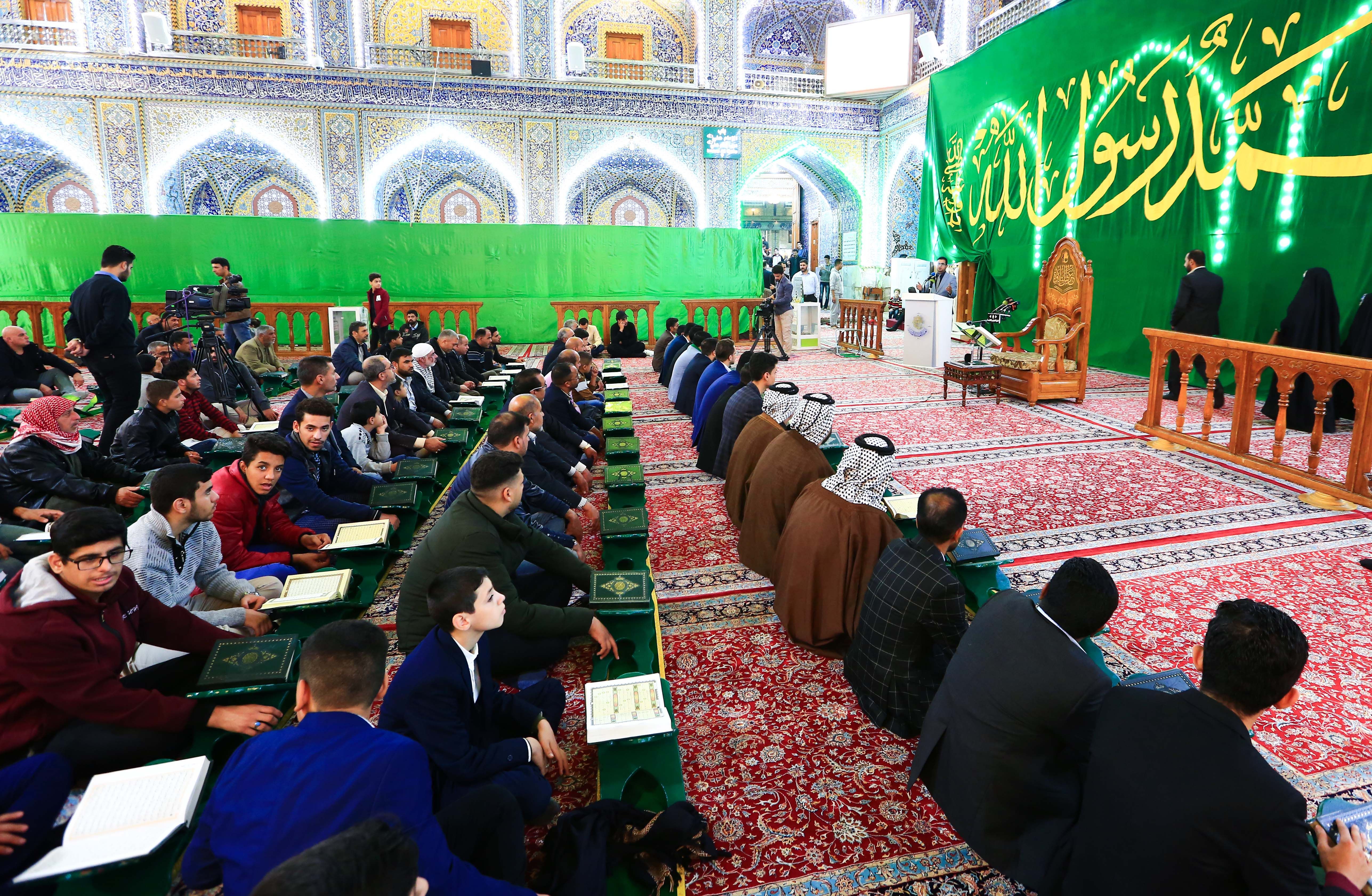 أستأنف مركز المشاريع القرآنية في معهد القرآن الكريم التابع للعتبة العباسية المقدسة مشروع عرش التلاوة والذي يقام أسبوعياً في الصحن العباسي المطهر بعد انقطاعه خلال شهري محرم وصفر عائداً بأصوات ترتل كلمات السماء، جاء ذلك تزامناً مع المولد النبوي الشريف ومولد صادق العترة أبي عبد الله (عليه السلام). المركز أستضاف مجموعة طيبة من القرآنيين قدموا من محافظة النجف الأشرف وقضاء الهندية، وشهد المحفل مشاركة متميزة لمجموعة من القراء منهم قارئ العتبة العلوية المقدسة السيد هاني الموسوي، وقارئ العتبة العباسية المقدسة فيصل مطر، والموهوب محمد علي رشيد أحد طلبة دار القرآن في العتبة العلوية المقدسة ومن تلاميذ مشروع أمير القراء التابع لفرع معهد القرآن الكريم في النجف الأشرف، والموهوب باقر بيان من المدرسة القرآنية في قضاء الخضر واحد طلبة مشروع أمير القراء الوطني، فيما كان للشعر حضور جميل من خلال مشاركة شاعر أهل البيت أبو حسنين الربيعي. يذكر أن مشروع عرش التلاوة يقام مساء كل يوم جمعة في الصحن العباسي المطهر عند الساعة السابعة مساءً وينقل مباشرةً عبر قناة القرآن الكريم ضمن مجموعة قنوات كربلاء الفضائية إضافةً إلى إذاعة القرآن الكريم في العتبة الحسينية المقدسة.