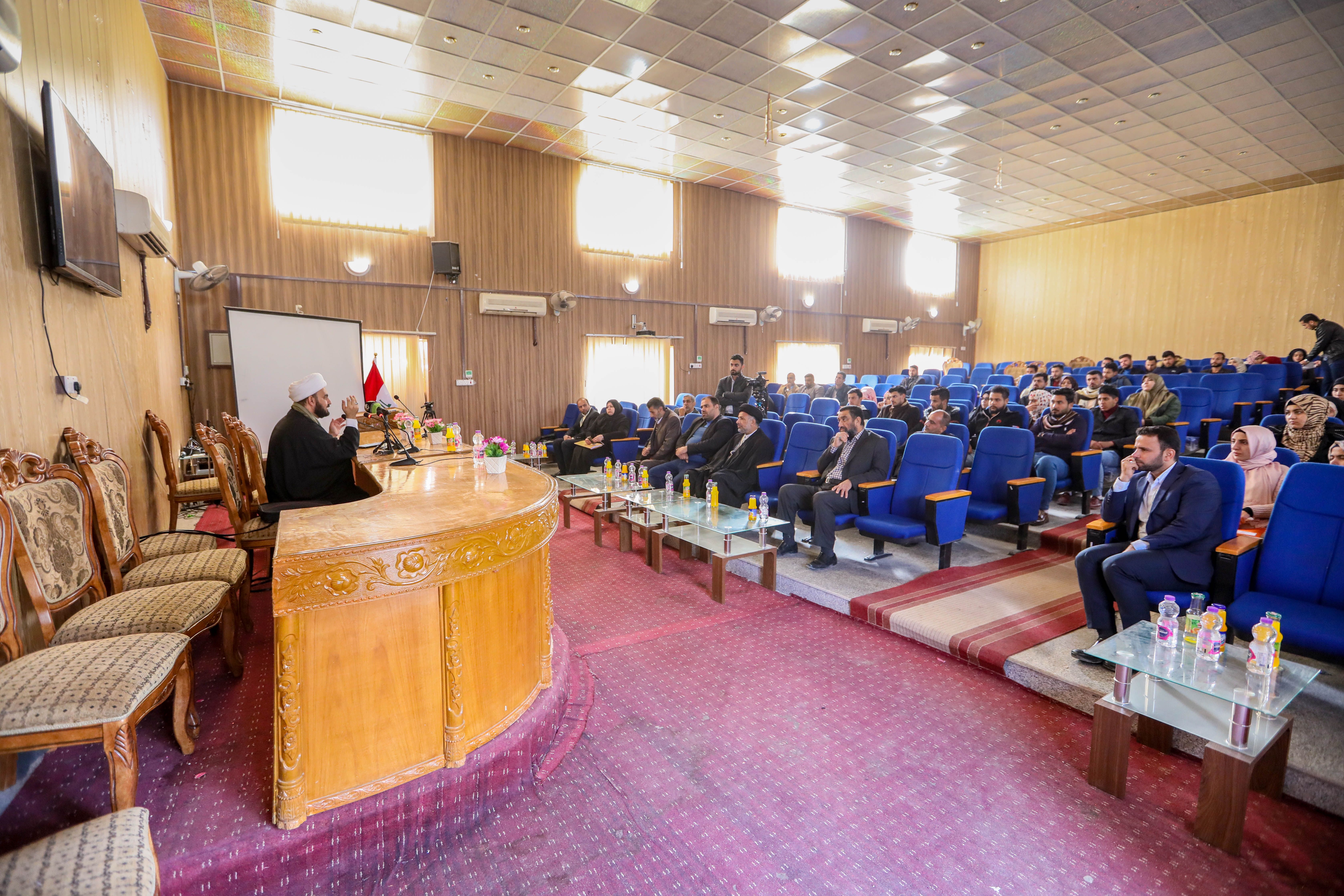 وسط حضور أساتذة وطلبة جامعة كربلاء احتضنت كلية الزراعة ندوة قرآنية تحت عنوان (المعالجات القرآنية لمشاكل الطلبة الاجتماعية) ضمن المشروع القرآني في الجامعات والمعاهد العراقية الذي يقيمه معهد القرآن الكريم التابع للعتبة العباسية المقدسة، حيث حاضر فيها فضيلة الشيخ حارث الداحي فيما افتتحت الندوة بتلاوة مباركة تلاها القارئ يوسف الفتلاوي، ثم شرع فضيلة الشيخ الداحي بألقاء ندوتهِ التي تناول فيها القرآن الكريم والعرف الاجتماعي وكيفية حلول المشاكل في المجتمع من خلال التدبر بآيات الكتاب الكريم وتفسير بعض الآيات التي تخص تلك المشاكل. وأوضح فضيلته بان لابد أن تكون هناك علاقة حقيقة مع الله سبحانه وتعالى من خلال القرآن الكريم لان هذه العلاقة تمثل غذاء للروح، ولابد ان تكون هناك ثقافة قرآنية حسينية يتمتع بها الشباب الواعي، وإذا أردنا أن نحافظ على هويتنا لابد لنا أن نتبع خُطى الكتاب المجيد والعترة الطاهرة، ومن ثم أجاب فضيلة الشيخ على المداخلات المهمة من الطلبة والأساتذة والحضور. يذكر أن معهد القرآن الكريم يقيم وللعام السادس على التوالي المشروع القرآني في الجامعات والمعاهد العراقية ويلامس قلوب الطلبة من خلال الدورات والندوات ومحاضرات في احكام التلاوة والمؤتمرات والمسابقات القرآنية داخل اروقة الجامعات والمعاهد بالإضافة الى الجانب الاقرائي للطلبة.