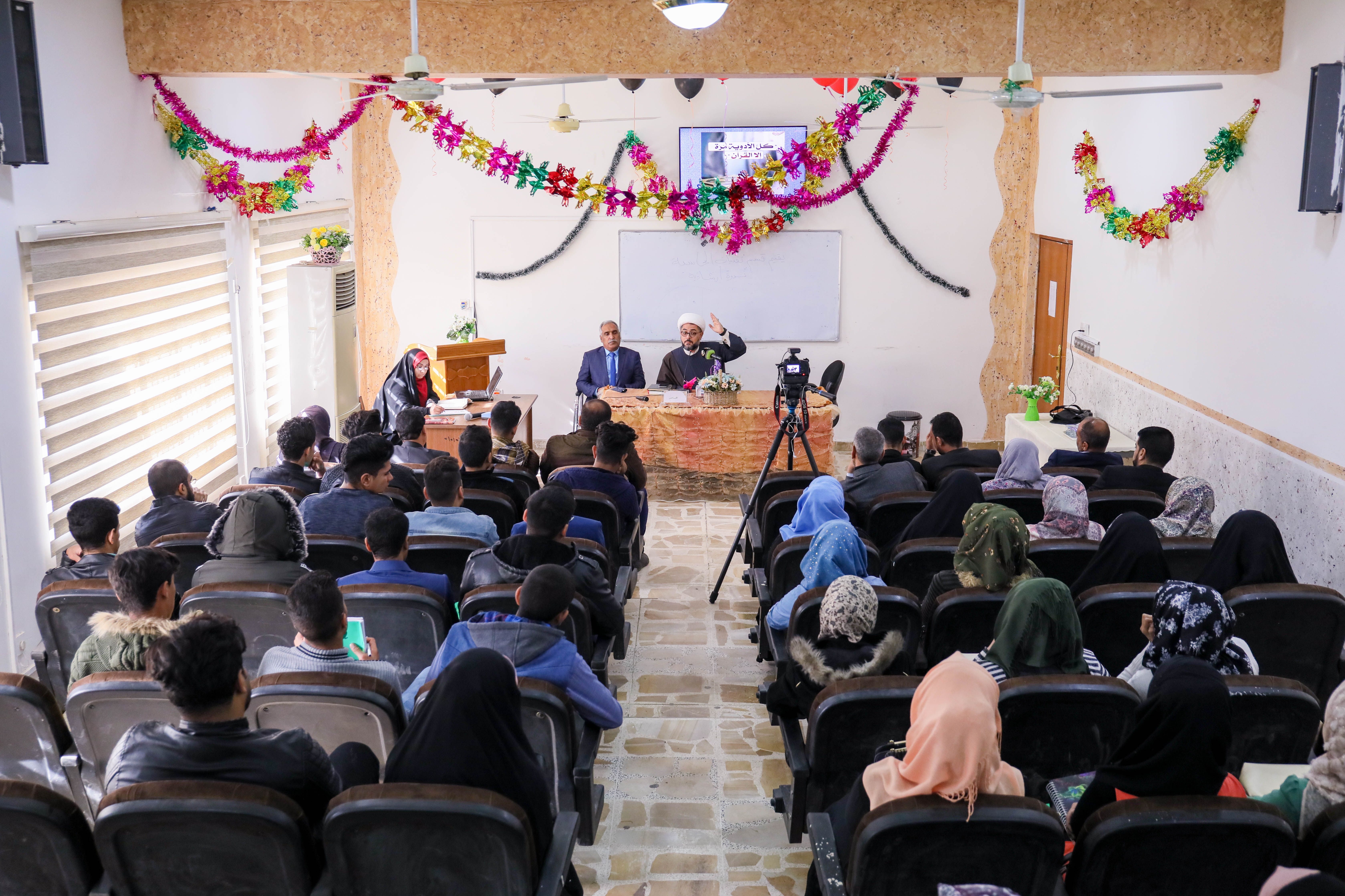 ضمن المشروع القرآني في الجامعات والمعاهد العراقية الذي يقيمه معهد القرآن الكريم التابع للعتبة العباسية المقدسة احتضن المعهد التقني في كربلاء المقدسة قسم التقنيات المحاسبية وبالتعاون مع فرع المعهد في قضاء الهندية ندوة قرآنية تحت عنوان (القرآن والحياة) التي حاضر فيها الدكتور الشيخ منجد الكعبي الحاصل على دكتوراه في التاريخ والحضارة الإسلامية، افتتحت الندوة بتلاوة مباركة تلاها القارئ يوسف الفتلاوي، ثم شرع فضيلة الشيخ بندوته التي بين من خلالها الحضارة الإسلامية واصولها التي شرعها نبي الإنسانية محمد (صلى الله عليه واله) وكيف بث السلام في الإسلام وعلم الإنسان ما علمه ربه في كتابه المبين وبين كيف ان الإسلام المحمدي زرع وبقوة الثقافة التي ارادها الله سبحانه وتعالى مستشهداً بسورة العلق المباركة التي بدأت بـ اقرأ وهذا يعني بانه لا يوجد سبيل للإنسان غير التعلم، بعدها شرح الكعبي السلبيات التي يواجهها شبابنا في الوقت الحالي من عواصف برامج التواصل الاجتماعي وما يحمله من سلبيات دون العمل بإيجابيات هذه البرامج وتضيع الوقت واللهو بأشياء دون الاستفادة من هذا الوقت بشيء يفيد الناس، خاتماً ندوته بنصائح قيمة للطلبة وأجاب على أسالتهم التي وجهة في نهاية الندوة.