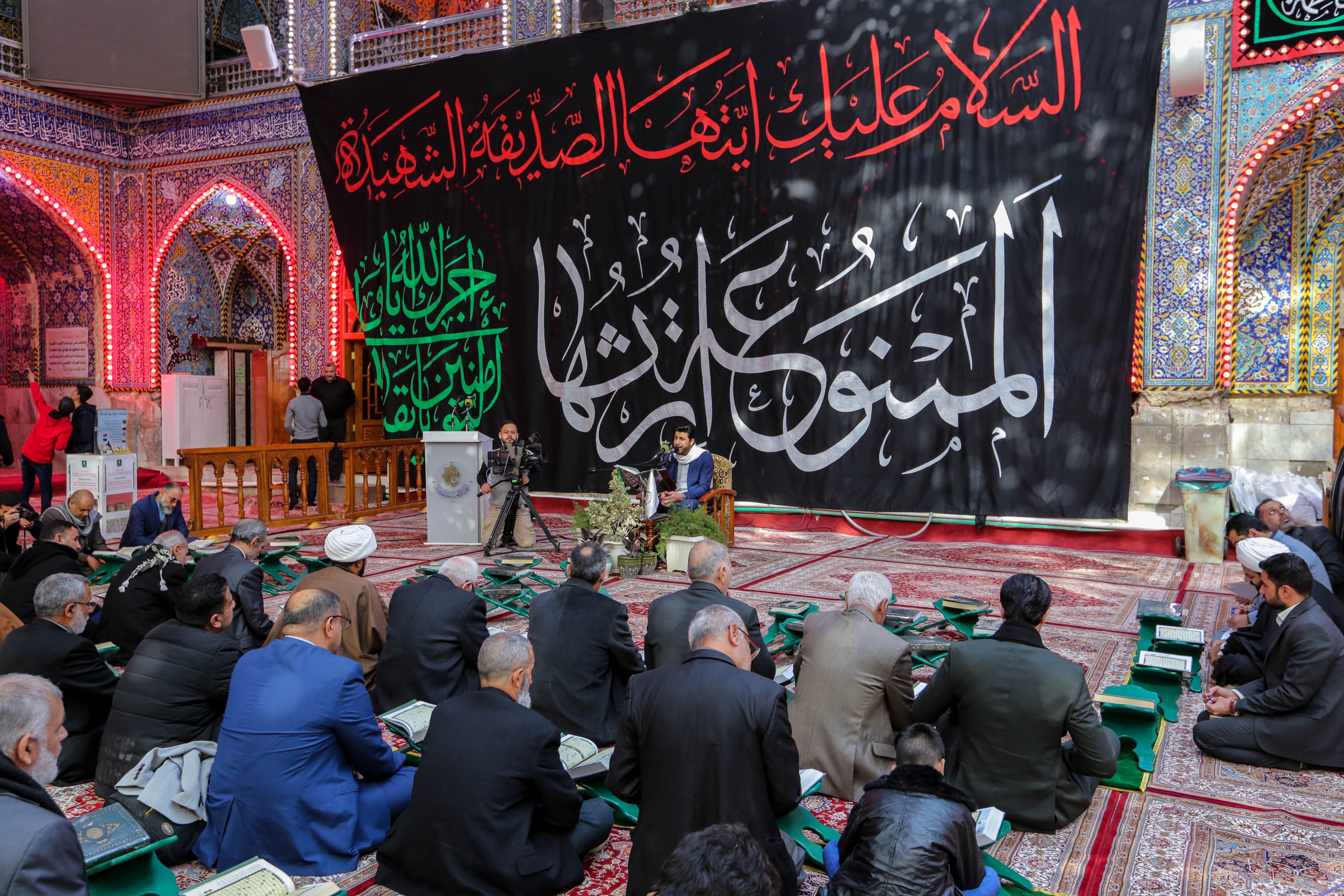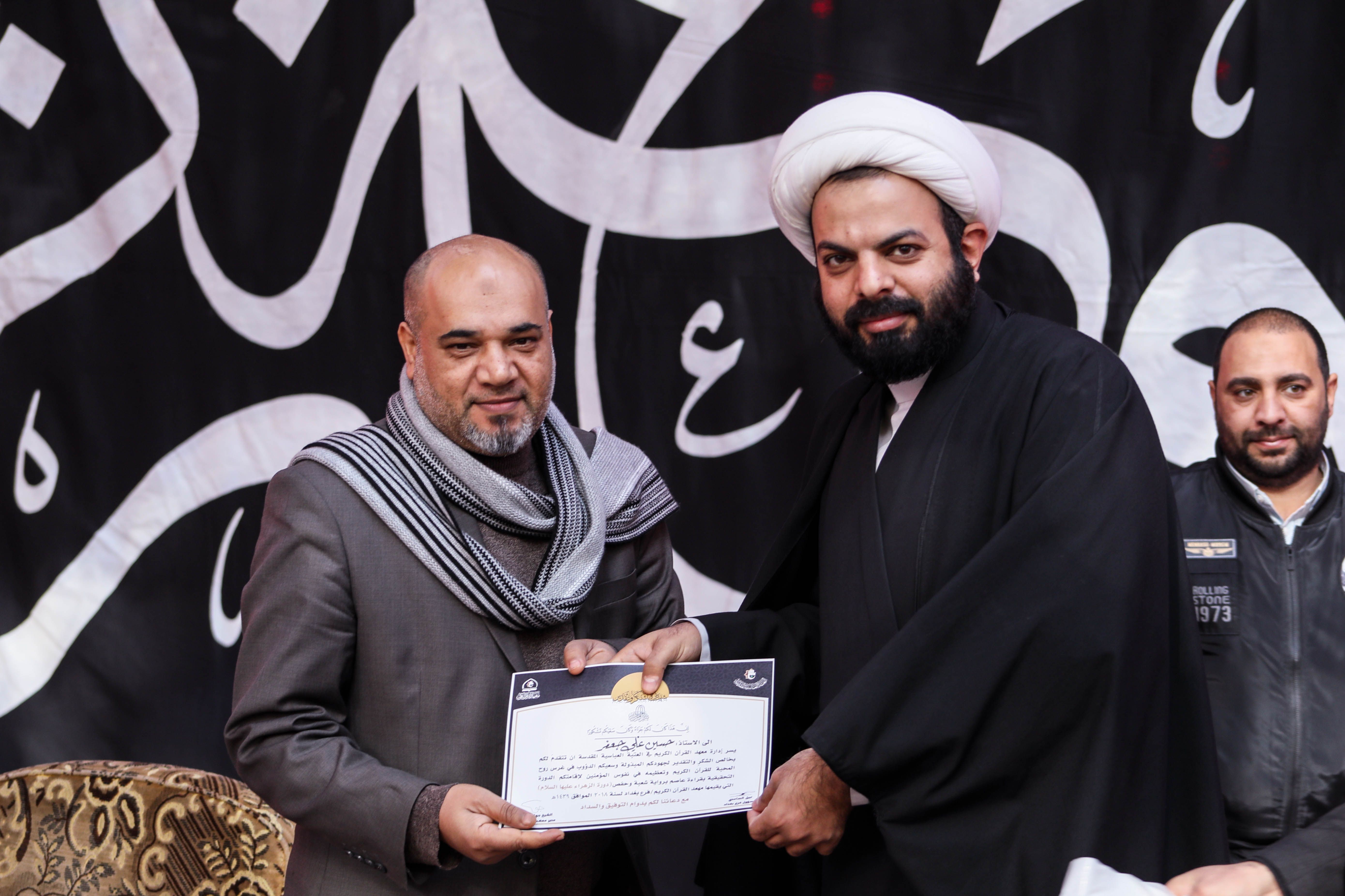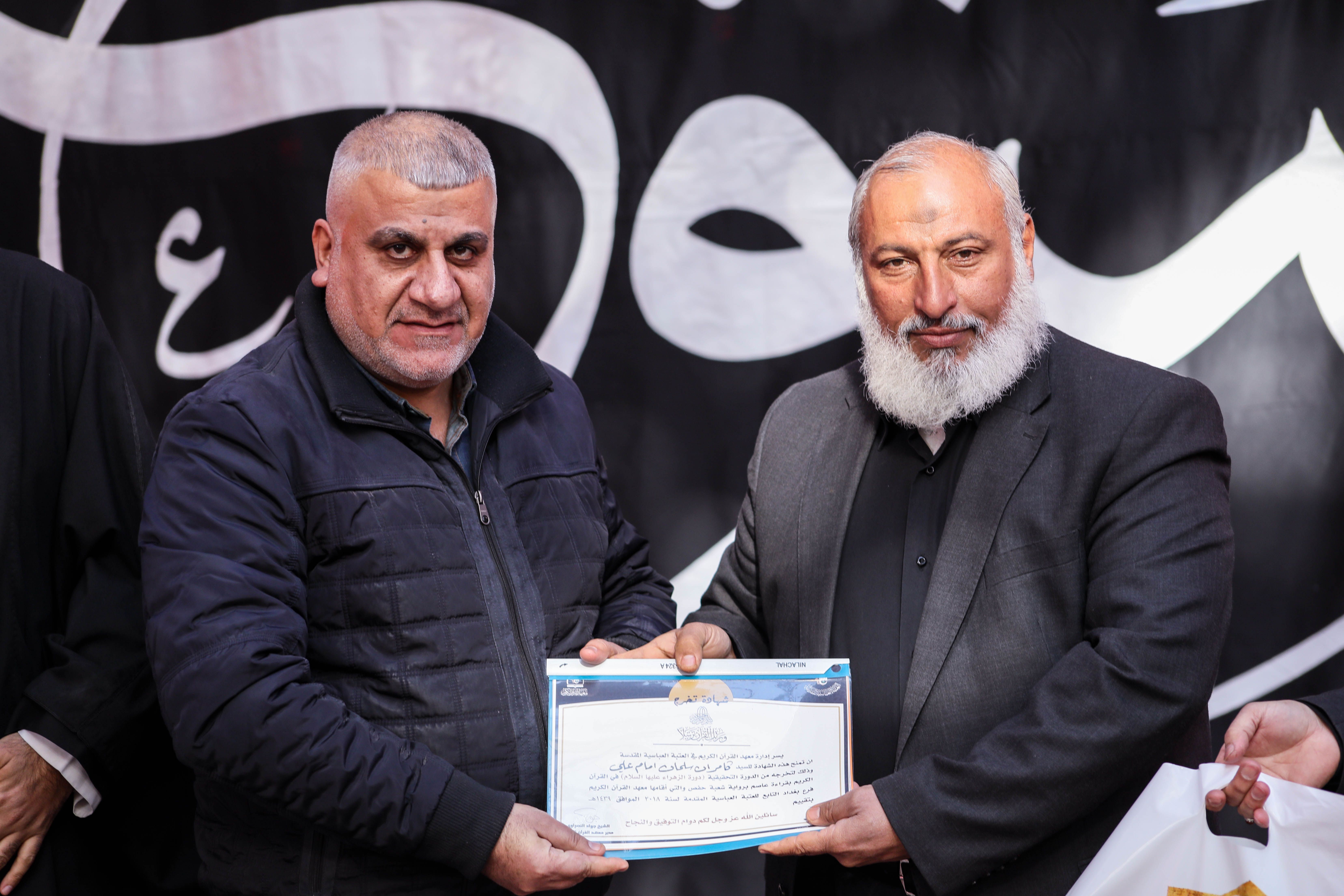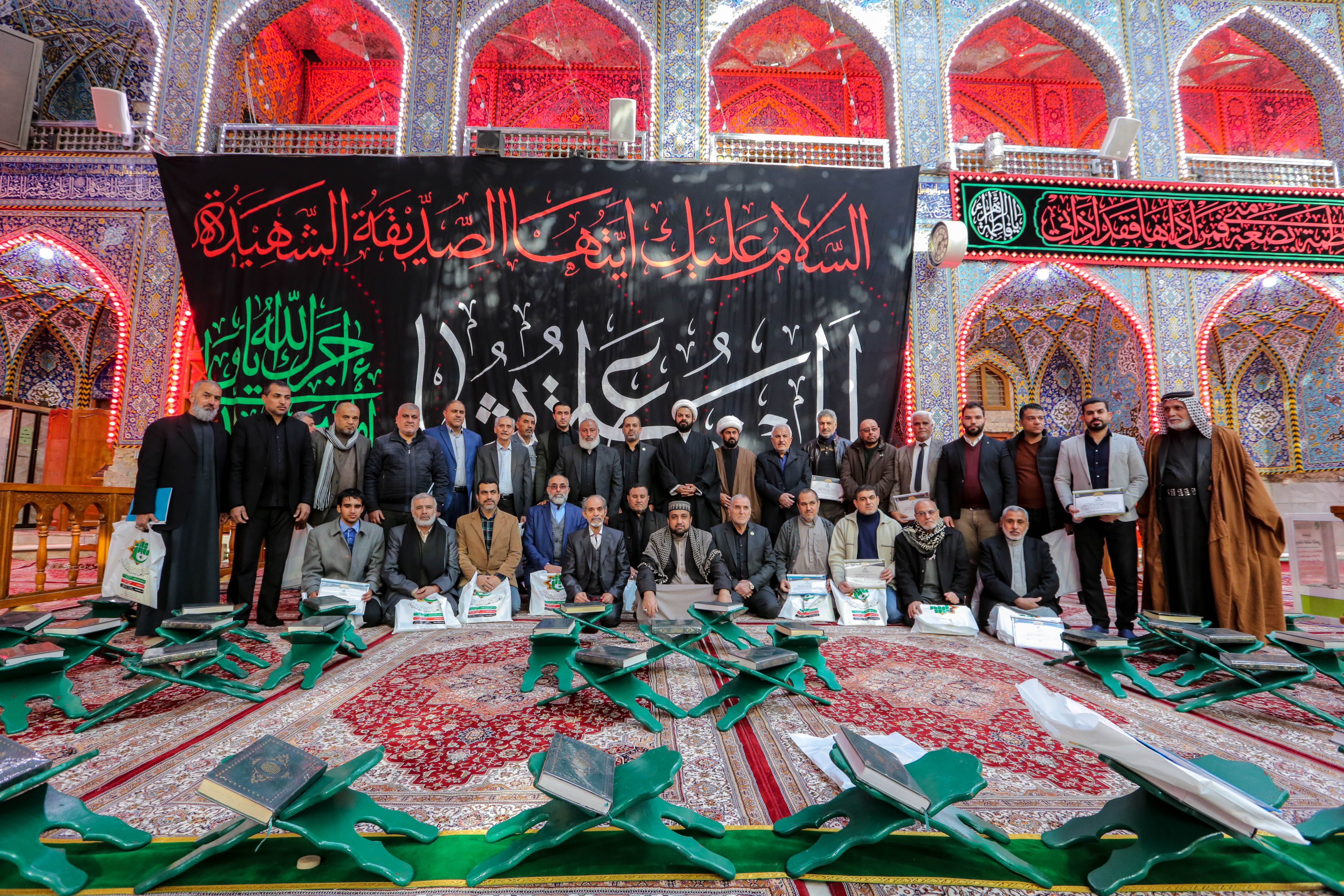 تزامناً مع استشهاد الصديقة الطاهرة السيدة الزهراء (عليها السلام) اختتم معهد القرآن الكريم / فرع بغداد التابع للعتبة العباسية المقدسة دورته الموسومة بنور الزهراء (ع) التحقيقية لتلاوة القرآن المبين، حيث احتفى بتخرج أكثر من 60 قارئاً وسط الصحن العباسي المطهر. افتتح الحفل بتلاوة مباركة تلاها قارئ العتبة العباسية المقدسة عمار الحلي، اعقبه بتلاوة مباركة لأحد طلبة الدورة القارئ الشيخ عباس الأزيرجاوي. من جانبه بين مسؤول فرع بغداد الأستاذ نبيل الساعدي لمركز الإعلام القرآني: أن هذه الدورة المباركة قد تخرج منها أكثر من 60 قارئاً متقناً للقرآن الكريم من خلال دروس مكثفة من قبل أساتذة أكفاء التي استمرت أكثر من 6 أشهر متتالية. مضيفاً: ونحن اليوم بصدد تخرج طلبة هذه الدورة ونحتفي بهم في صحن المولى ابي الفضل العباس (عليه السلام) وتزامناً مع استشهاد الصديقة الزهراء ارتأينا ان يكون تخرجهم في يوم شهادته وهي الدورة موسومة باسمها (عليها السلام). وفي ختام الحفل تم توزيع الشهادات التقديرية من قبل مدير معهد القرآن الكريم الشيخ جواد النصراوي للطلبة المشاركين في الدورة.