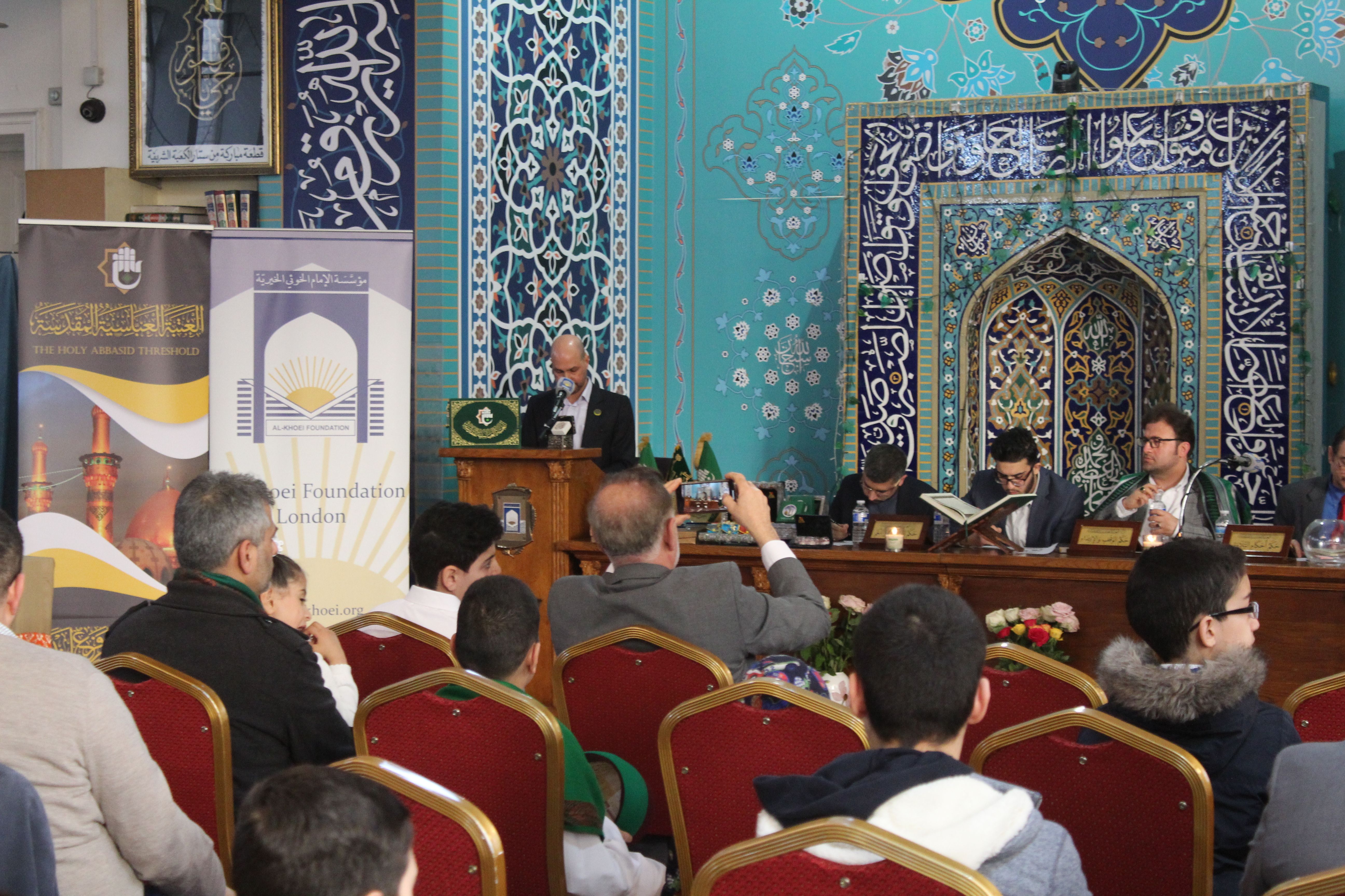 بمناسبة ولادة أمير المؤمنين علي بن ابي طالب (عليه السلام) ووسط حضور كبير من قبل شخصيّاتٍ من العلماء والأساتذة والمهتمّين بالشأن القرآنيّ والجاليات المسلمة والسفارة العراقية، أختتم معهدُ القرآن الكريم / فرع لندن التابع لقسم شؤون المعارف الإسلاميّة والإنسانيّة في العتبة العبّاسية المقدّسة وبالتعاون مع مؤسسة الامام الخوئي (قدس سره) الخيرية في لندن، المسابقةَ القرآنيّةَ الثانية في بريطانيا بطريقة الترتيل والتجويد. المسابقة أقيمت لثلاث فئات عمرية الأولى للشباب من ٢٣ إلى ١٦ سنة، والثانية لليافعين من ١٥ إلى ١١ سنة، والثالثة للبراعم من ١٠ إلى ٧ سنوات، التي احتضنتها مؤسّسةُ الإمام الخوئي في لندن وشارك فيها قرّاءٌ من مختلف المدن البريطانيّة. إدارةُ المعهد شكّلت لجنةً تحكيميّة مكوّنة من اساتذة مختصين بهذا الشأن، وقد بلغ مجموع المشاركين في المسابقة من جميع الفئات ثلاثون مشارك. كما تخلّل حفل الختام كلمة لسماحة العلامة الشيخ رشاد الانصاري التي اشاد من خلالها بدور العتبة العباسية المقدسة الرائد في خدمة القرآن الكريم والعترة الطاهرة متمثلة بمعهد القرآن الكريم وما يقدمه من انجازات قرآنية مميزة أثرت الساحة القرآنية على الصعيد الداخلي والخارجي. وفي الختام أعلنت أسماء الفائزين الأوائل وكانت النتائج كالاتي: 1- الفائز الأول عن الشباب في الترتيل القارئ عباس حسين والتجويد القارئ أحمد الغريفي 2- والفائز الأول عن اليافعين في الترتيل القارئ جعفر الشمري والتجويد القارئ محمد مهدي المظفر. 3- الفائز الأول عن الأشبال في الترتيل القارئ يوسف الشمري، والتجويد القارئ محمد الهاشمي. وتمّ تكريم الفائزين والمشاركين ولجنة التحكيم مع توزيع بعض الهدايا التبرّكية من جود أبي الفضل العبّاس (عليه السلام) على الحضور، الذين بدورهم قدموا الشكر والثناء الى مسؤولي العتبة العبّاسية المقدّسة على رأسهم سماحة المتولّي الشرعيّ لها السيد أحمد الصافي (دام عزّه) لاهتمامهم بالجالية المسلمة في بلاد الغرب وبالأنشطة القرآنيّة.