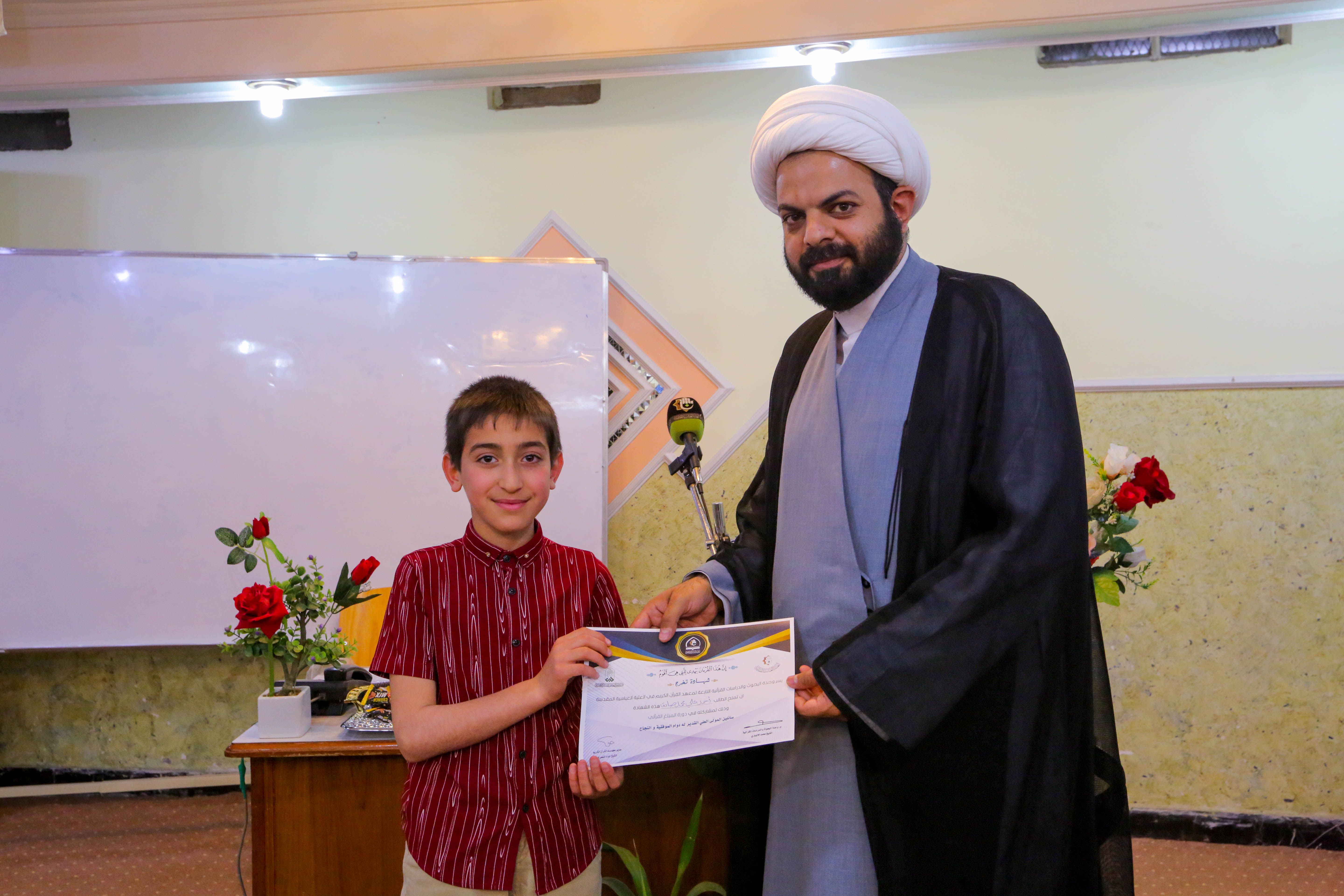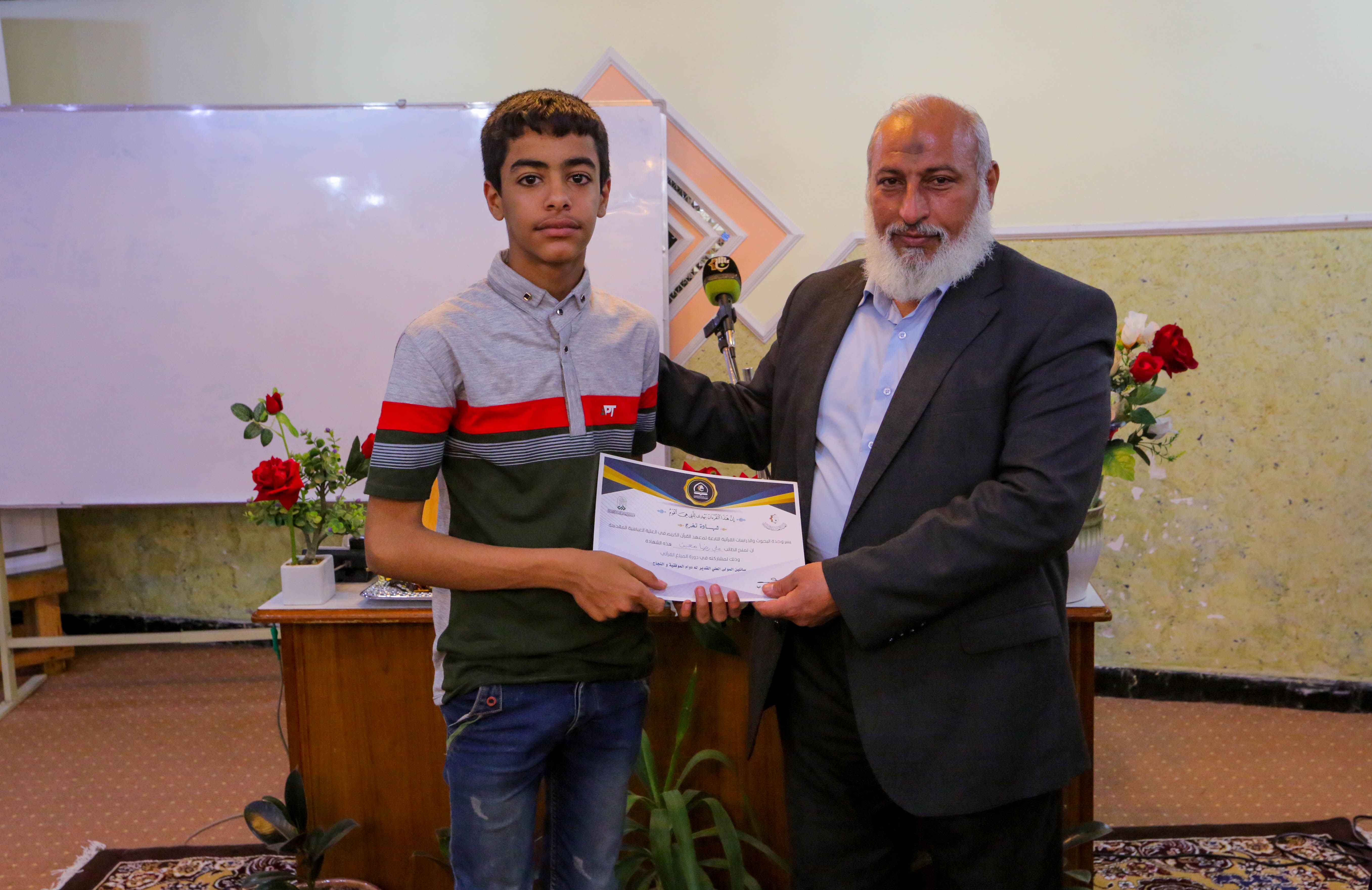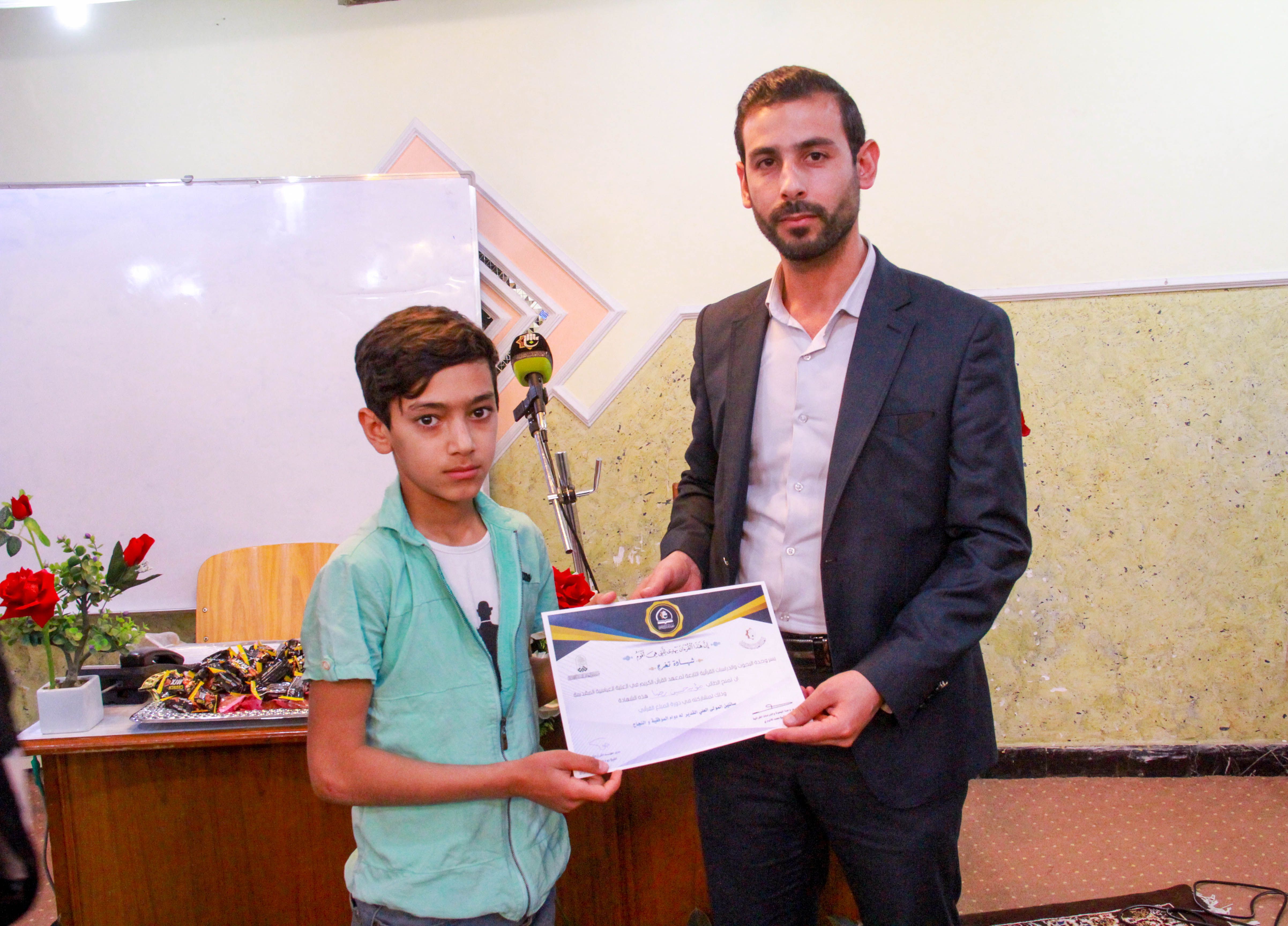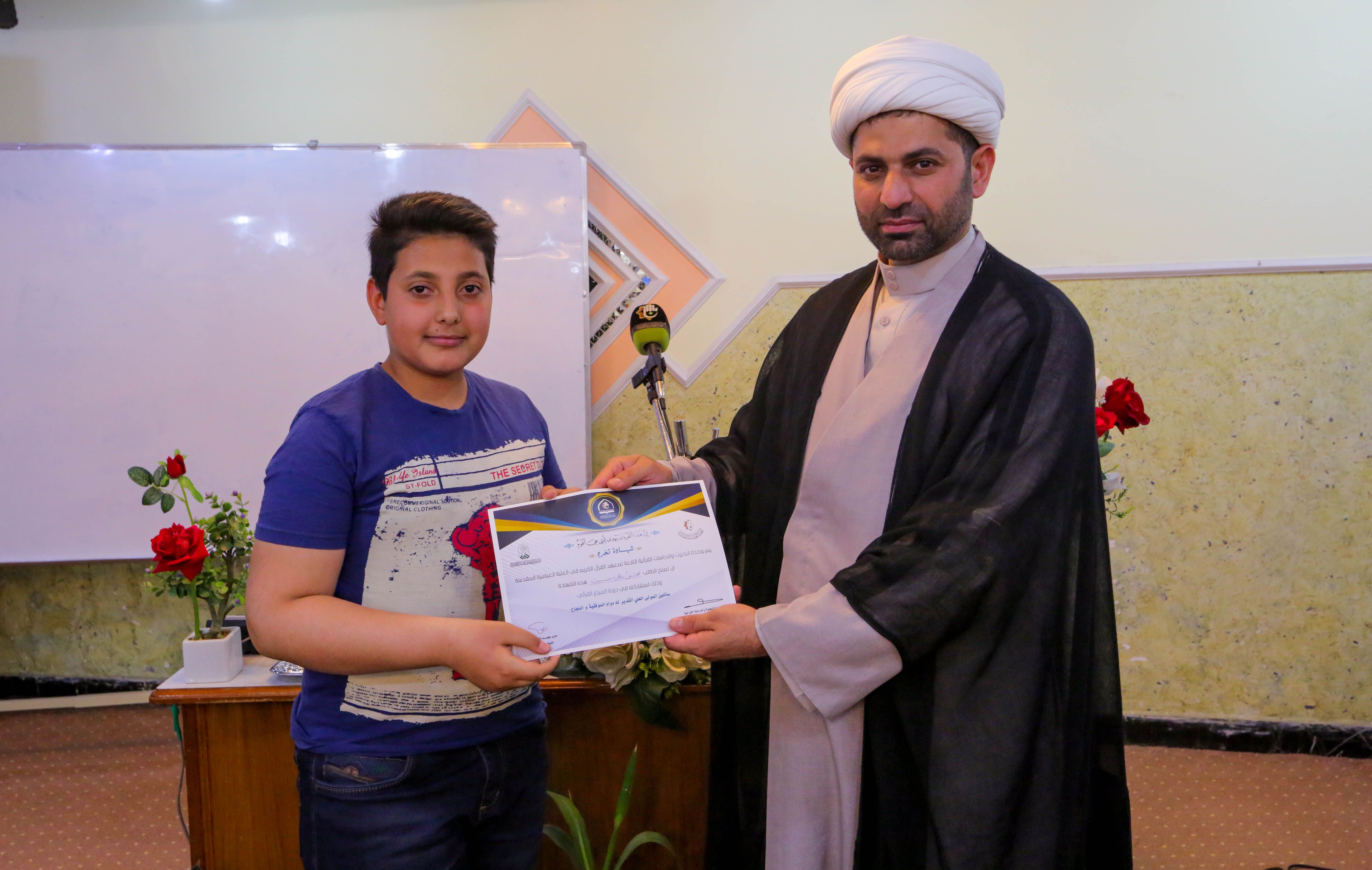تزامناً مع ذكرى الولادات الشعبانية المباركة للأقمار المحمدية، أختتم معهد القرآن الكريم التابع للعتبة العباسية المقدسة مشروع المبلغ القرآني الذي أقمته وحدة البحوث والدراسات القرآنية في مركز علوم القرآن وتفسيره وطبعه التابع للمعهد سعياً منها إلى أنشاء جيل سائر على هدي الثقلين. حفل الختام شهد فقرات متعددة حيث افتتح بتلاوة مباركة تلاها احد طلبة المشروع الموهوب احمد علي محمد، أعقبها كلمة مدير معهد القرآن الكريم الشيخ جواد النصراوي التي بارك من خلالها للطلبة المشاركين والأساتذة الحاضرين حلول شهر شعبان الخير والولادات الميمونة فيه. فيما قدم للطلبة من خلال كلمته مجموعة من النصائح والإرشادات التي يلزم إتباعها والحرص عليها مع بيان أهمية التبليغ واصفاً إياه (مهمة الأنبياء) وتبليغ ما أراد الله وهي مهمة جليلة. مخاطباً إياهم: لابد ان يتحلى المبلغ بمجموعة من الصفات التي ذكرها الأساتذة لكم خلال مدة المشروع منها ان يكون المبلغ عامل بما أراد ان يبلغ حتى يكون تأثيره اقوى والهدف منها اتباع الطريق الصحيح. كما أكد النصراوي: ان هذا المشروع هو لبنة أولى وتأسيسية لمشروع كبير الا وهو أنشاء فتية مبلغين يبلغون رسالات الله عز وجل بين اقرانهم سواء في المدارس أو مناطق سكناهم. فيما صرح المشرف على المشروع الشيخ محمد الأنباري لمركز الإعلام القرآني مبيناً: اعتمدنا أكثر من 50 طالباً موهوباً تخرجوا من مشروع الدورات القرآنية الصيفية لعام 2018، وكانوا هم أحد طلبة هذا المشروع الذي استمر 4 أشهر اعطي فيه للمشاركين دروس قرآنية من خلال منهج اعتمده المركز (منهج التلميذ الصالح) في كل يوم سبت من الأسبوع ومن خلال اشراف أساتذة قرآنيون مختصون بهذا المجال والذي تضمنت (حفظ القران الكريم، والفقه، والعقائد، والأخلاق، والسيرة). مضيفاً: المعهد قدم خدماته المضنية الى الطلبة المشاركين اضافةً الى نقلهم من محل سكناهم الى مقر المعهد وبالعكس وتوفير الاحتياجات اللازمة لإقامة هذا المشروع المبارك، وكان الهدف من المشروع هو تجذير ثقافة القرآن الكريم ليكونوا خير مبلغين لكتاب الله وعترته وينشرون الوعي القرآني عند الشباب. وفي ختام الحفل تم تكريم الطلبة بشهادات مشاركة في المشروع تثميناً لجهودهم المباركة.