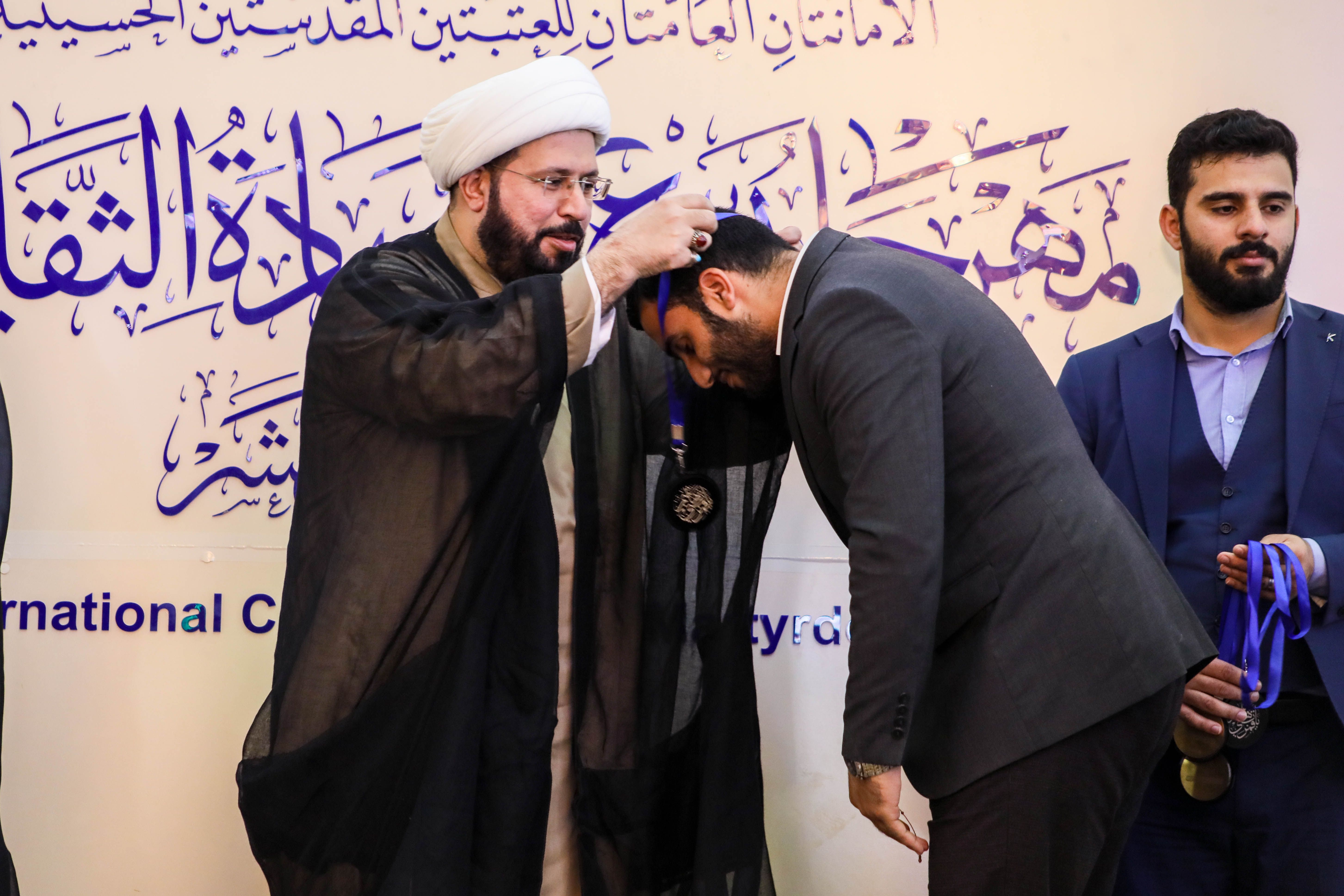 أحي معهد القرآن الكريم التابع للعتبة العباسية المقدسة أمسية قرآنية مباركة وسمتها الحضور القرآني الكبير والمميز في الصحن العباسي المطهر ضمن فعاليات مهرجان ربيع الشهادة العالمي الخامس عشر الذي تقيمه الامانتان العامتان للعتبتين المقدستين الحسينية والعباسية وبحضور أكثر من 33 دولة من دول العالم. افتتحت الأمسية بتلاوة مباركة تلاها القارئ عبد الله الحسيني أحد طلبة الدورة الاحترافية والفائز الأول في مسابقة الجامعات، جاء بعدها تلاوة عطرة شنفت اسماع الحاضرين تلاها القارئ الدولي من جمهورية مصر عدلي أبو مصطفى، فيما تلتها تلاوة جماعية لطلبة مشروع أمير القراء الوطني على طريقة مدرسة الشيخ عبد الفتاح الشعشاعي، وكان ختامها مسك مع تلاوة عطرة عانقت قباب سيد الفضل والاباء (ع) تلاها قارئ العتبة العباسية المقدسة فيصل مطر. وفي الختام تم تكريم أساتذة مشروع تعليم القراءة الصحيحة للزائرين الذي أقامه معهد القرآن الكريم في المسير المليوني لسيد الشهداء (عليه السلام) وكان عدد المستفيدين من هذا المشروع أكثر من 160،000 زائر، وارتأت إدارة المعهد القرآني المبارك ان يكون تكريمهم ضمن مهرجان ربيع الشهادة العالمي الخامس عشر وتزامناً مع الولادات الشعبانية المباركة للأنوار المحمدية.