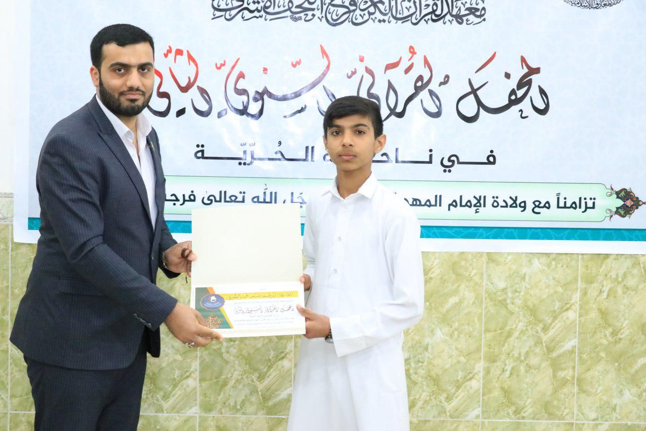 تزامناً مع الولادات الشعبانية المباركة أقام معهد القرآن الكريم / فرع النجف الأشرف التابع للعتبة العباسية المقدسة محفله القرآني السنوي الثاني في ناحية الحرية التابعة لمحافظة النجف الأشرف وبحضور قرآني كبير تحفه أجواء إيمانية. تخللت المحفل فقرات متعددة حيث افتتح بتلاوة مباركة تلاها القارئ مُحمّد سعيد العارضي، أعقبها قراءة سورة الفاتحة المباركة وإهداء ثوابها إلى أرواح الشّهداء الغيارى، جاء بعدها كلمةٌ بمناسبة الولادات المباركة القها معتمد المرجعيّة في ناحية الحريّة السّيّد عليّ الميّاليّ، تلتها كلمة معهد القُرآن الكريم ألقاها مسؤول فرع المعهد في النجف الأشرف السّيّد مُهنّد الميّاليّ التي قدم شكره من خلاها الى اهالي الناحية وهم يحتضنون الكتاب على الشغاف، مستعرضاً بعد ذلك نشاطات معهد القرآن الكريم ومشاريعه الرائدة، جاء بعد ذلك فقرة الابتهالات الدّينيّة لِلقارئ والمنشد كرّار الفتلاويّ، فيما اختتم المحفل بتلاوة لِلقارئ البُرعُم سَيف هُمام أحد طلبة مشروع أمير القُرّاء فرع النّجف الأشرف. وفي الختام وُزِّعَتْ شهاداتٌ تقديريةٌ للمساهمين في إنجاح هذا المحفل القرآني المبارك.