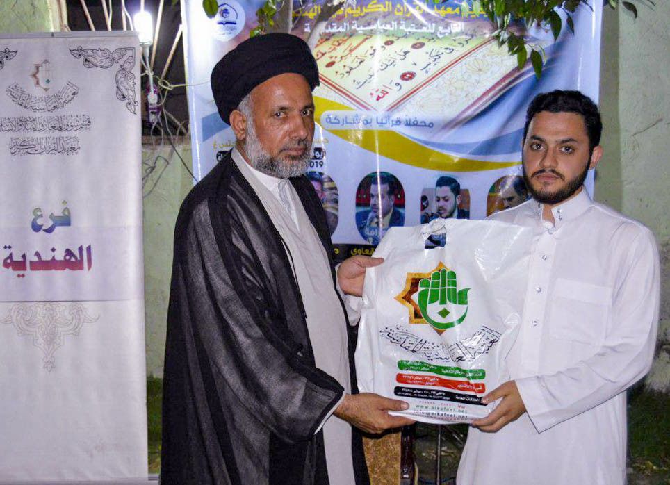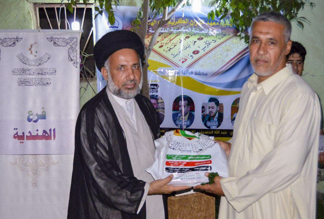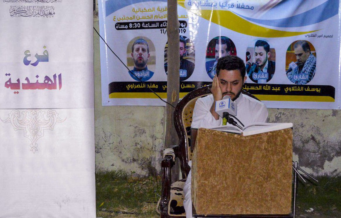 أقام معهد القرآن الكريم / فرع الهندية التابع للعتبة العباسية المقدسة محـــفلاً قـرآنياً في منطقة الصكبانية التابعة للقضاء بجامــع الامام الحسن المجتبى (عليه السلام) وبمشاركة مجموعة من القراء المبدعين. المحفل افتــــتح بتلاوة مباركة تلاها القارئ حسن الجنابي، أعقبها كــــلمة معهد القرآن الكريم القها السيد حامد المرعبي مسؤول الفرع في القضاء التي أعرب فيها عن شكره الى أهالي المنطقة لما قدموه من مشاركة في الختمة الرمضانية والتي أقيمت خلال أيام شهر رمضان المبارك كما وضح من جانبه الذكرى الاليمة لهدم قبور أئمة البقيع (عليهم السلام)، كما كانت هناك مشاركة للقارئ الحاج يوسف الفتلاوي، أما مسك الختام كانت من نصيب القارئ السيد عبد الله زهير الحسيني الذي حصد المركز الرابع عالمياً ضمن المسابقة الدولية التي أقيمت في تركيا مــؤخراً، هذا وقد تخلل الحفل قراءة القصائد والموشحــات التي صدحت بحناجر عرفت بحبها لآل البيت (عليهم السلام). وفي الختام تم توزيع الهدايا على المــشاركين في المحفل والقراء في الختمة الرمضانية.