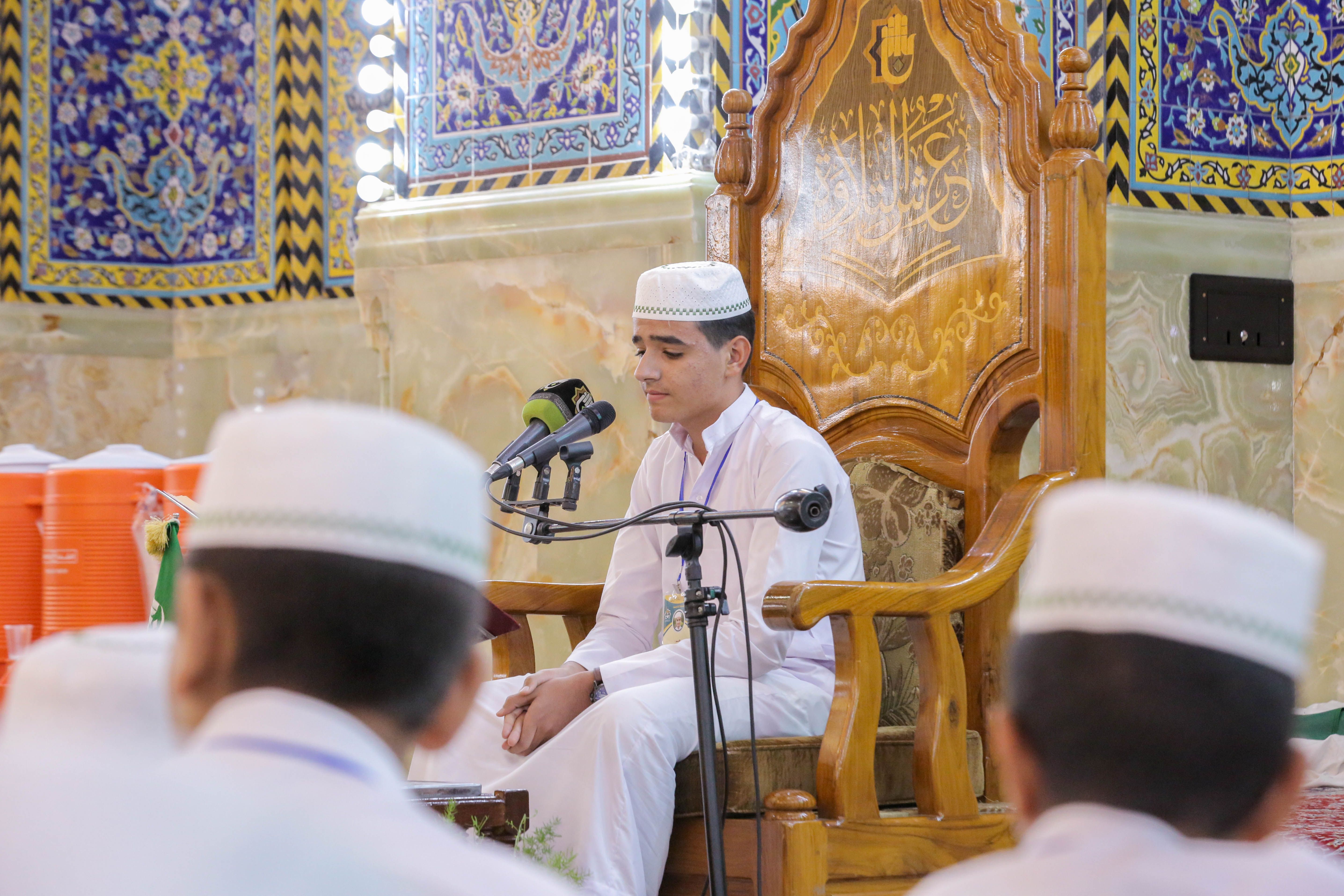 أحتشد زوار مرقد أبي الفضل العباس (عليه السلام) حول عرش التلاوة الذي شهد مشاركة مميزة لطلبة مشروع أمير القراء الوطني بنسخته الخامسة، فقد صدحت حناجر فتية المشروع بتلاوات مجودة تحاكي كبار القراء وابدعوا بتلاوات فردية وجماعية انفرد طلبة المشروع بتقديمها للمرة الأولى. المحفل أفتتح بتلاوة مباركة في الطريقة العراقية تلاها البرعم سيف همام أحد موهبي مدرسة الحافظ خليل إسماعيل، أعقبها تلاوة في الطريقة المصرية تلاها أحد طلبة مدرسة الشيخ عبد الفتاح الشعشاعي الطالب ميثم أيوب، تلتها تلاوة جماعية قدمها مجموعة من طلبة مدرسة الشيخ محمد صديق المنشاوي، جاء بعدها تلاوة جماعية لمدرسة الشيخ الشحات محمد أنور، وكان ختامها مسك مع تلاوة جماعية لأول مرة في العالم الإسلامي تحاكي مدرسة الشيخ أبو العينين شعيشع.