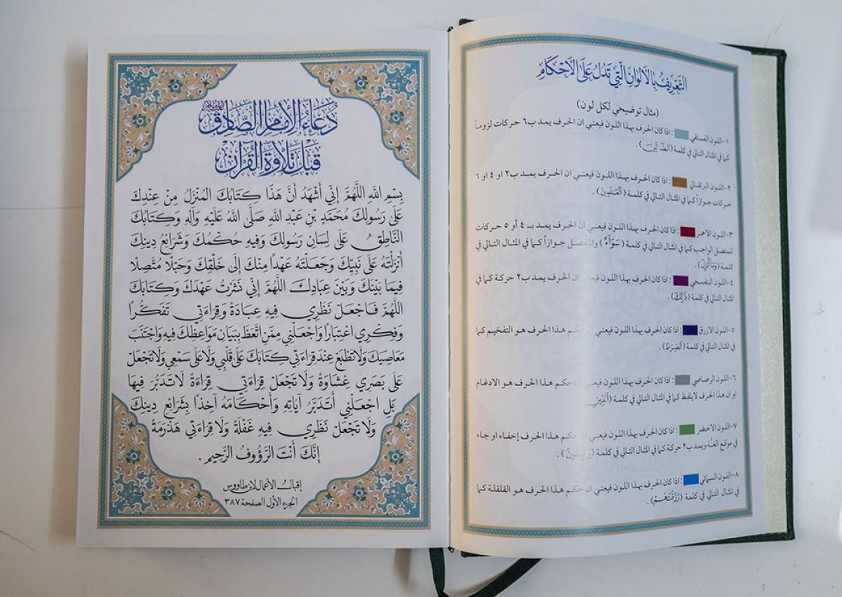 تواصلاً لإنجازاته ومشاريعه القرآنيّة الرائدة والنادرة، صدَرَ عن مركز علوم القرآن وتفسيره في معهد القرآن الكريم التابع لقسم شؤون المعارف الإسلاميّة والإنسانيّة في العتبة العبّاسية المقدّسة، مُصحفُ التجويد الملّون الخاصّ بأحكام التجويد وبخطٍّ عراقيّ ومطبعةٍ عراقيّة وتحت إشراف لجنةٍ مختصّة من المركز. مديرُ المركز الشيخ ضياء الدّين الزبيدي تحدّث لشبكة الكفيل عن هذا الإصدار قائلاً: "إنَّ المصحف الذي رأى النور مؤخّراً ما هو إلّا نتيجة الدّعم والعناية التي توليها العتبةُ العبّاسية المقدّسة، لمركز القرآن الكريم وعلومه الذي قطع أشواطاً كبيرة، وما هذه الثمرة إلّا جزءُ من ثمارٍ ستُقتطف لاحقاً". وبيّن الزبيدي أنّ أهمّ مميّزات هذا المصحف هي: - طُبِع المصحف في مطبعة دار الكفيل للطباعة والنشر والتوزيع بورقٍ ذي نوعيّةٍ جيّدة وطِباعةٍ فاخرة وبالحجم الوزيريّ. - خطّ المصحفُ بأنامل الخطّاط العراقي حميد السعدي بمشاركة الخطّاط العراقيّ السيّد محمد المشرفاوي. - الألوان التي طُبع بها قد أَضْفت عليه جمالاً وسحراً إضافةً الى ما يتعلّق بجماليّة الإعداد والتصميم. - روعيت في تصميم المصحف أمورٌ جماليّة أضافت إليه لمساتٍ فنيّة. - الخطّ الذي خُطّ به المصحف هو (خطّ النسخ) الذي يتميّز بأنّه واضحٌ وتسهل على القارئ قراءته دون عناء. - تميّز المصحفُ بالعلامات والإشارات ذات الألوان الخاصّة بعلم التجويد المعروفة، وبخطٍّ واضح. - امتاز بحركاتٍ واضحة وسهلة ومفيدة جدّاً لمن أراد أن يتعلّم فنّ القراءة والتجويد بشكلٍ صحيح ومتقن. - أُنجز ودُقّق وروجع المصحفُ تحت إشراف لجنةٍ علميّة متخصّصة بالعلامات والإشارات الخاصّة بالمدّ والغنّة والتفخيم وغيرها. - المصحفُ المجوَّد هو دليلٌ لكلِّ مَنْ يريد أن يتعلّم القراءة الصحيحة للقرآن الكريم. - المصحف المجوَّد بيّنَ أحكام التلاوة والتجويد، وذلك بوساطة العلامات الموجودة في الشريط المثبّت أسفل الصفحات، فكلّ لونٍ يُعطي حكماً من أحكام التجويد للقرآن الكريم. يُذكر أنّ مركز علوم القرآن وتفسيره وطبعه هو أحدُ المراكز الفاعلة في معهد القرآن الكريم، وقد أخذ على عاتقه العديد من المشاريع القرآنيّة المهمّة التي تسهم في ترسيخ الثقافة القرآنيّة وتجذيرها، وتقع في مقدّمتها طباعة المُصحف الخاصّ بالعتبة العبّاسية المقدّسة، وهو منجزٌ قرآنيّ كبير؛ لأنّه أوّل مُصحفٍ يُخطّ ويُطبع في العراق بعد أن كانت طباعة المُصحف وخطّه حكرًا على بعض المؤسّسات القرآنيّة خارج البلاد.