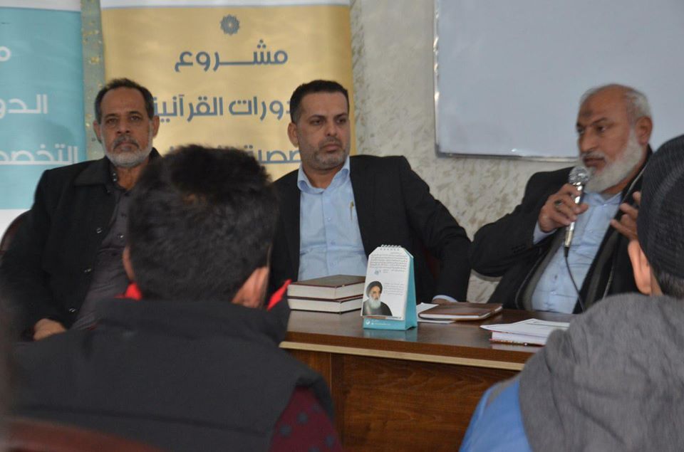 أطلع وفد معهد القران الكريم التابع للعتبة العباسية المقدسة على دروس الدورات القرآنية التخصصية النموذجية التي يقيمها فرع المعهد في بغداد وأبداء ملاحظاتهم بمادة الصوت والنغم واحكام التلاوة والتجويد.