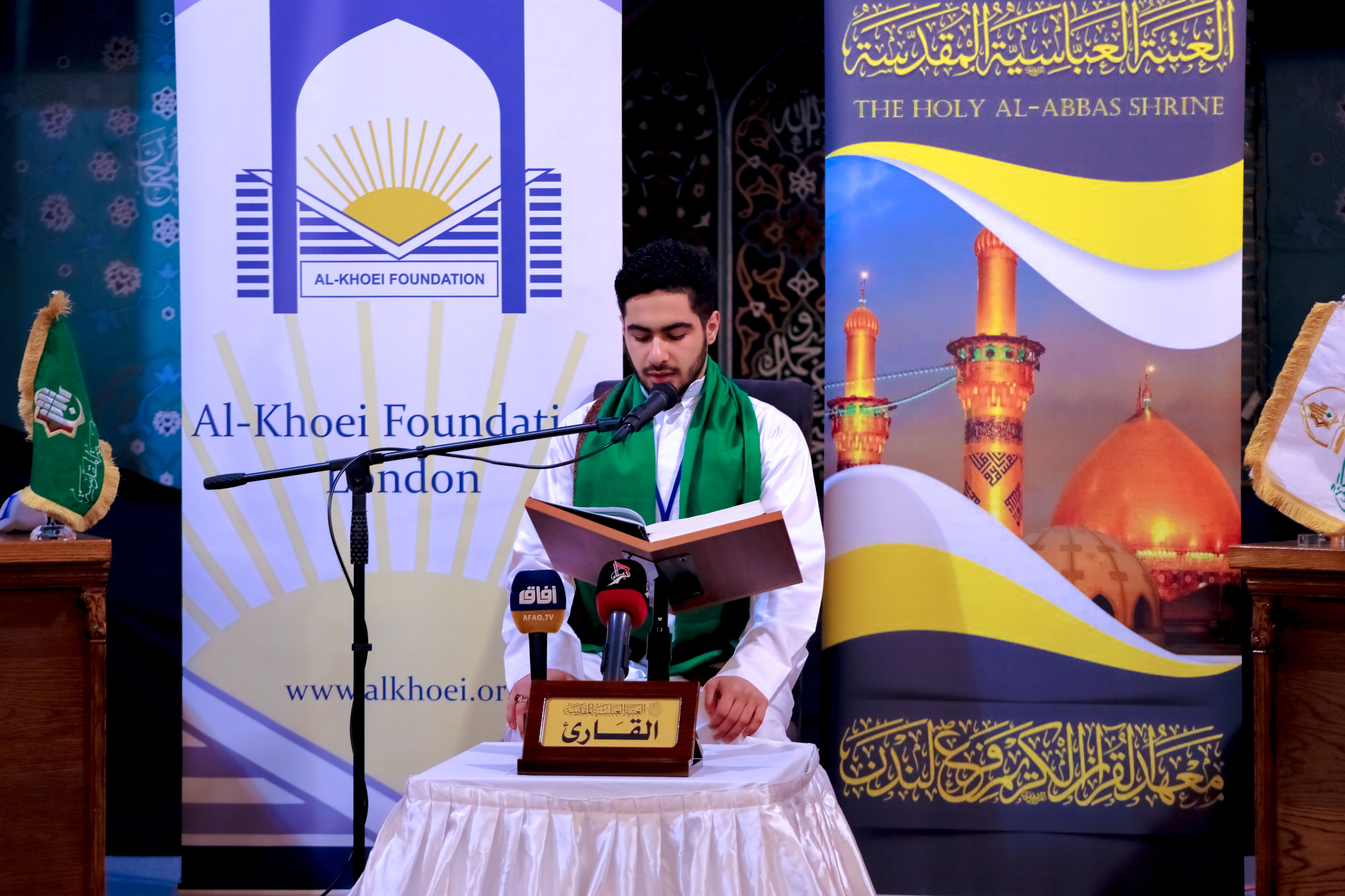 أختتم معهدُ القرآن الكريم / فرع لندن التابع لقسم شؤون المعارف الإسلاميّة والإنسانيّة في العتبة العبّاسية المقدّسة وبالتعاون مع مؤسسة الامام الخوئي "قدس سره " الخيرية بلندن، المسابقةَ القرآنيّةَ الثالثة في بريطانيا بطريقة الترتيل والتجويد، ووسط حضور كبير من قبل شخصيّاتٍ من العلماء والأساتذة والمهتمّين بالشأن القرآنيّ والجاليات المسلمة. المسابقة اختتمت في ذكرى ولادة السيدة زينب (عليها السلام)، حيث شارك فيها ثلاث فئات عمرية الأولى للشباب من ١٦إلى ٢٣سنة، والثانية لليافعين من ١١ إلى ١٥ سنة، والثالثة للبراعم من ٧ إلى ١٠ سنوات، الذين بلغ عددهم (32) قارئ من مختلف المدن البريطانيّة، وبإشراف لجنةً تحكيميّة مكوّنة من اساتذة مختصين بهذا الشأن. الحفل تخلّله كلمة للمشرف على فرع المعهد ومدير مركز علوم القرآن وتفسيره وطبعه الشيخ ضياء الدين الزبيدي، التي ذكر فيها مآثر السيدة زينب (عليها السلام) واشاد بالمشاركين في هذه المسابقة وبحبهم للقرآن الكريم والمثابرة بهذا المجال المبارك، كما عرج على ذكر إنجازات العتبة العباسية المقدسة الرائدة في خدمة القرآن الكريم والعترة الطاهرة متمثلة بمعهد القرآن الكريم وما يقدمه من انجازات قرآنية مميزة أثرت الساحة القرآنية على الصعيد الداخلي والخارجي.