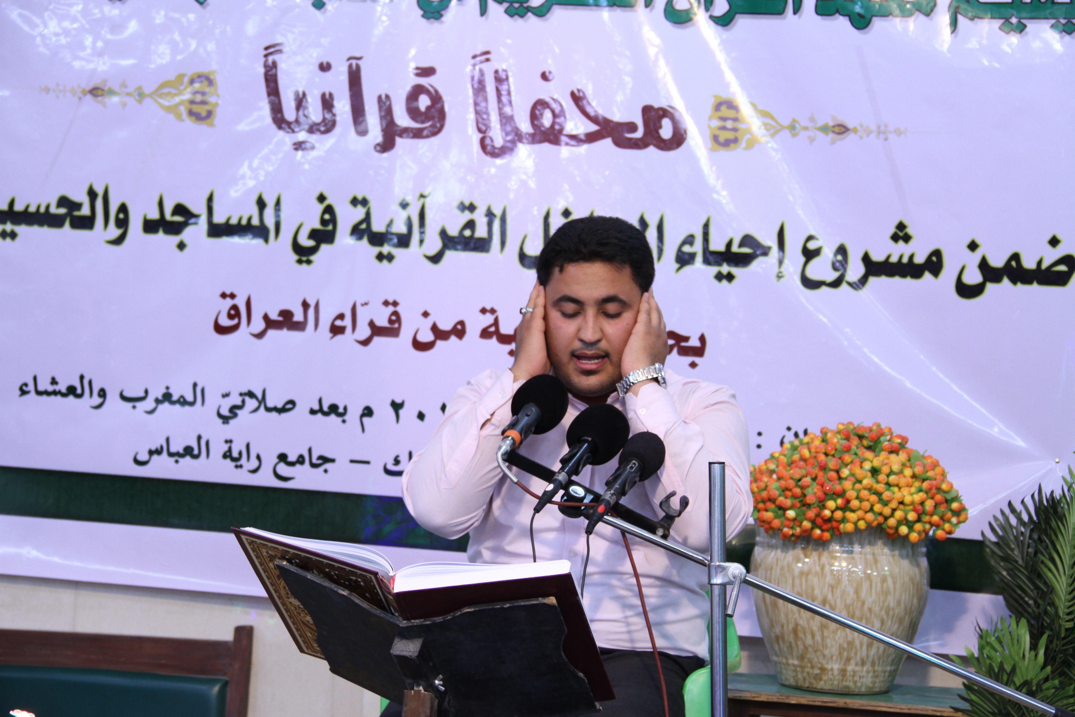 بحضور قرآني كبير أقام معهدُ القرآن الكريم التابع للعتبة العباسية المقدسة يوم الاثنين الموافق 11/5/2015محفلاً قرآنياً مباركاً في جامع وحسينية (راية العباس_عليه السلام) في قضاء عفك بمحافظة الديوانية ,ضمن المشروع الوطني لإحياء المحافل القرآنية في المساجد والحسينيات . المحفل استُهل بآيات من كتاب الله العزيز تلاها القارئ(ليث العبيدي) بعدها صدحت حنجرة الملا(حيدر الجبوري ) ببعض الابيات الشعرية والتي تغنى بها بالقرآن الكريم وأهل البيت (عليهم السلام) اعقبها تلاوة عطرة للقارئ(مصطفى الحمدان) بعدها استمع الحاضرون إلى تلاوة مباركة للقارئ السيد(حسنين الحلو) ,وتجدر الاشارة إلى أن الحفل تخلله توزيع اوراق تحتوي مجموعة من الاسئلة لتجرى القرعة على اصحاب الاجابات الصحية لتوزع الجوائز على الـ(5) الأوائل الفائزين منهم وهو مسك ختام المحفل المبارك.