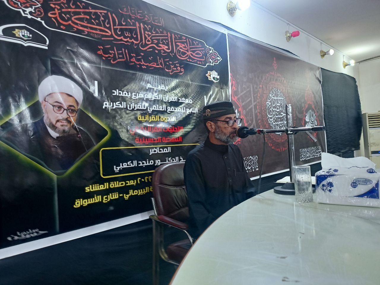 أقيمت الندوة في مسجد وحسينية الحاجة (فخرية البيرماني) بمنطقة الشعب، وتخللها شرح مفصل من لدن المحاضر لتجليات القرآن الكريم وأثره الكبير في نهضة الإمام الحسين (عليه السلام) ضد الظلم والجور الحادث في ذلك الزمان.