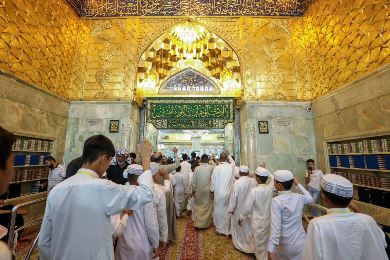 زار طلبة مشروع الدورات القرآنية الصيفية في محافظة المثنى الذي يقيمه معهد القرآن الكريم التابع للمجمع العلمي للقرآن الكريم في العتبة العباسية المقدسة، العتبتين المقدستين في كربلاء المقدسة.rnالطلبة تشرّفوا بزيارة الإمام الحسين وأخيه أبي الفضل العباس (عليهما السلام)، أعقبها زيارة المتحف الشريف في الصحن الطاهر للمولى قطيع الكفين، تلتها محاضرة فكرية تضمنت مجموعة من القيم والمضامين الأخلاقية القرآنية قدّمها الشيخ علي الرويعي أحد أساتذة المعهد، بعدها تبرّكوا بوجبة غداء في مضيف العتبة العباسية المقدسة.rnالطلبة من جانبهم شكروا العتبة العباسية المقدسة على ما تقدّمه من رعاية معرفية تربوية قُدمت لهم طيلة أيام مشروع الدورات القرآنية الصيفية.rnيذكر أن طلبة مشروع الدورات القرآنية الصيفية تلقّوا دروسًا في (القرآن الكريم، والعقائد، والفقه، والأخلاق، والسيرة)، مضافًا إلى تعلم معارف فكرية أخرى.