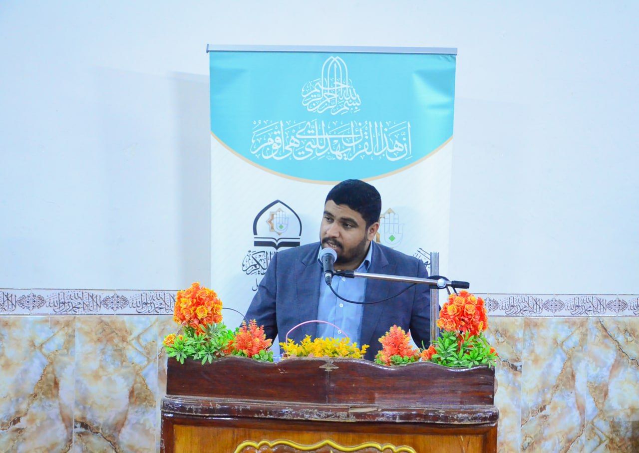 يواصل معهد القرآن الكريم فرع بابل التابع للمجمع العلمي للقرآن الكريم في العتبة العباسية المقدسة إقامة محافله المباركة ضمن مشروع منابر قرآنية بغية نشر الثقافة القرآنية في عموم محافظة بابل.rnالمحفل الذي احتضنته حسينية الإمام المهدي عجل الله فرجه الشريف في القضاء انطلق بتلاوة مباركة لقارئ العتبتين المقدستين السيد حيدر جلوخان الموسوي جاءت بعدها وقفة استذكار لشهداء العراق الأخيار تلتها كلمة مدير معهد القرآن الكريم فرع بابل السيد منتظر المشايخي بين من خلالها أهم الأنشطة القرآنية التي قدمها الفرع خلال الأعوام الماضية والتي شملت الدورات الصيفية والمحافل القرآنية والندوات الفكرية بالاضافة إلى دورات أحكام التلاوة والتجويد .rnrnوأكدّ المشايخي أنّ عام 2023م سيشهد نشاطات وفعاليات كبيرة متنوعة ستلاقي استحسان أهالي القضاء عمومًا والمتخصصين في الشأن القرآني على وجه الخصوص، مختتمها بالشكر والثناء للحاضرين والمشاركين في أنشطة المعهد.rnهذا وقد تضمن المحفل تلاوة أخرى للقارئ منتظر موفق ياسر تبعتها أبيات الحب والولاء لآل البيت النجباء صدحت بها حنجرة المنشد رائد القاسمي ليكون الختام مع قارئ العتبتين المقدستين الحسينية والعباسية القارئ فلاح زليف.rnيذكر أنً الحفل تضمن تكريمًا لأساتذة القضاء الذين شاركوا في مشروع الدورات الصيفية القرآنية لعام 2022م.