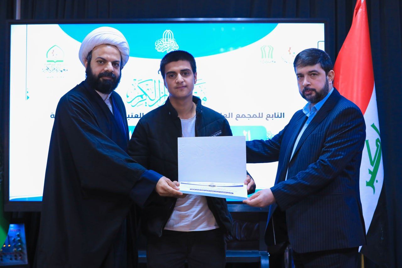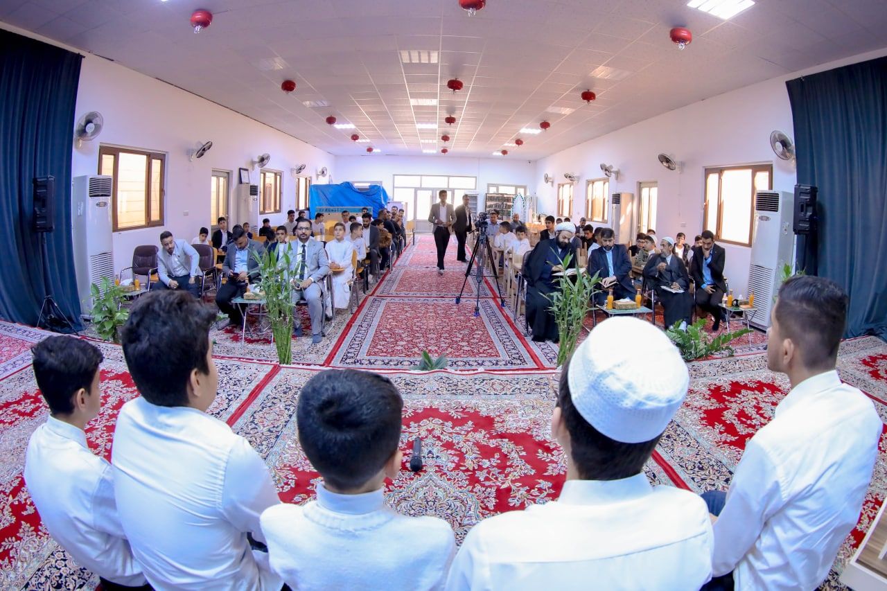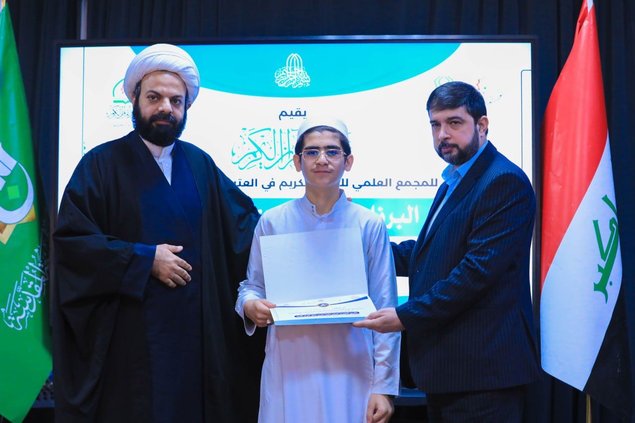 أقيم صباح اليوم الموافق 19/11/2022م حفل اختتام البرنامج التطويري الصيفي لطلبة مشروع حفظ القرآن الكريم في كربلاء المقدسة الذي أقامته وحدة التحفيظ في معهد القرآن الكريم التابع للمجمع العلمي للقرآن الكريم في العتبة العباسية المقدسة، وشارك فيه (40) طالبًا واستمر لمدةِ ثلاثةِ أشهرٍ تلقى خلالها الطلبةُ دروسًا مكثّفةً في حفظِ كتابِ اللهِ العزيزِ بهدفِ زيادةِ حفظِهم وتثبيتِ الحفظِ السابقِ.rnافتتح الحفل بتلاوة آيٍ من الذكر المبين تلاها أحد طلبة المشروع الطالب (محمد جعفر)، تلتها كلمة المجمع العلمي للقرآن الكريم ألقاها رئيسه الأستاذ الدكتور (مشتاق العلي)rnلمشاهدة الكلمة كاملة : https://alkafeel.net/quran/news?i=1395rnrnrnتلتها مشاركة شعرية لأحد براعم المشرع بقصيدة حسينية، أعقبها فقرة لطلبة البرنامج استعرضوا فيها مهارتهم في الحفظ من خلال الإجابة على أسئلة الحضور، وختامًا تم تكريم أساتذة البرنامج والطلبة المشاركين.rnيذكر ان البرنامج قدم فيه دروسًا مكثفةً في حفظِ كتابِ اللهِ العزيزِ بهدفِ زيادةِ حفظِهم وتثبيتِ الحفظِ السابقِ، بواقع فترتين صباحية ومسائية وتضمن محاضراتٍ تربويةً وأوقاتٍ للرياضةِ والراحةِ، ويوفرُ لطلبته وجباتٍ غذائيةً، وشهدَ سفراتٍ لزيارةِ المراقدِ المقدسةِ، والمرجعيةِ الدينيةِ في النجفِ الأشرفِ، وقدمت فيه هدايا تشجيعية للطلبة المتميزين فضلاً عن التحفيز المستمر الذي يقدّمه المعهدُ لطلبةِ مشروعِ حفظِ القرآنِ الكريم في كربلاء المقدسة والمحافظات.