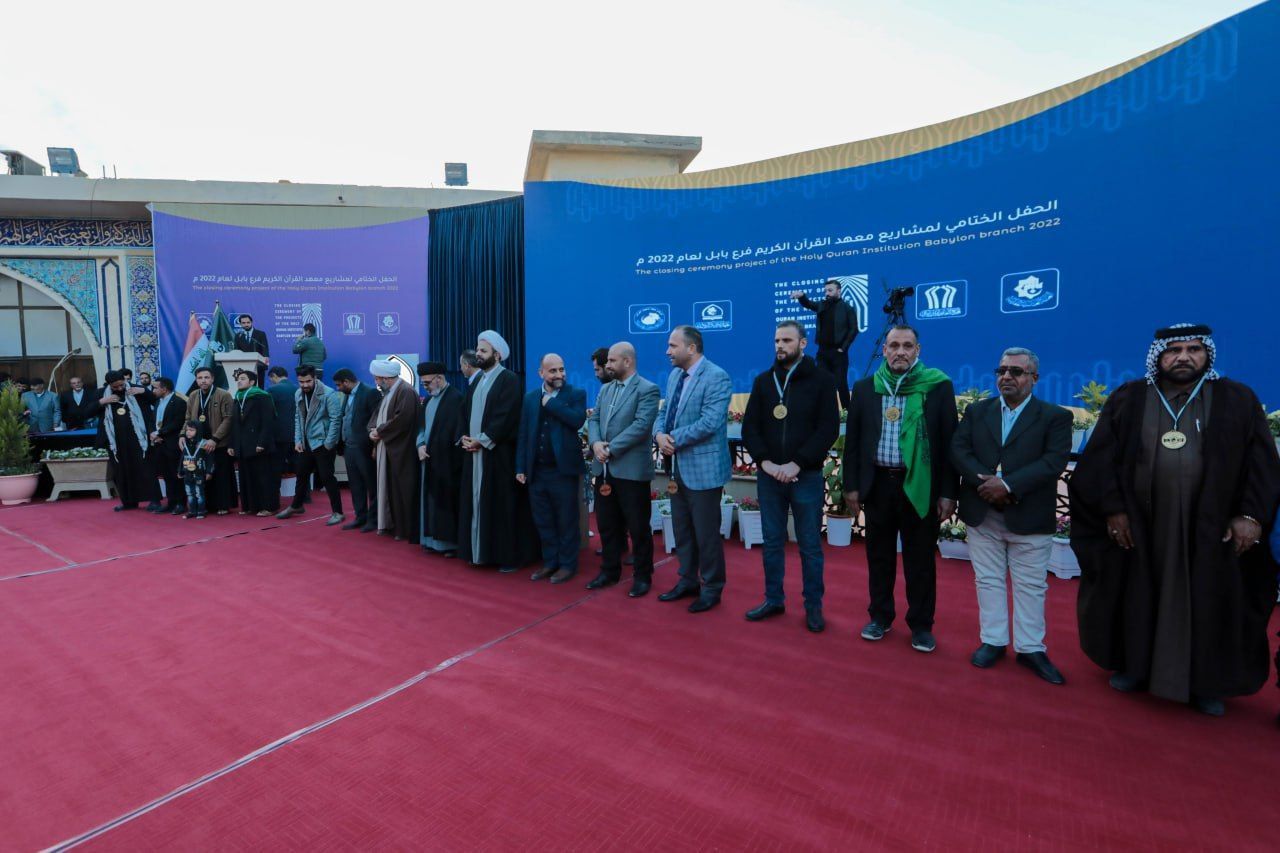 اختتم معهد القرآن الكريم فرع بابل التابع للمَجمع العلمي للقرآن الكريم في العتبة العباسية المقدسة، اليوم الجمعة الموافق ١٠/٢/٢٠٢٣ مشاريعه القرآنية لعام ٢٠٢٢ في المحافظة وسط حضور كبير.rnالحفل أقيم في أروقة مزار زيد الشهيد -عليه السلام-، وافتتح بتلاوة للقارئ يوسف حكيم، تلتها قراءة سورة الفاتحة على أرواح شهداء العراق، أعقبتها كلمة الأمانة العامة للعتبة العباسية المقدسة ألقاها ممثلًا عنها معاون رئيس المَجمع العلمي للقرآن الكريم الدكتور (لواء عبد الحسين) التي رحب فيها بالحضور، وشكر جهود القائمين على فرع المعهد وثمّن دورهم في تعزيز المشاريع القرآنية بالمحافظة، كما بين الدور الكبير الذي تتبناه العتبة المقدسة في الجانب القرآني ونشر علوم الثقلين الشريفين في ربوع بلدنا الحبيب، وثمن أيضًا دور الاساتيذ الذين يعلّمون علوم القرآن الكريم في المحافظة.rnتلتها كلمة معهد القرآن الكريم ألقاها ممثلًا عنه مسؤول فرع بابل السيد (منتظر المشايخي)، التي بيّن فيها بعض المشاريع التي أقيمت في المحافظة خلال عام ٢٠٢٢ واقيم على هامشها حفل الختام، وكان منها (مشروع الحقيبة القرآنية، ومشروع ملتقى النورين الرمضاني، ومشروع الدورات الصيفية، وتعليم القراءة الصحيحة للزائرين) وغيرها الكثير من المشاريع شاكرًا خلال كلمته الأمانة العامة للعتبة المقدسة، وإدارة المجمع العلمي، ومعهد القرآن الكريم، وجميع العاملين في خدمة الثقلين الشريفين، الذين بذلوا جهودا كبيرة من أجل إنجاح هذه المشاريع في بابل، فيما أعلن عن الشروع بخطة عام 2023 عادها بالمكملة لمشاريع المعهد الرائدة.rnوشهد الحفل عرضًا دراميًا بعنوان (فيض سيد الماء)، شارك فيه نخبة من الممثلين، وعرضًا وثائقيًا يشرح نشاطات الفرع خلال العام المنصرم، كما شهدت هذه الفقرة تلاوة جماعية لعدد من طلبة الفرع، ونشيدا خاصا بالمعهد، وختاماً كُرم جميع المشاركين في فعاليات هذه المشاريع من لدن العتبة العباسية المقدسة.