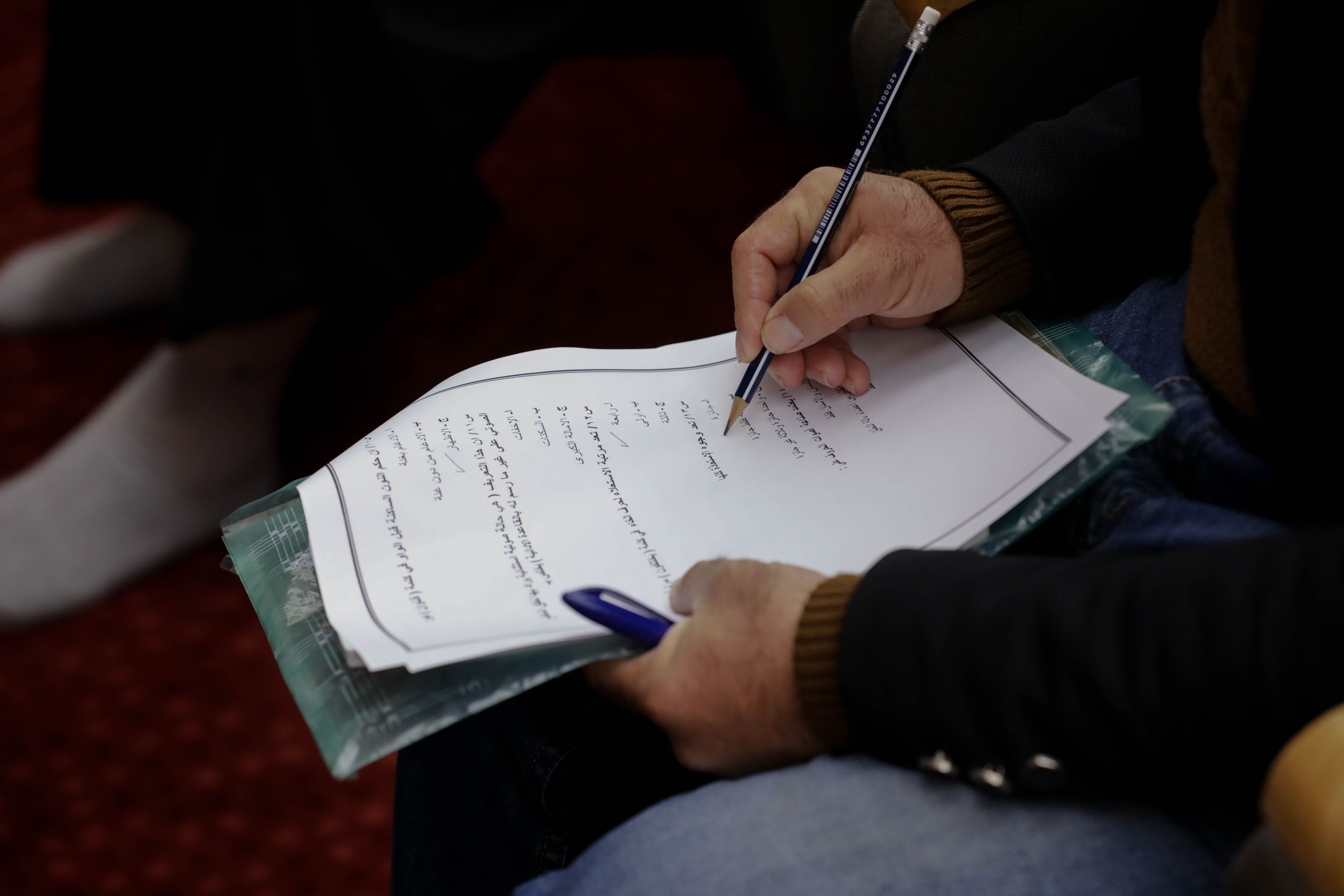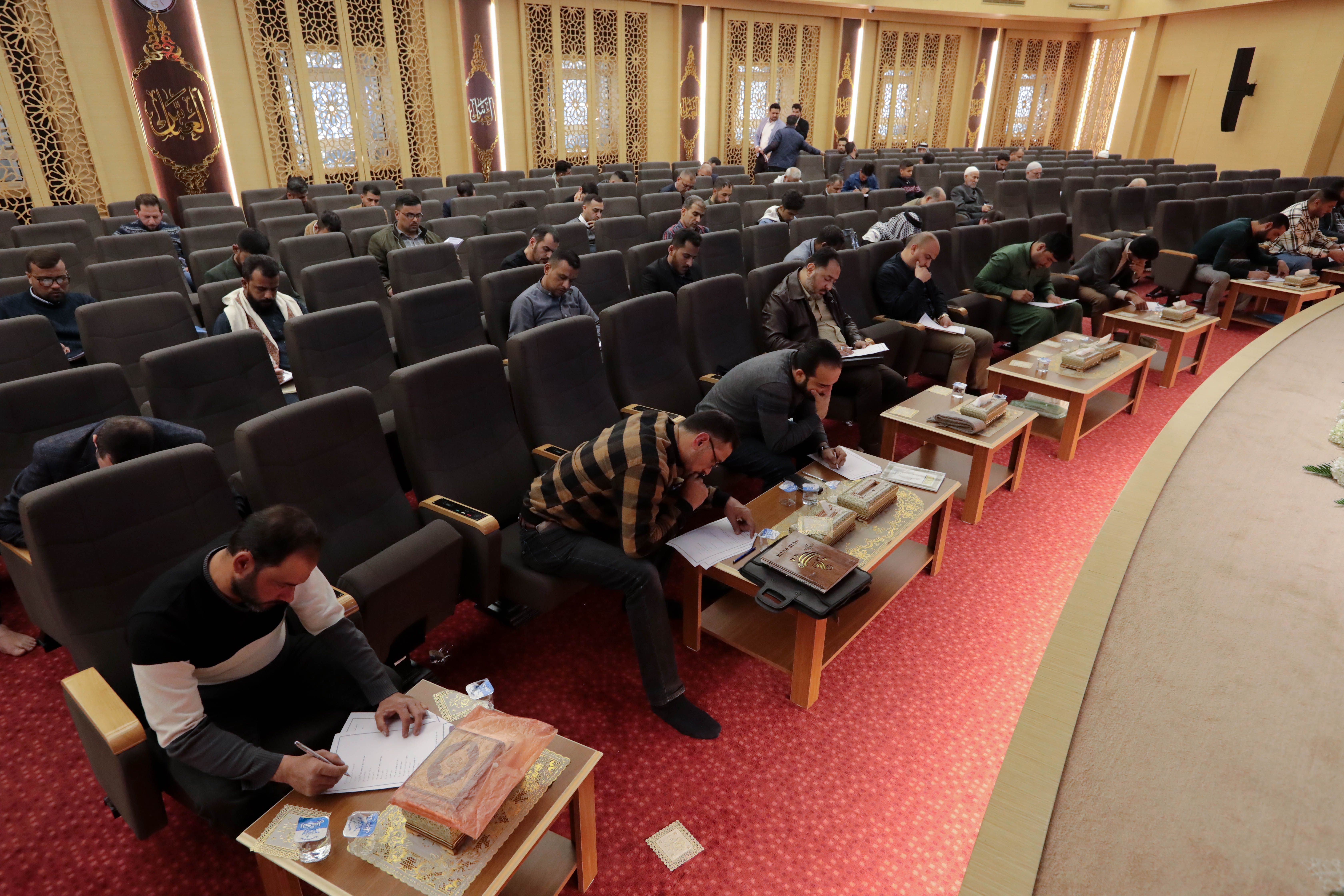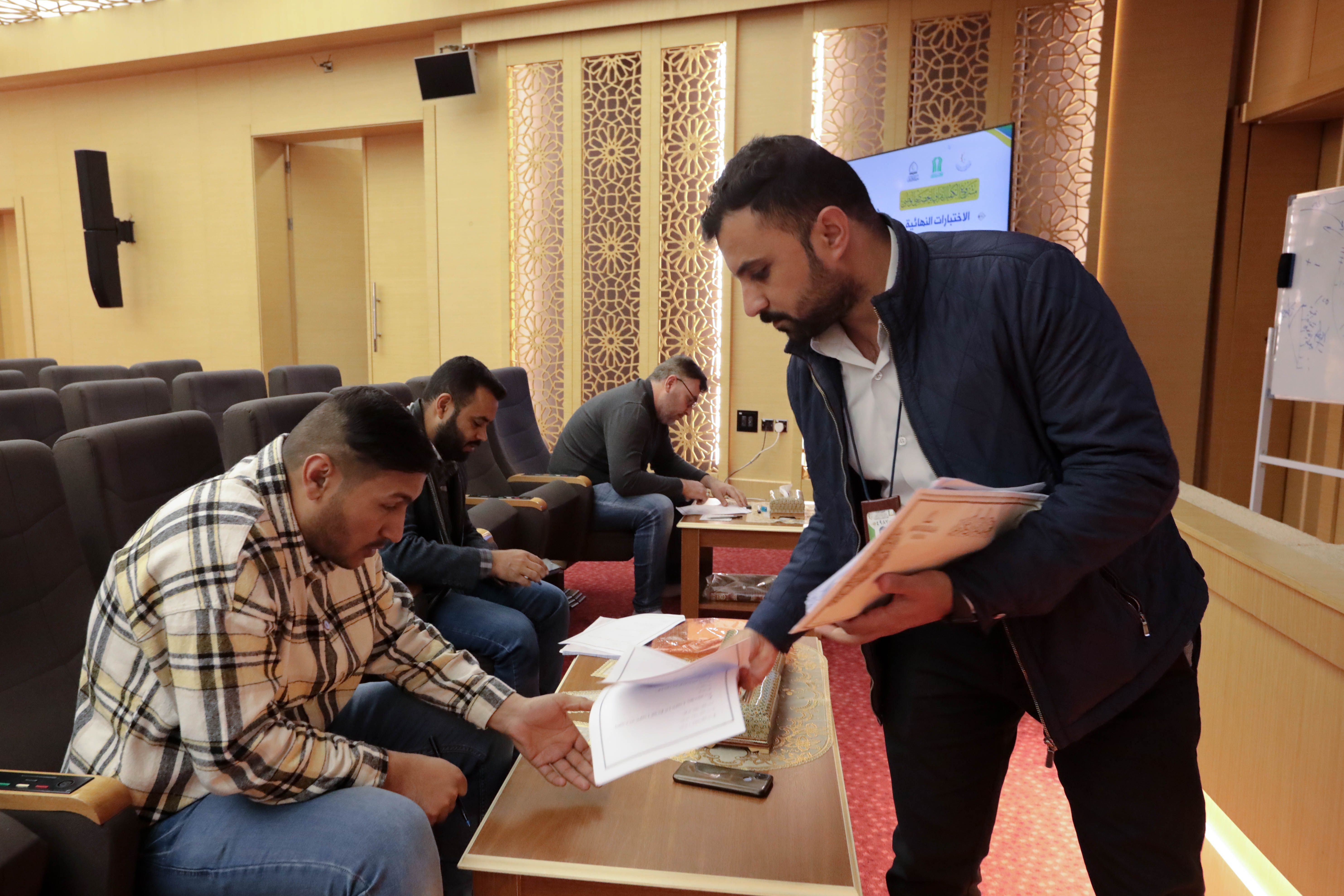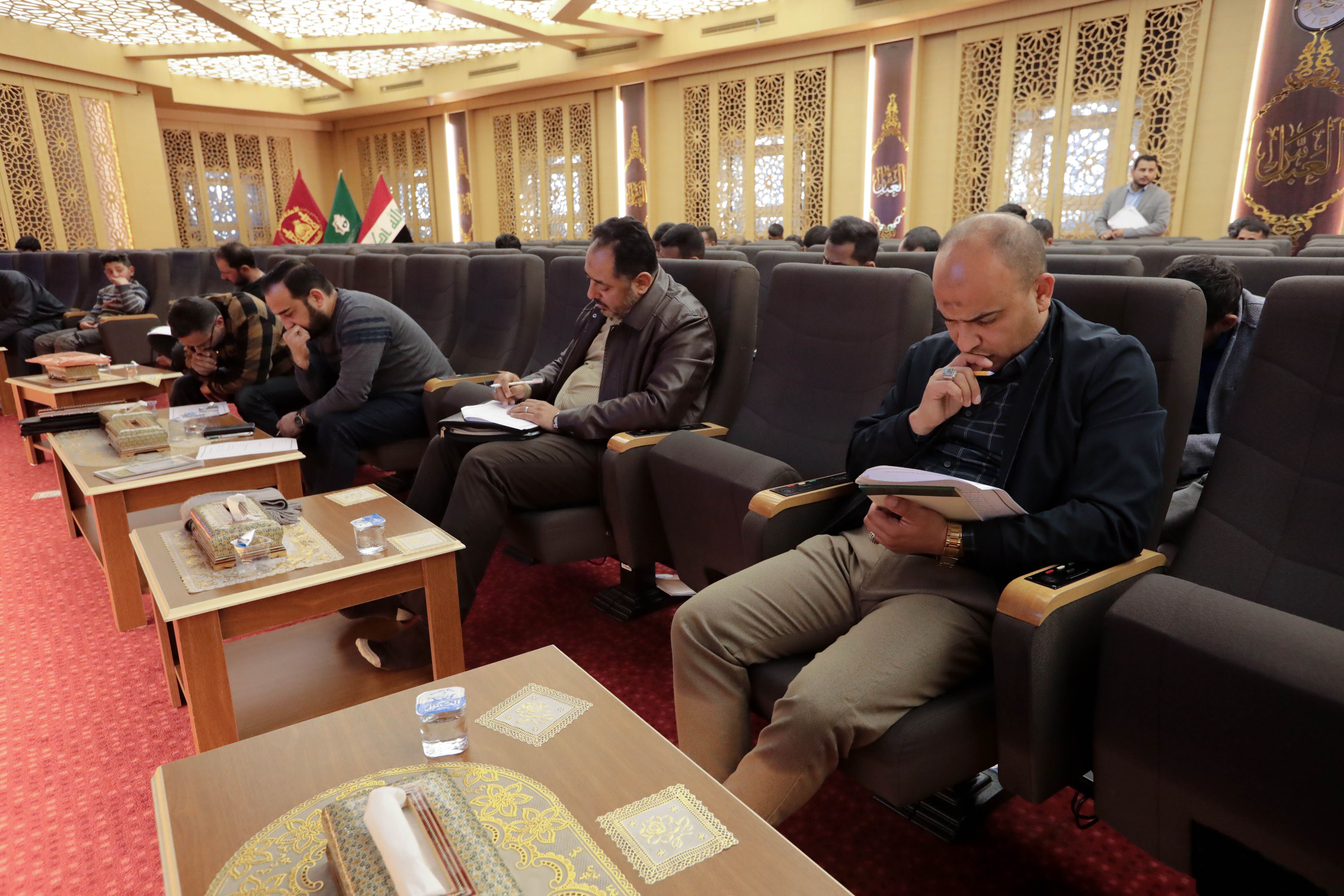 أدى طلبة مشروع الكفيل القرآني التخصصي الذي يقيمه معهد القرآن الكريم التابع للمجمع العلمي للقرآن الكريم في العتبة العباسية المقدسة الاختبار النهائي النظري لمادة أحكام التلاوة التي يقدّمها الدكتور رافع العامري، وتكوّنت من أسئلة متنوعة تخصّ الدروس التي قدمت للمشاركين.rnالاختبارات أقيمت في قاعة الإمام الحسن -عليه السلام- في العتبة العباسية المقدسة، وجاءت بهدف قياس مستوى تقدم المشاركين في المادة ومعرفة الفروق الفردية بينهم في الدروس التي تلقوها طيلة أيام الدورة المقامة ضمن المشروع، وهناك اختبارات عملية سيخوضها المشاركون تحدد مدى افادتهم من دروس المشروع.