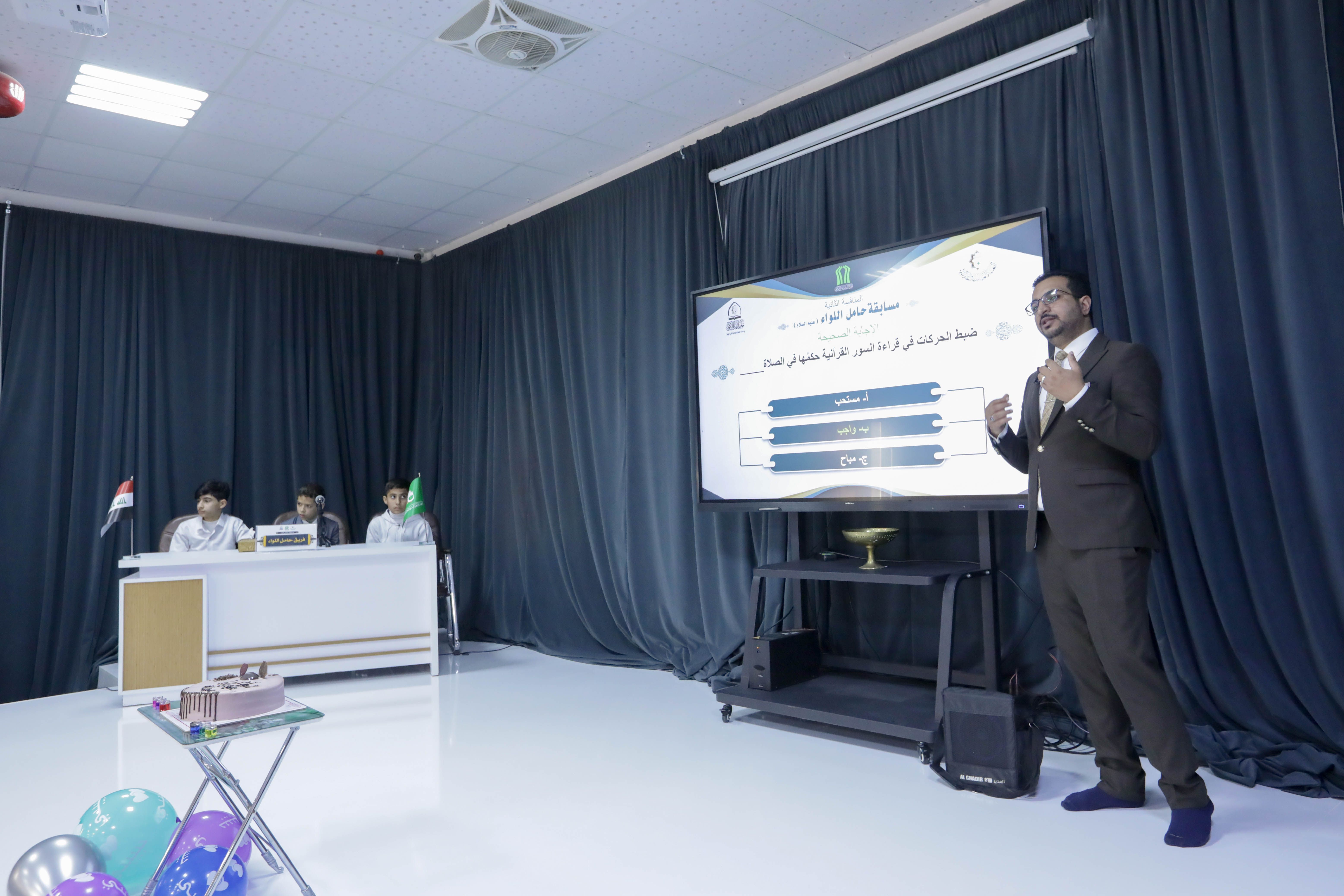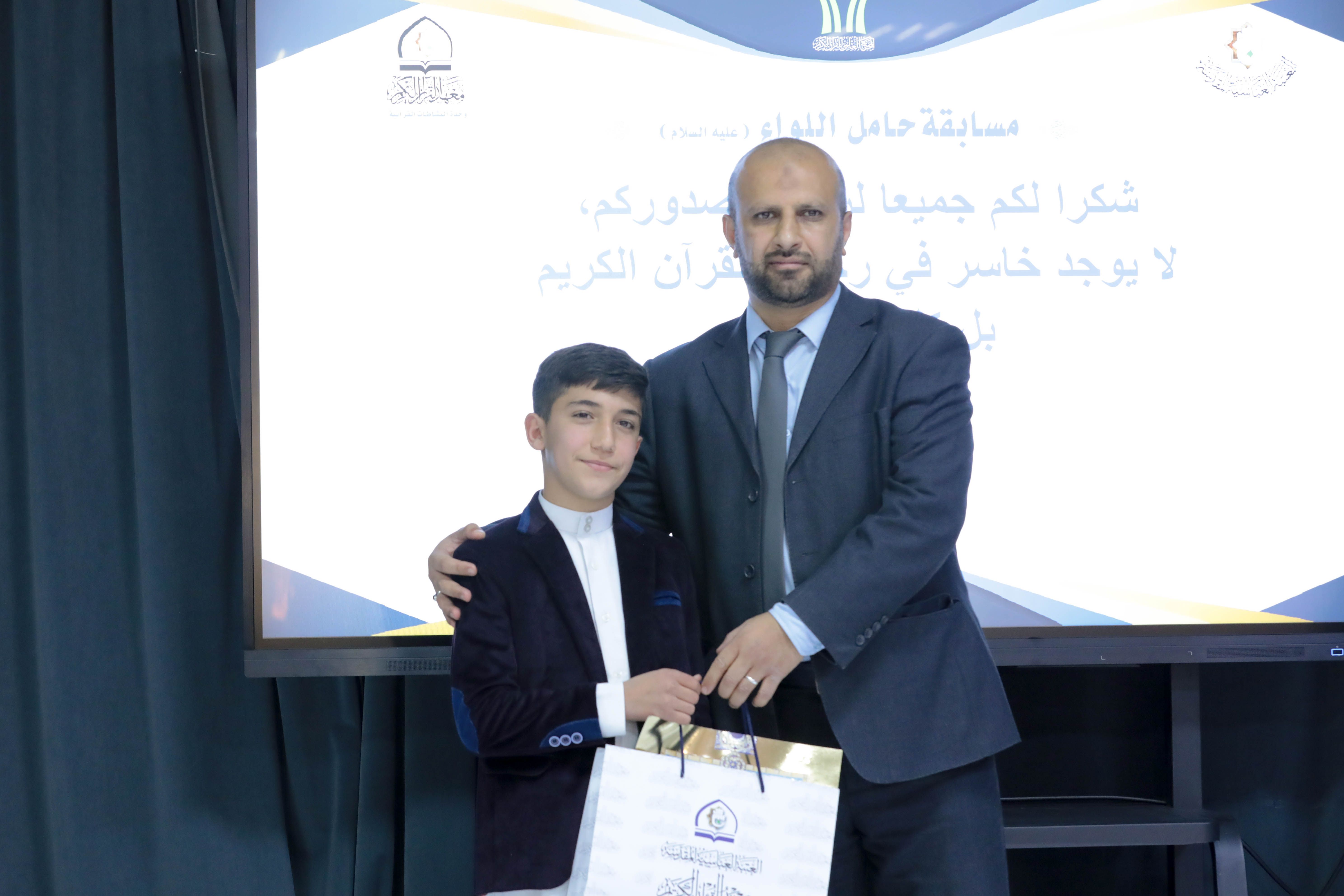نظّم معهد القرآن الكريم التابع للمَجمع العلمي للقرآن الكريم في العتبة العباسية المقدسة، مسابقة بعنوان (حامل اللواء) لطلبة مشروع الدورات القرآنية في مساجد وحسينيات كربلاء المقدسة، وتضمنت المسابقة أسئلة في (القرآن الكريم، والعقائد، والفقه، والسير، والأخلاق)، وهذه الأسئلة منبثقة من دروس الطلبة التي تلقاها طيلة أيام المشروع، وجاءت بهدف ترسيخ علوم الثقلين الشريفين في أذهان الطلبة.rnشارك في المسابقة (5) فرق بفئات عمرية مختلفة، كل فريق حمل اسما من أسماء أبي الفضل العباس -عليه السلام- وهي (فريق سيد الماء، ونافذ البصيرة، والعميد، وحمال اللواء، والقمر)، وأشرف على المسابقة لجنة مختصة تكونت من الأستاذ الدكتور (حيدر الشلاه)، والأستاذ (حسين الخفاجي)، وشهدت تنافسًا كبيرًا من لدن المشاركين، وحصل على المركز الأول في المسابقة فريق (نافذ البصيرة)، وتلاها ثانيًا فريق (العميد)، والثالث فريق (سيد الماء)، وختامًا تم توزيع الجوائز على الفرق المشارك في المسابقة.rnيذكر ان المشاركين في المسابقة هم طلبة مشروع (حامل اللواء القرآني) المقام من لدن وحدة النشاطات القرآنية في المعهد في مساجد وحسينيات كربلاء المقدسة.