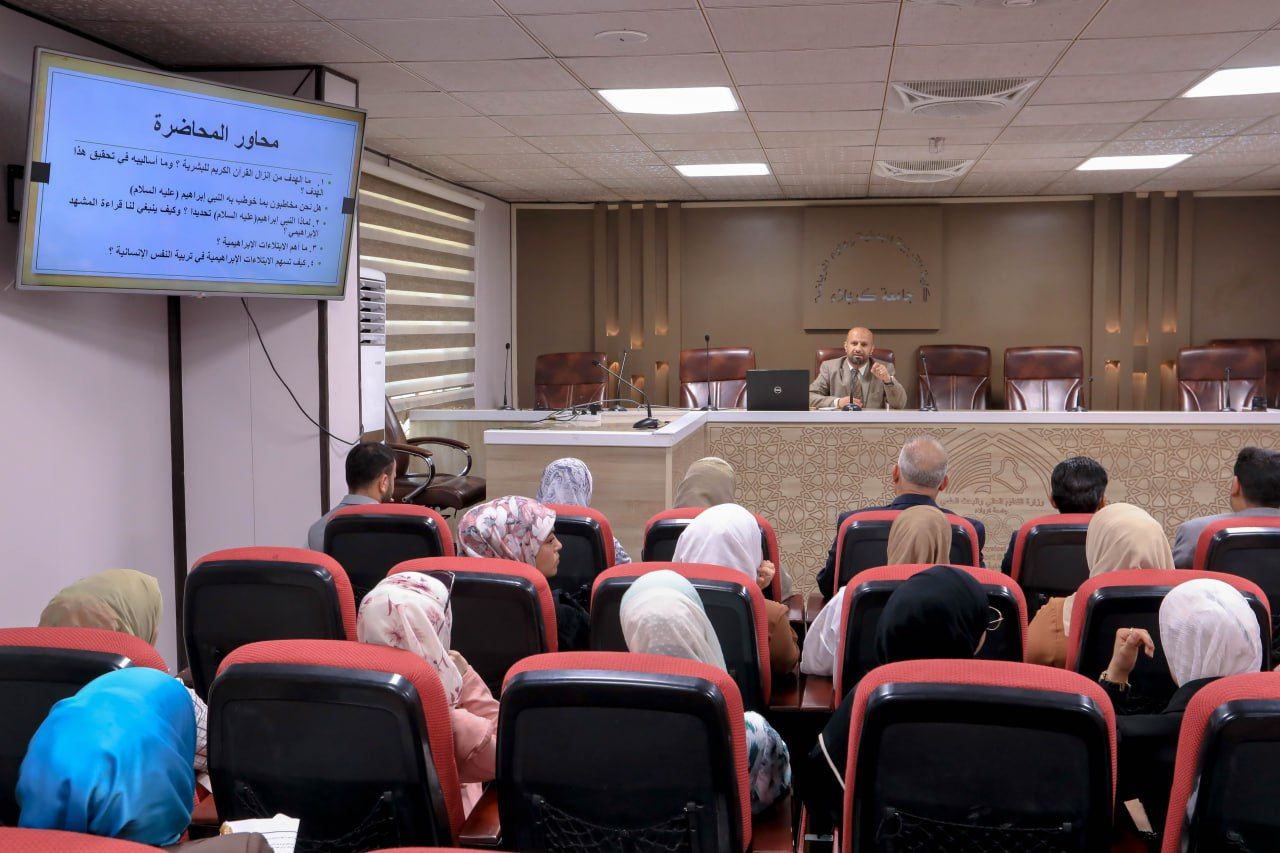 أقام معهد القرآن الكريم التابع للمجمع العلمي للقرآن الكريم في العتبة العباسية المقدسة ندوة قرآنية صباح اليوم الأربعاء في كلية التربية البدنية وعلوم الرياضة في جامعة كربلاء قدّمها الأستاذ الدكتور حيدر الشلاه.rnالندوة أقيمت تحت عنوان (الابتلاءات الإبراهيمية وأثرها في تربية النفس الإنسانية) متضمّنة جملة من الدروس والقيم الأخلاقية المستفادة من النصوص القرآنية التي تحدثت عن الابتلاءات التي تعرّض لها نبي الله إبراهيم عليه السلام.rnيذكر أن الندوة تندرج ضمن فعاليات المشروع القرآني في الجامعات والمعاهد العراقية الذي أنطلق في جامعة كربلاء وتقام فعالياته في عدد من كلياتها وسط استجابة وإقبال من أساتيذها وطلبتها.