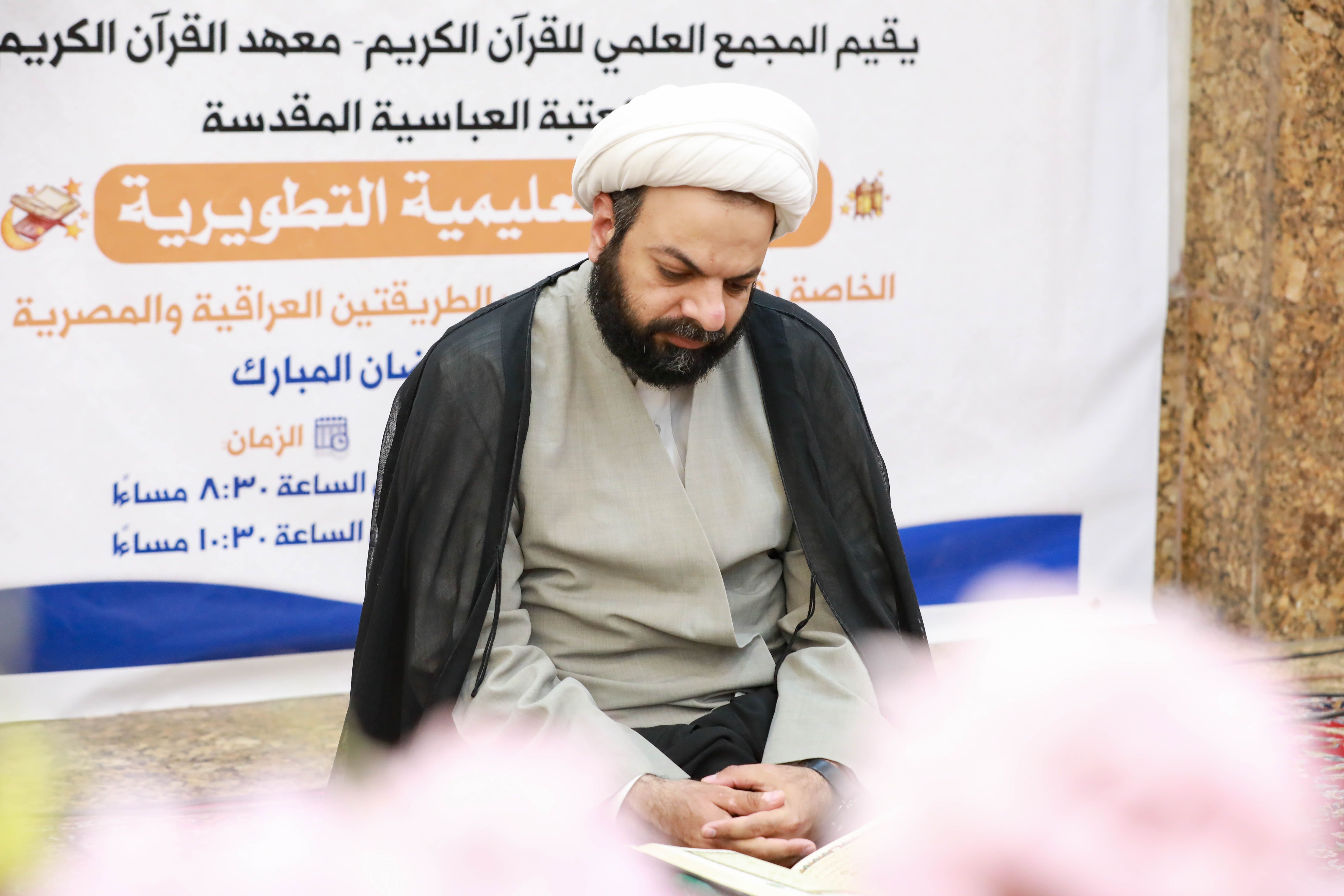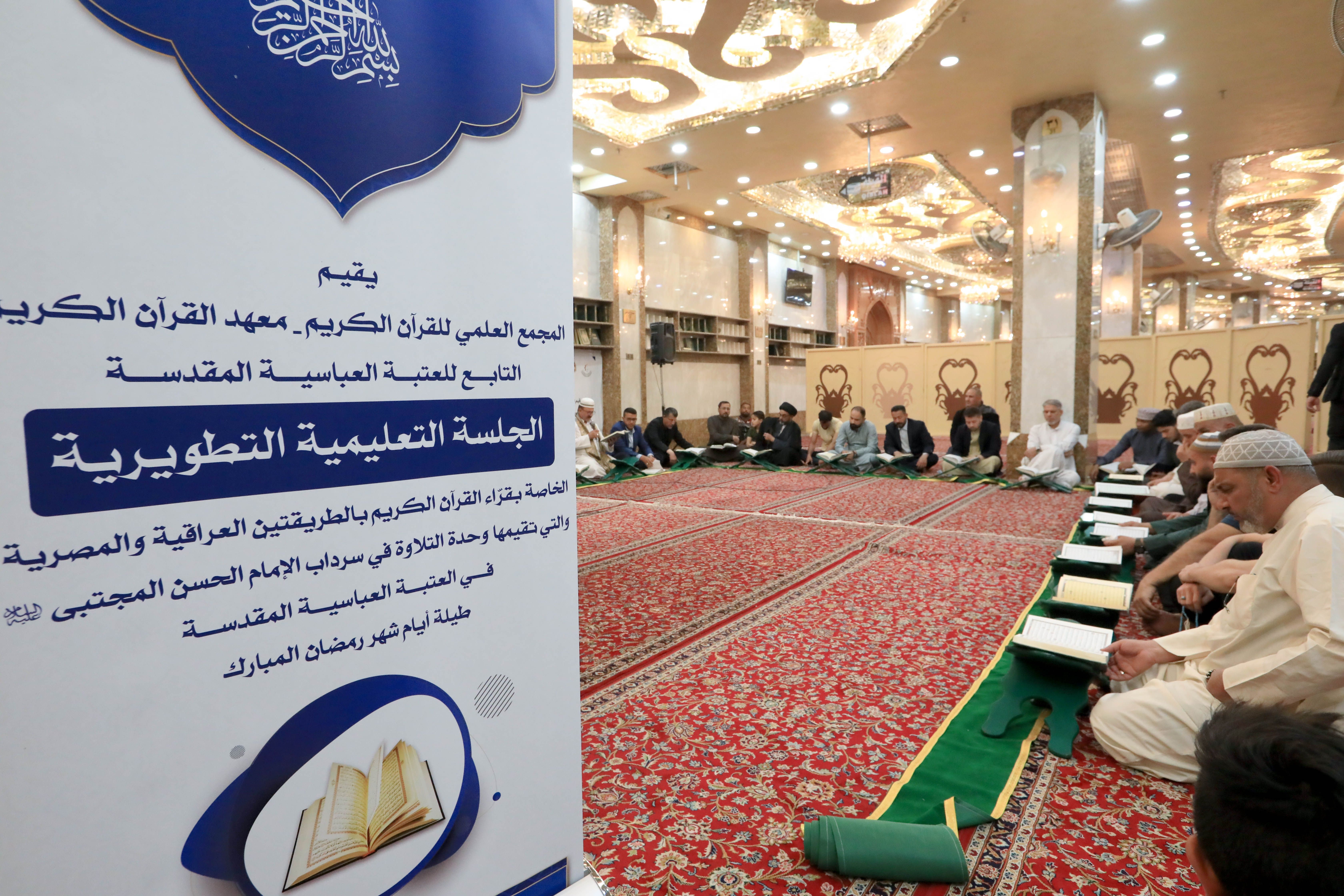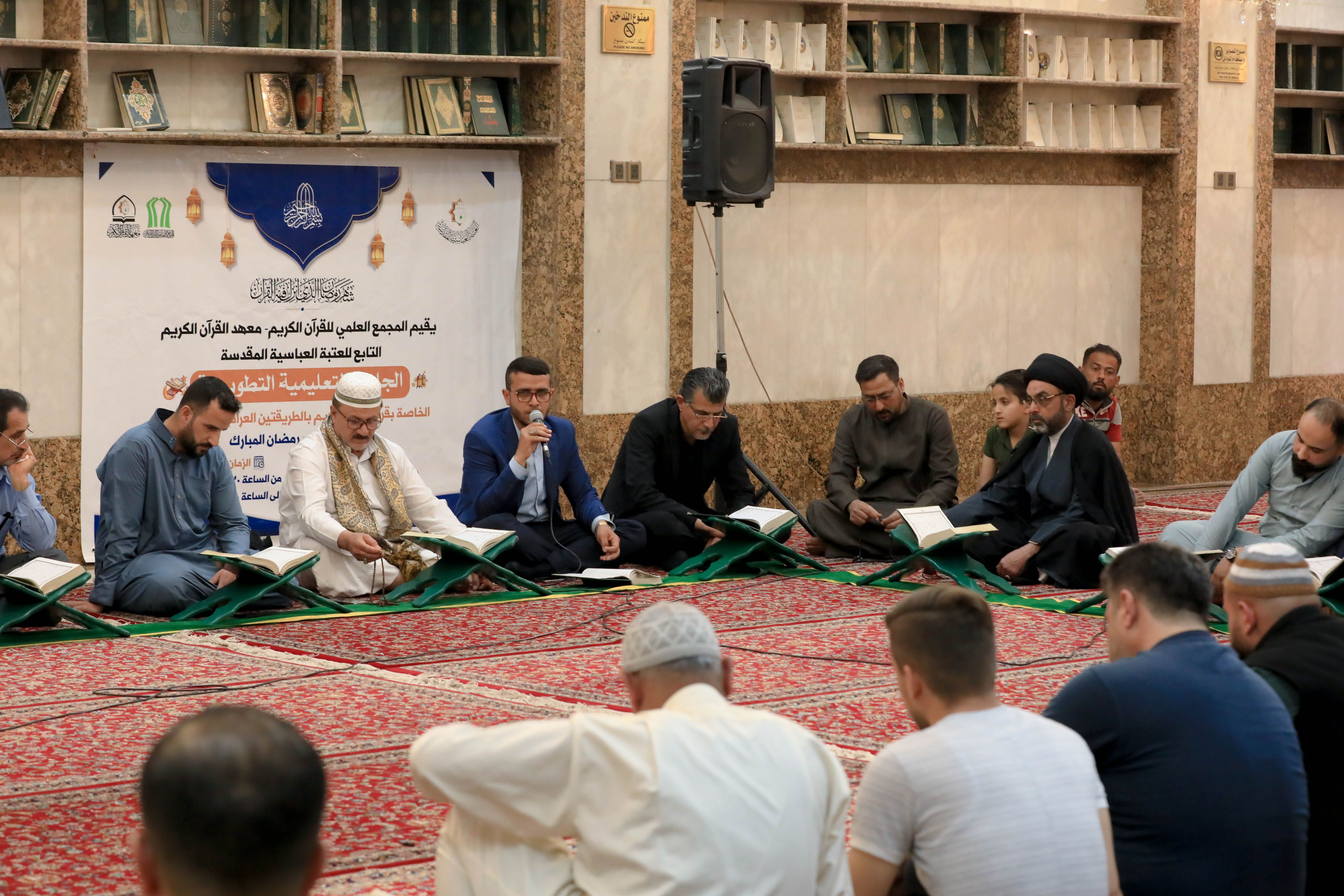 أعد معهد القرآن الكريم التابع للمَجمع العلمي للقرآن الكريم في العتبة العباسية المقدسة ضمن برامجه القرآنيّة في شهر رمضان، سلسلة من الجلسات التعليمية وضمنها الجلسة القرآنية التعليمية التي تقام من لدن وحدة التلاوة التابعة للمعهد في سرداب الإمام الحسن -عليه السلام- ويشارك فيها جمعٌ من القرّاء والزائرين الوافدين إلى كربلاء.rn الجلسة تستمر طيلة أيام شهر رمضان وتنطلق عند الساعة التاسعة من مساء كل يوم، وتتناول أهمية القراءة الصحيحة للكتاب العزيز وتلاوته، وتكون القراءة بنيّة التعلّم سواءً كان المشارك قارئاً أو غير قارئ، وتطرح خلال الجلسة بعض الملاحظات والتجويدية والتصحيحية، لتحقيق الفائدة للمشاركين في الجلسة.