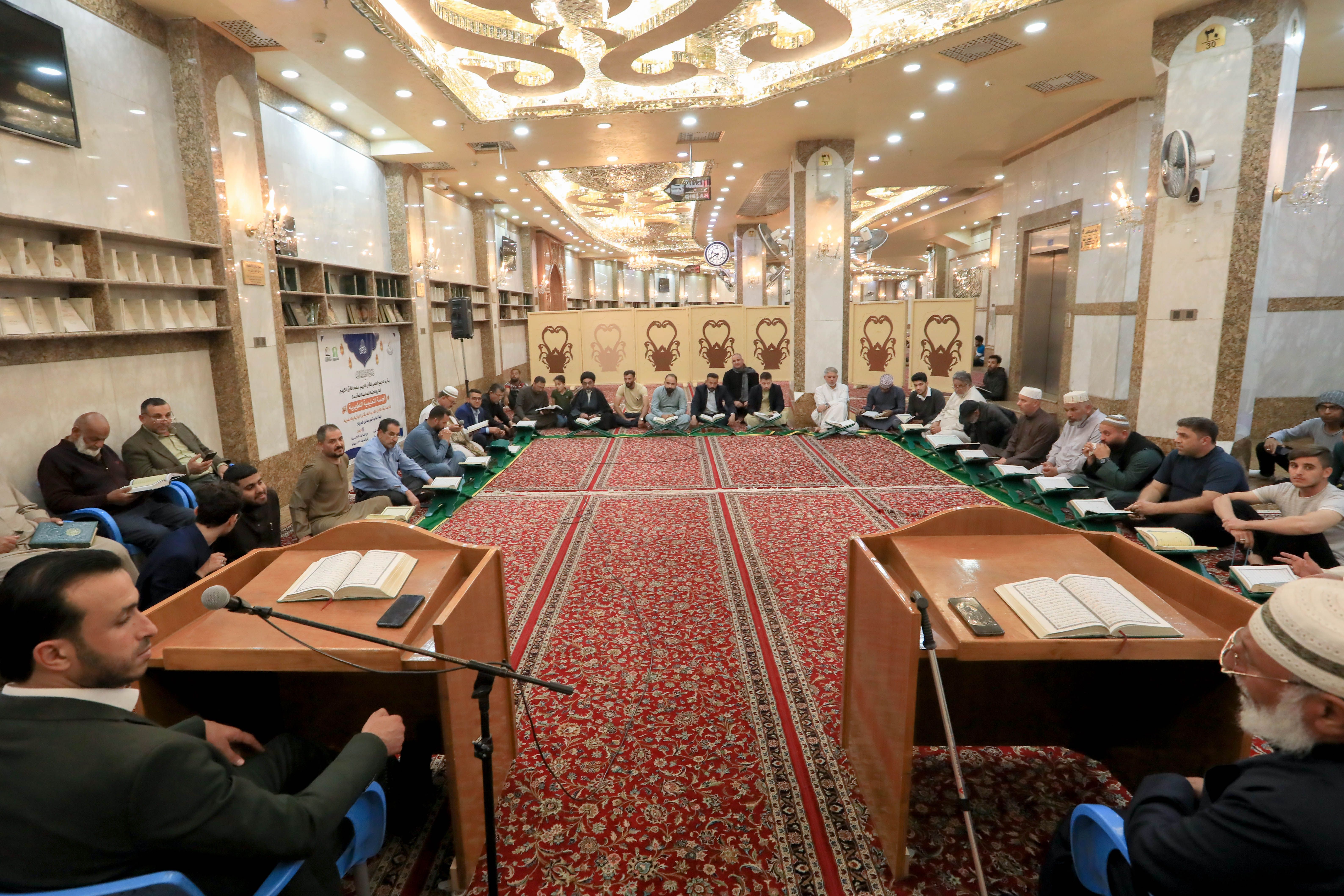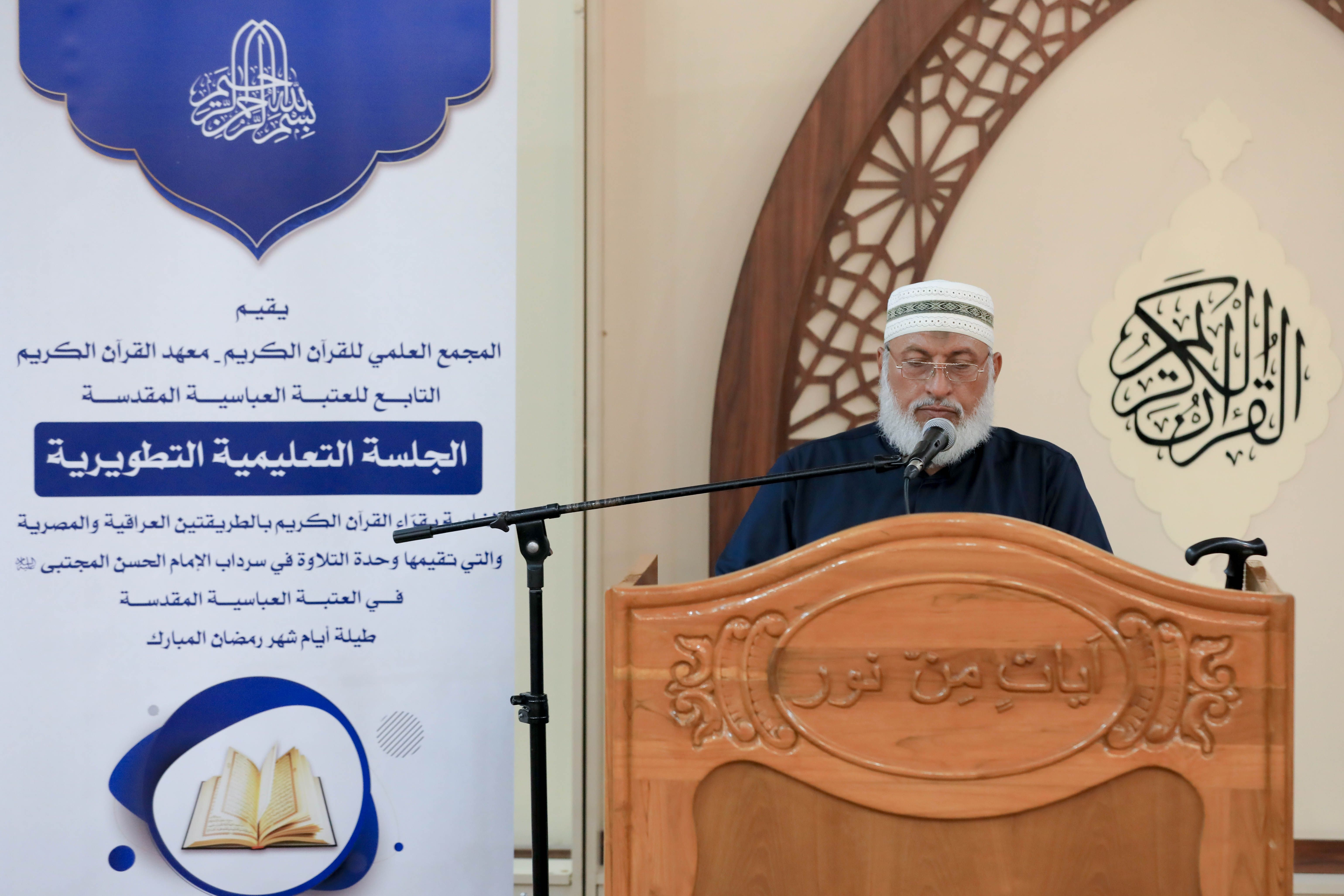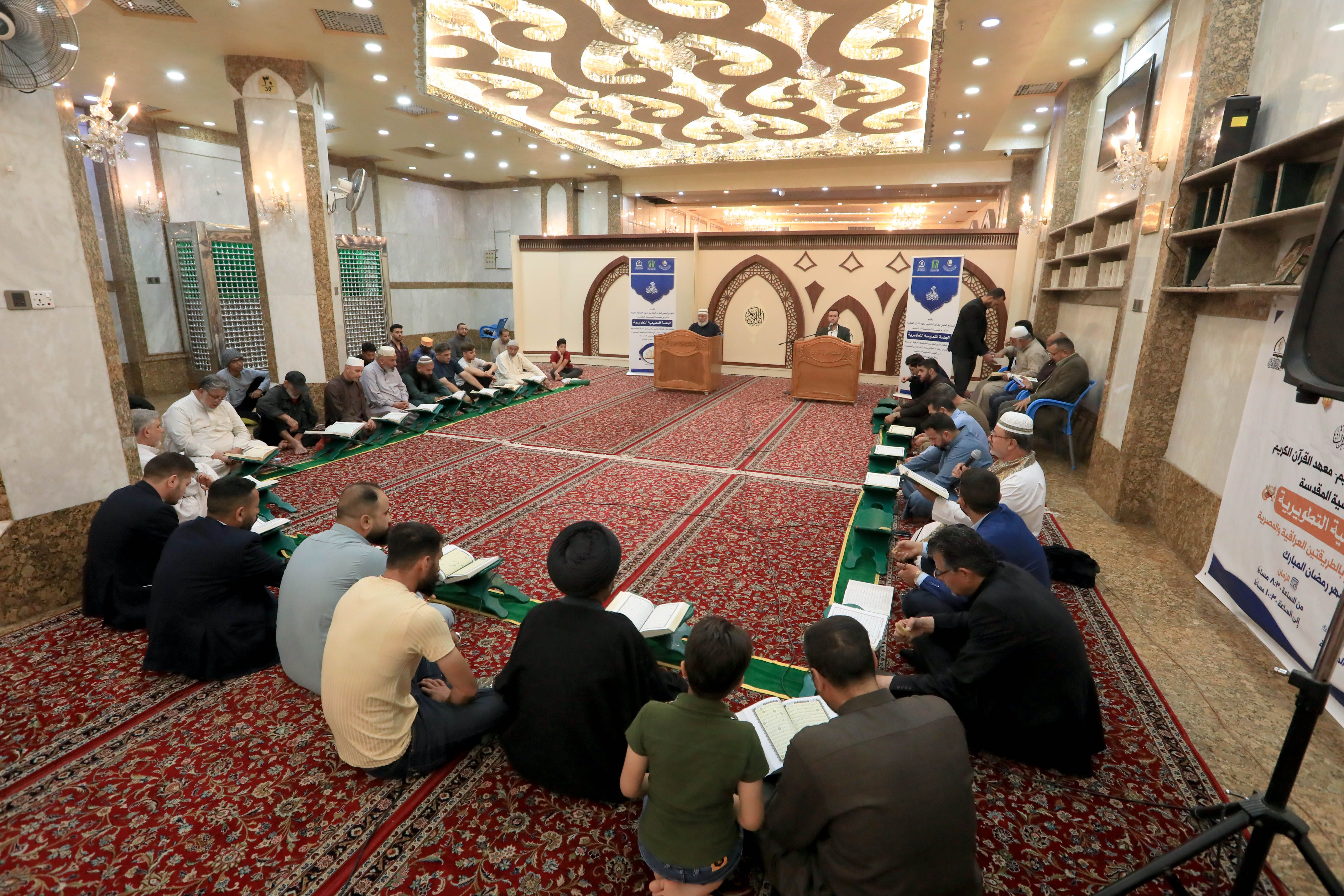أعد معهد القرآن الكريم التابع للمَجمع العلمي للقرآن الكريم في العتبة العباسية المقدسة ضمن برامجه القرآنيّة في شهر رمضان، سلسلة من الجلسات التعليمية وضمنها الجلسة القرآنية التعليمية التي تقام من لدن وحدة التلاوة التابعة للمعهد في سرداب الإمام الحسن -عليه السلام- ويشارك فيها جمعٌ من القرّاء والزائرين الوافدين إلى كربلاء.rn الجلسة تستمر طيلة أيام شهر رمضان وتنطلق عند الساعة التاسعة من مساء كل يوم، وتتناول أهمية القراءة الصحيحة للكتاب العزيز وتلاوته، وتكون القراءة بنيّة التعلّم سواءً كان المشارك قارئاً أو غير قارئ، وتطرح خلال الجلسة بعض الملاحظات والتجويدية والتصحيحية، لتحقيق الفائدة للمشاركين في الجلسة.