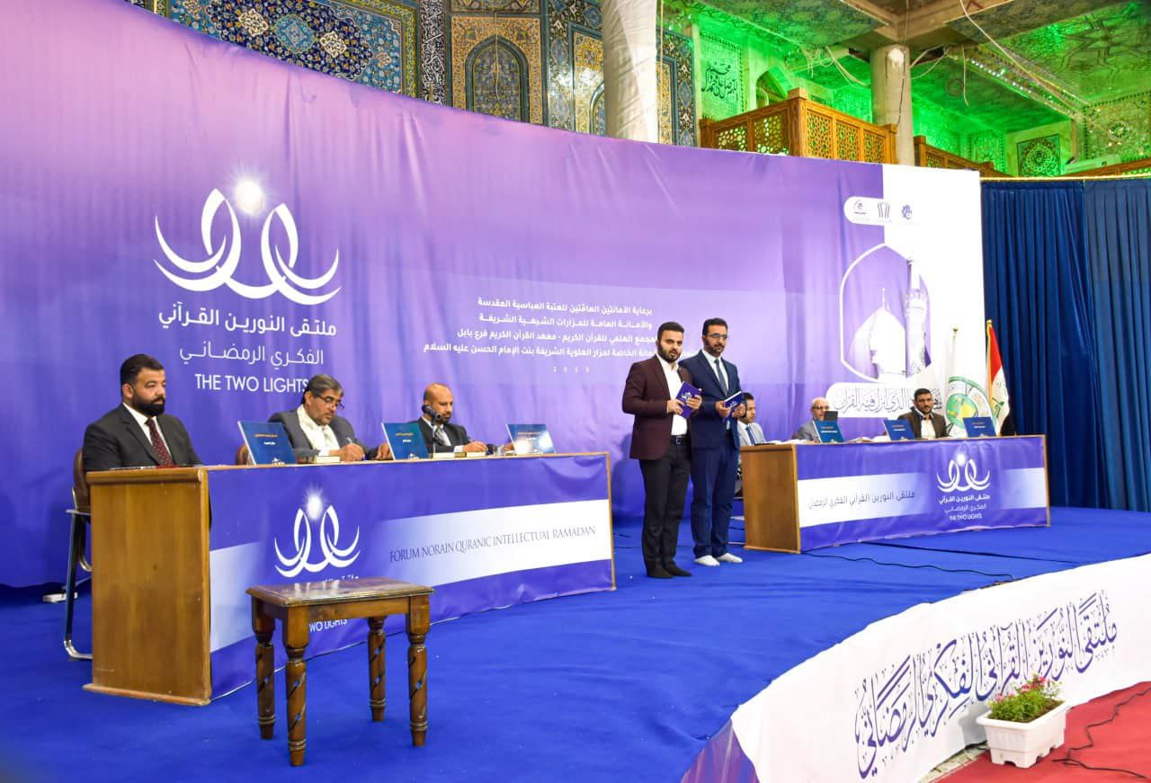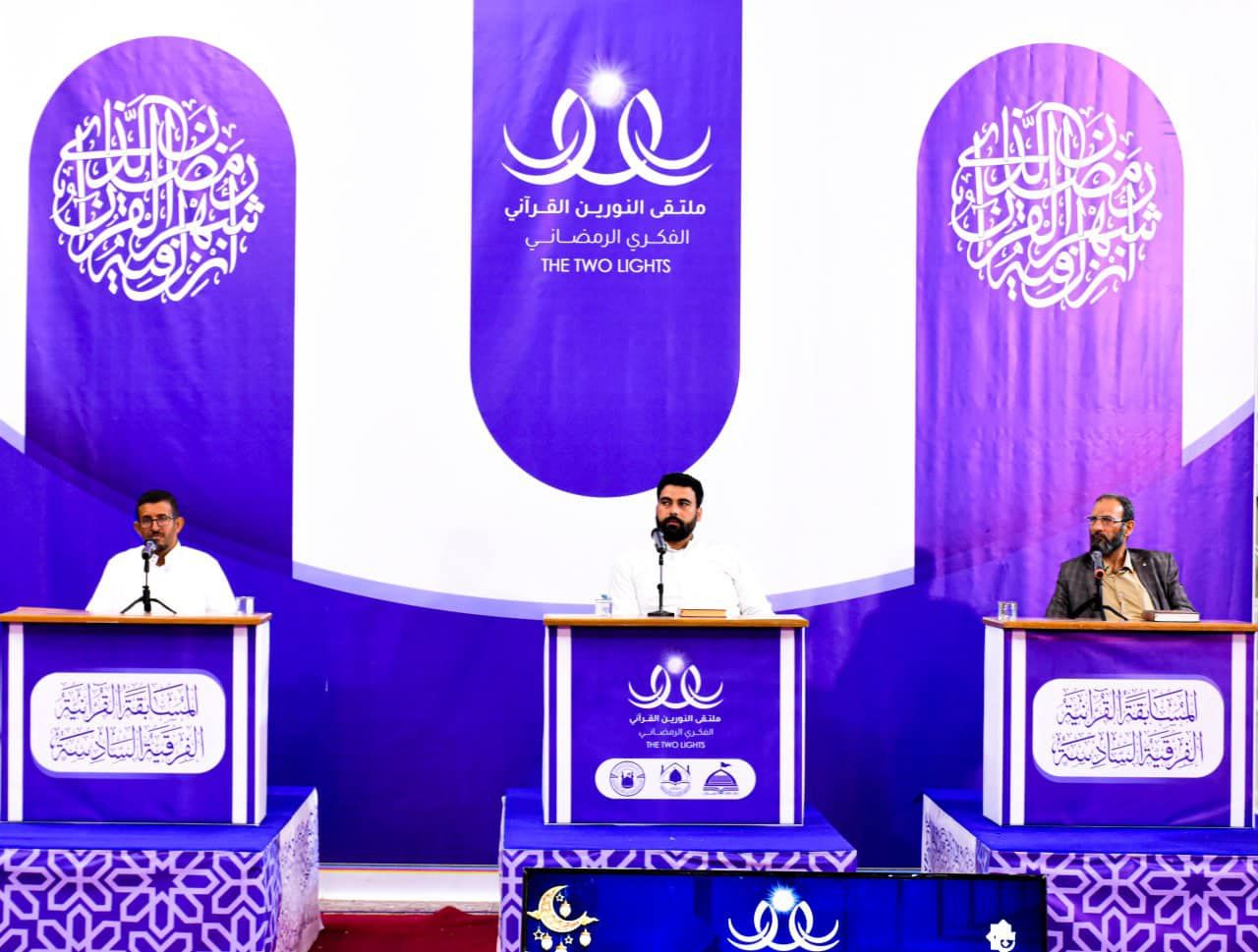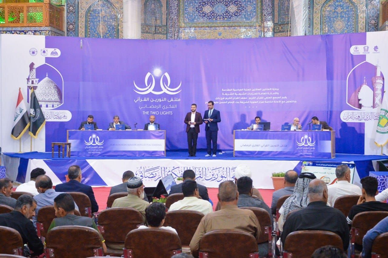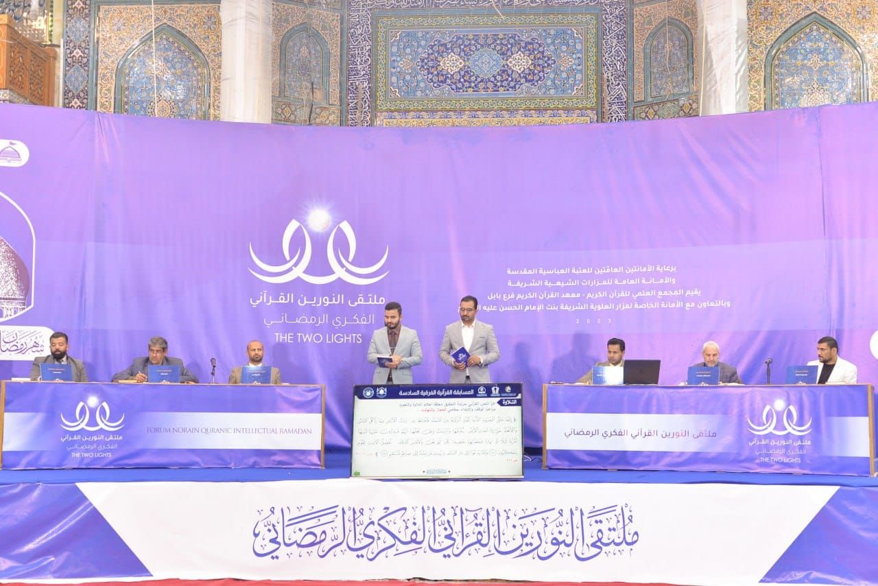 أقام معهد القرآن الكريم فرع بابل التابع للمَجمع العلمي للقرآن الكريم في العتبة العباسية المقدسة، وبالتعاون مع الأمانة الخاصة لمزار العلوية الشريفة بنت الحسن -عليهما السلام- المسابقة القرآنية الفرقية بنسختها السادسة، بمشاركة (14) فريقًا، وسط جو من التنافس القرآني الكبير.rnالمسابقة التي تُعنى بالتلاوة، والحفظ، والتفسير، أقيمت ضمن برنامج ملتقى النورين الفكري في الصحن الطاهر للعلوية الشريفة، ومثلّت الفرق المشاركة فيها المدارس، والجامعات والمزارات والمؤسسات القرآنيّة في محافظة بابل.