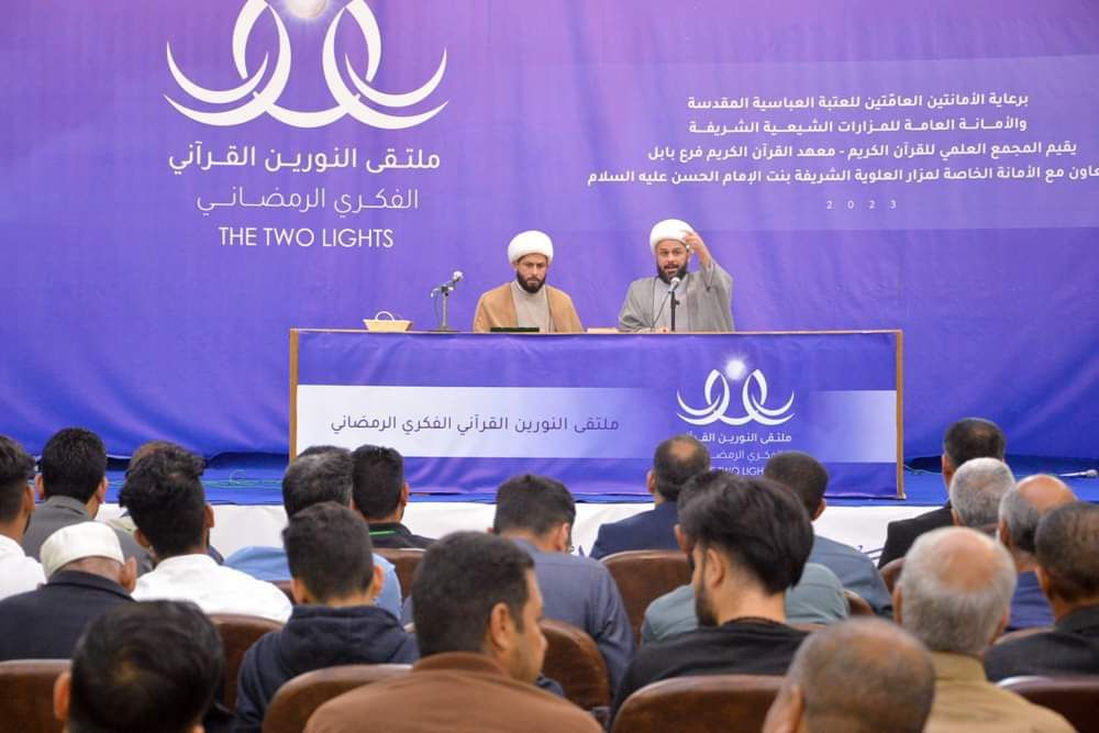 أطلق معهد القرآن الكريم التابع للمجمع العلمي للقرآن الكريم في العتبة العباسية المقدسة، والأمانة الخاصة لمزار العلويّة الشريفة -عليها السلام-، الندوات الفكرية ضمن فعّاليات ملتقى النورين القرآني الفكري الثاني الذي يقام في رواق صحن العلوية، بمشاركة مجموعة من الأساتذة والفضلاء.rn الندوات تهدف إلى تسليح الشباب بسلاح الفكر القرآني، وفي محاضراتها الأولى يحاضر فيها الشيخ (زمان الحسناوي)، وتعد هذه الندوات من أولويّات المعهد، والاهتمام بالشباب قرآنيًّا وفكريًّا ومعرفيًّا لتحصينهم من الأفكار المنحرفة التي تطرأ على المجتمع. rnيذكر أن فعّاليات الملتقى تبدأ من الساعة الخامسة عصرًا حتى الساعة العاشرة مساءً وتبث عبر مجموعة من القنوات الفضائية بالإضافة إلى مواقع التواصل الاجتماعي الرسميّة.