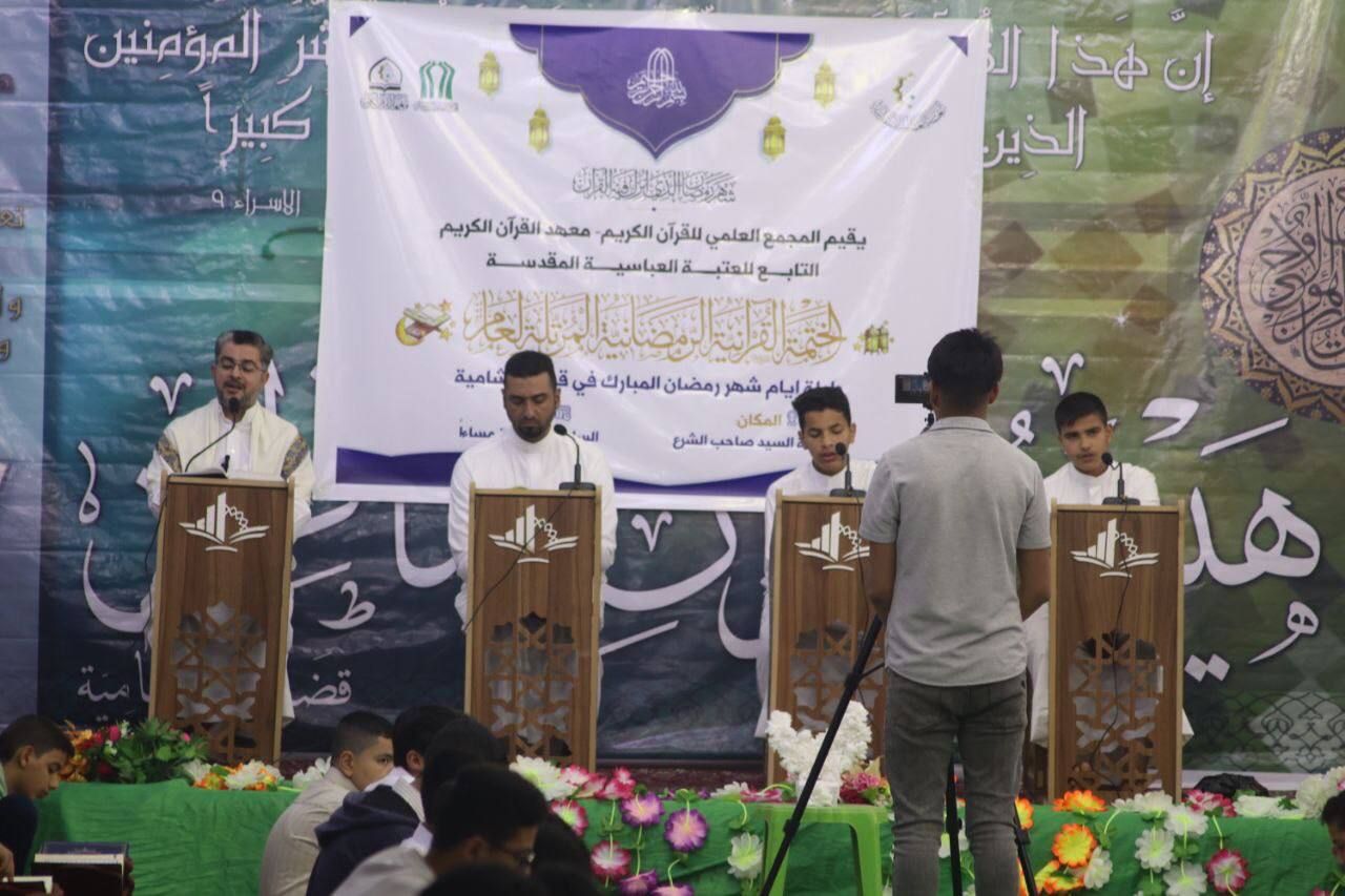 نظّم معهد القرآن الكريم فرع قضاء الشامية في محافظة الديوانية التابع للمَجمَع العلمي للقرآن الكريم في العتبة العباسية المقدسة، أكثر من (5) ختمات قرآنية مرتلة، توزعت على عددٍ من مناطق القضاء، وشارك فيها نخبة من القرّاء.rnالختمات تأتي ضمن البرنامج الذي أعدّه معهد القرآن الكريم لإحياء أيام الشهر الفضيل ولياليه، في كربلاء المقدسة والمحافظات، بهدف إشاعة الثقافة القرآنية بين أبناء بلدنا العزيز.