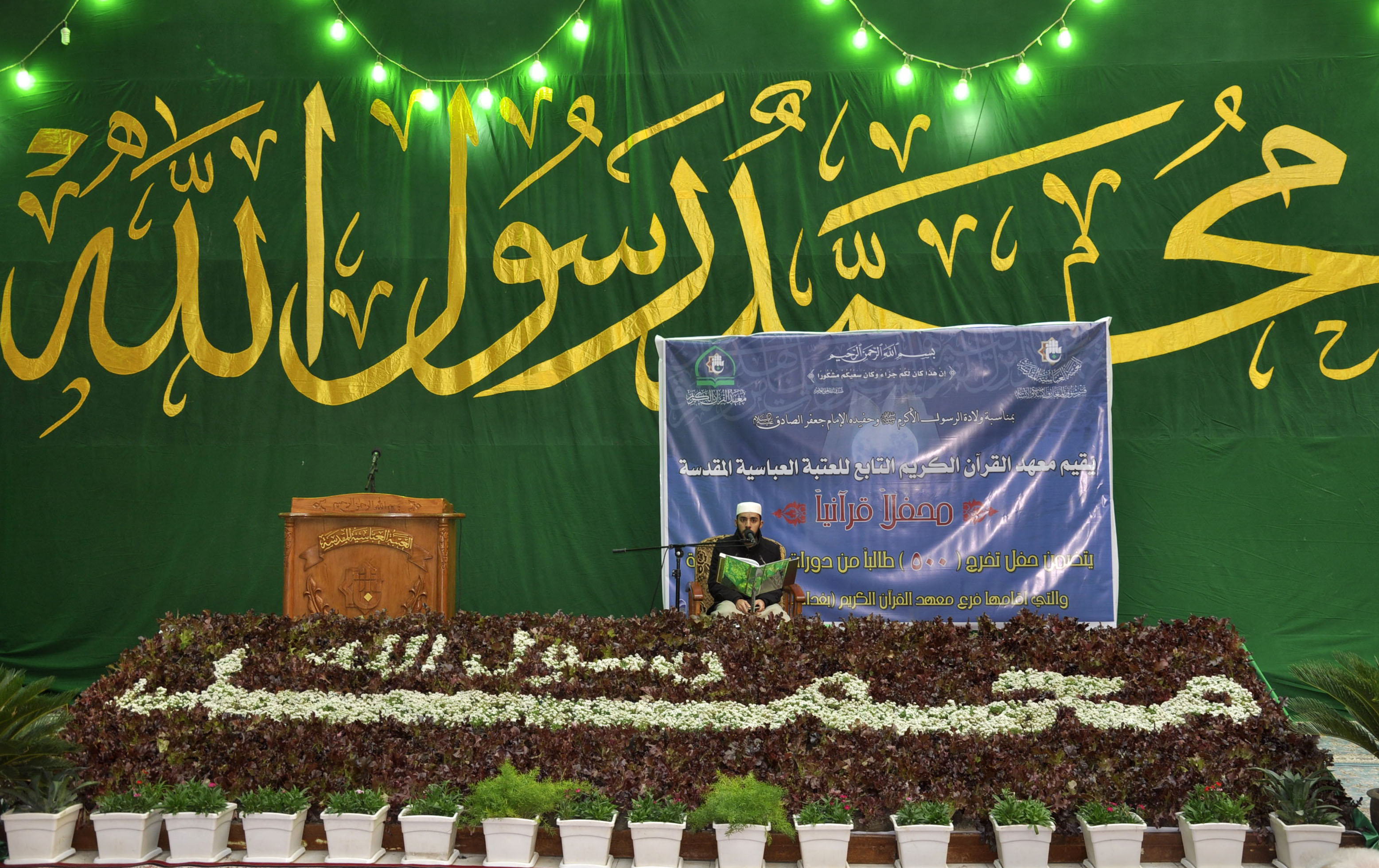 تيمّناً بذكرى المولد المبارك للنبيّ الأكرم محمد(صلى الله عليه وآله) وحفيده الإمام جعفر الصادق(سلام الله عليه) احتفى معهدُ القرآن الكريم التابع لقسم شؤون المعارف الإسلامية والإنسانية في العتبة العباسيّة المقدّسة بتخرّج (500) طالب وطالبة من المشتركين في دورات أحكام تلاوة التي أقامها فرع معهد القرآن الكريم في بغداد/ مدينة الشعب) ، حيث أُقيم حفلٌ بهيجٌ لهم في صحن أبي الفضل العباس(عليه السلام) وذلك بعد ظهر يوم الثلاثاء (17ربيع الأوّل 1437هـ) الموافق لـ(29كانون الأوّل 2015م). تخلّلت الحفل تلاواتٌ قرآنيةٌ مباركة وتواشيح دينية لمجموعة من القراء منهم (السيد حسنين الحلو قارئ العتبتين المقدستين والقارئ الشاب ضرغام جهادي والقارئ علي الساعدي كما تضمن الحفل كلمةٍ لمدير معهد القرآن الكريم الشيخ جواد النصراوي التي بيّن فيها:هذا اليوم هو يومٌ مبارك، ففيه ذكرى مولد منقذ البشرية من الضلالة الى الهدى وصاحب الرسالة السمحاء والرحمة الإلهية، خير خلق الله أجمعين وخاتم الأنبياء والمرسلين أبي القاسم محمد(صلى الله عليه وآله) المعلّم الأوّل للقرآن الكريم، وذكرى ولادة حفيده ومكمّل رسالته إمامنا ومقتدانا جعفر الصادق(سلام الله عليه)، فمباركٌ لكم هذا التخرّج يا من حملتم القرآن الكريم وتعلّمتم أحكامه في تلاوته وتجويده، ومباركٌ للمشرفين على هذه الدورات لهذا الغرس القرآني المبارك، ونسأل الله تعالى أن يجعلهم من التالين لكتاب الله تعالى والعاملين به، وأن يمنّ على العراق وأهله بالأمان والانتصار على العصابات الإرهابية والتكفيرية ببركات القرآن وصاحب هذه الذكرى. واختُتِمَ الحفلُ الذي شهد حضوراً واسعاً من قبل الطلبة والطالبات المتخرّجات من هذه الدورة بتقديم الشهادات والهدايا التقديرية للأوائل على الدورة والمشتركين فيها وكلّ من ساهم بإنجاح هذه الدورات القرآنية. الجدير بالذكر أنّ هذه الدورات القرآنية التي أُقيمت بإشراف أساتذة قرآنيّين مختصّين هي جزءٌ من دوراتٍ أخرى تُقيمها فروع معهد القرآن الكريم في محافظة كربلاء المقدّسة والمحافظات الأخرى، وتأتي انطلاقاً من قول الرسول الكريم(صلى الله عليه وآله): (خيارُكُم من تعلّم القرآن وعلّمه)، وضمن الخطّة السنوية التي أعدّها معهدُ القرآن الكريم والتي تهدف الى ترسيخ وتجذير العطاء القرآني وثقافته في نفوس المؤمنين والعمل على تفعيلها بين أوساط المجتمع من أجل الارتقاء بمستوى القرّاء من خلال تدريبهم على أحكام التلاوة الصحيحة مع الضبط والإتقان، وتحسين وتصحيح الأداء القرآني مع مراعاة أحكام التجويد وتعليم المشاركين القراءة الصحيحة للقرآن الكريم، وبيان مخارج الحروف والأصوات والمقامات التي يُقرأ بها الكتاب الكريم.