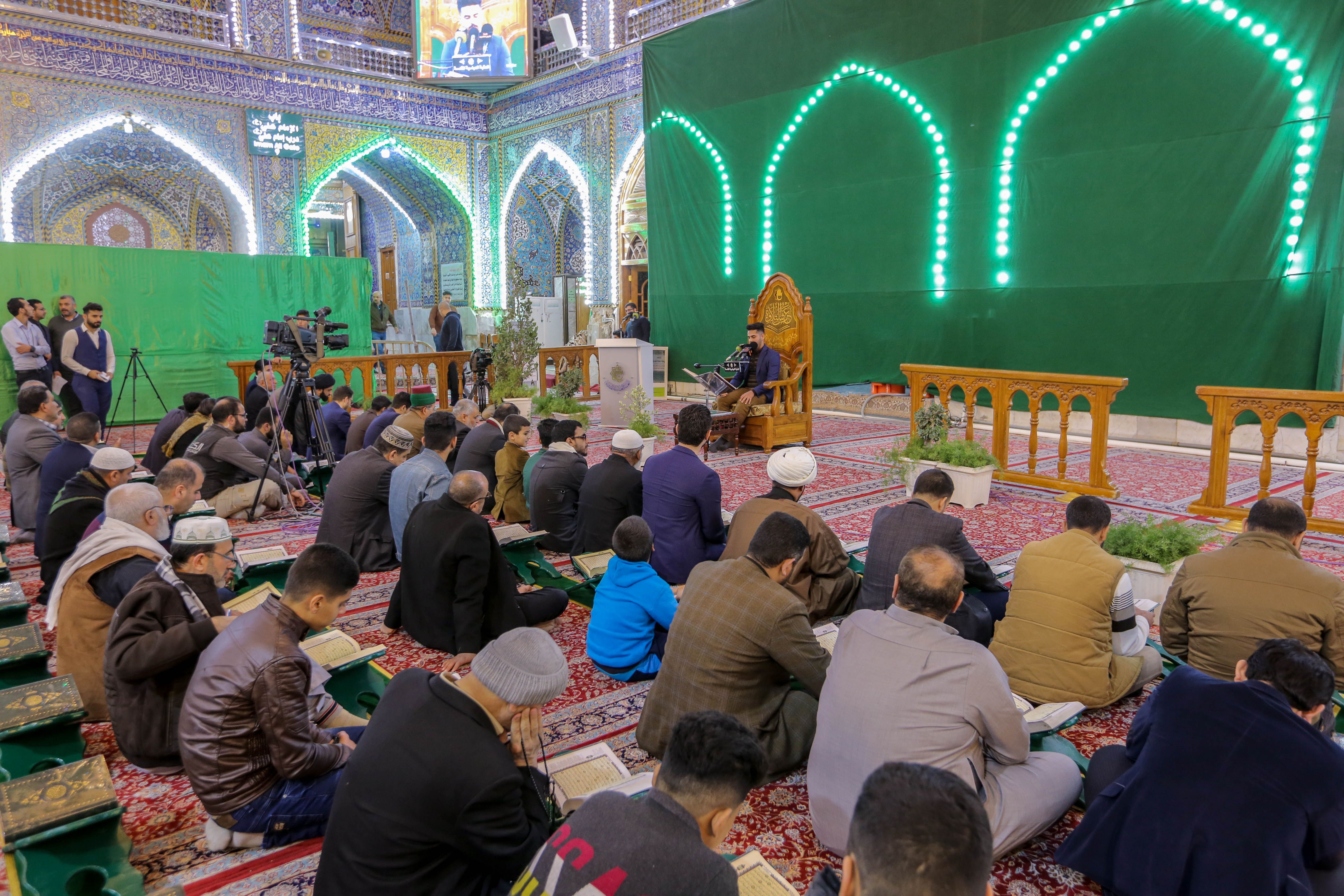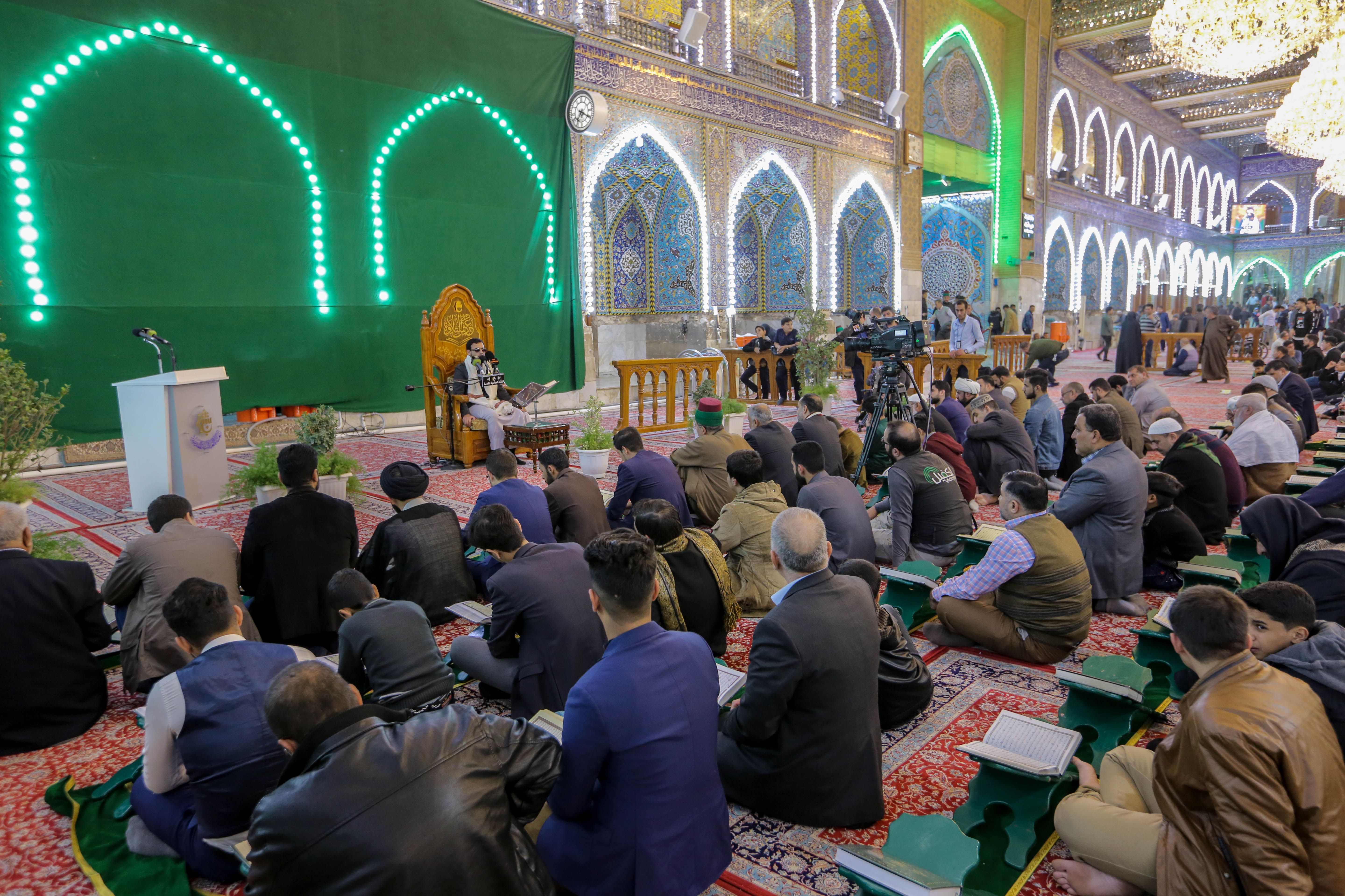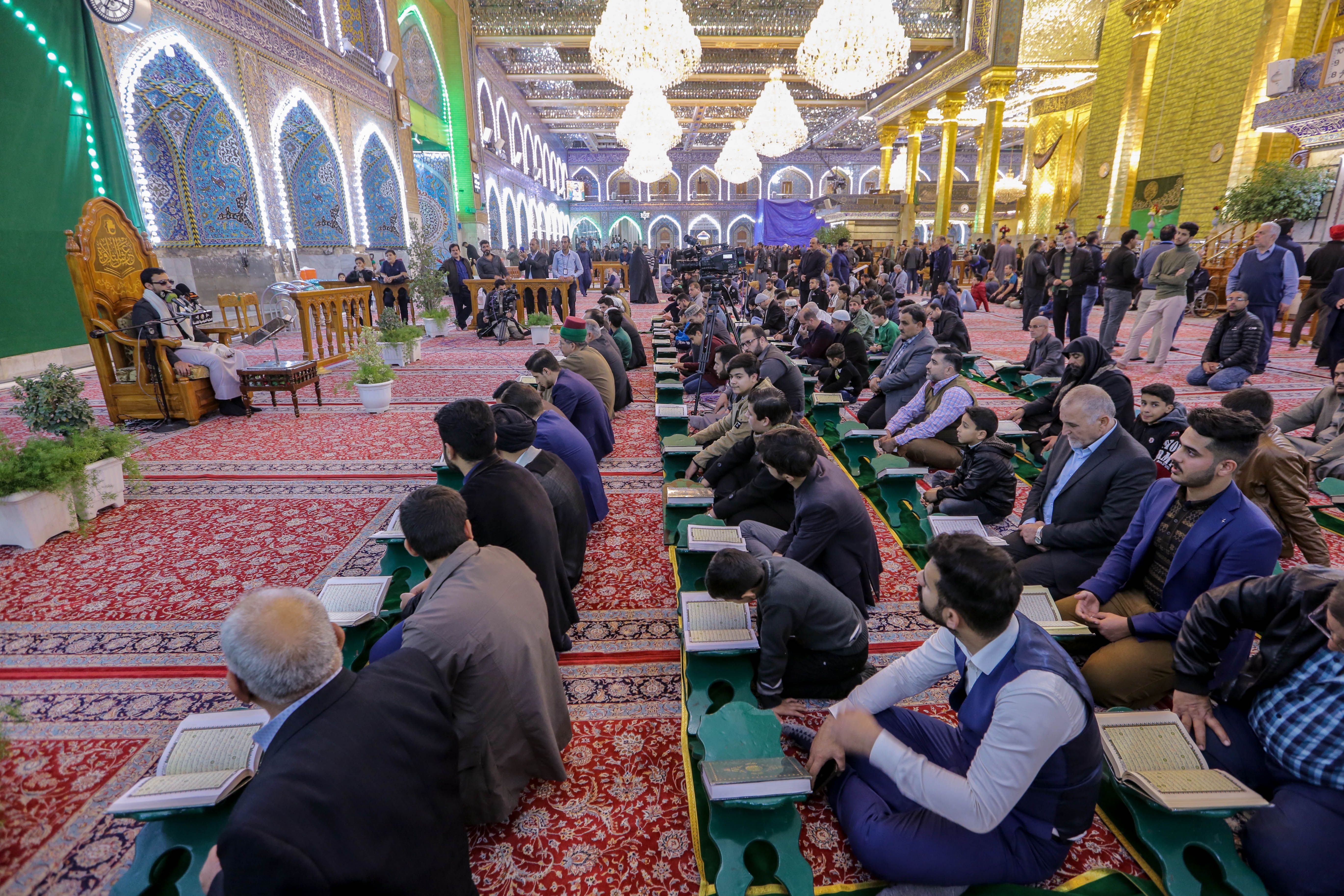 واصل مركز المشاريع القرآنية التابع لمعهد القرآن الكريم في العتبة العباسية المقدسة محافل مشروع (عرش التلاوة) والذي يقام مساء كل يوم جمعة عند الساعة السابعة مساءً في الصحن العباسي المطهر. وقد تناوبت التلاوة بالطريقتين العراقية والمصرية في محفل هذا الأسبوع فقد قرأ في الأولى كل من القارى حسين حميد جبوري والموهوب حسين الركابي من قراء معهد القرآن الكريم فرع بغداد أما الطريقة المصرية فصدحت بها حنجرتي كل من القارئ ليث العبيدي قارئ العتبة العباسية المقدسة والقارئ حسين محمد شلال أحد حفاظ فرع المعهد في بغداد. يذكر أن الزوار يحتشدون حول العرش وبتدبرون بآيات الله البينات التي تصدح بها حناجر القراء في تلك الرحاب الملكوتية فضلاً عن من يستمع لها مباشرةً عبر بث قناة كربلاء للقرآن الكريم.