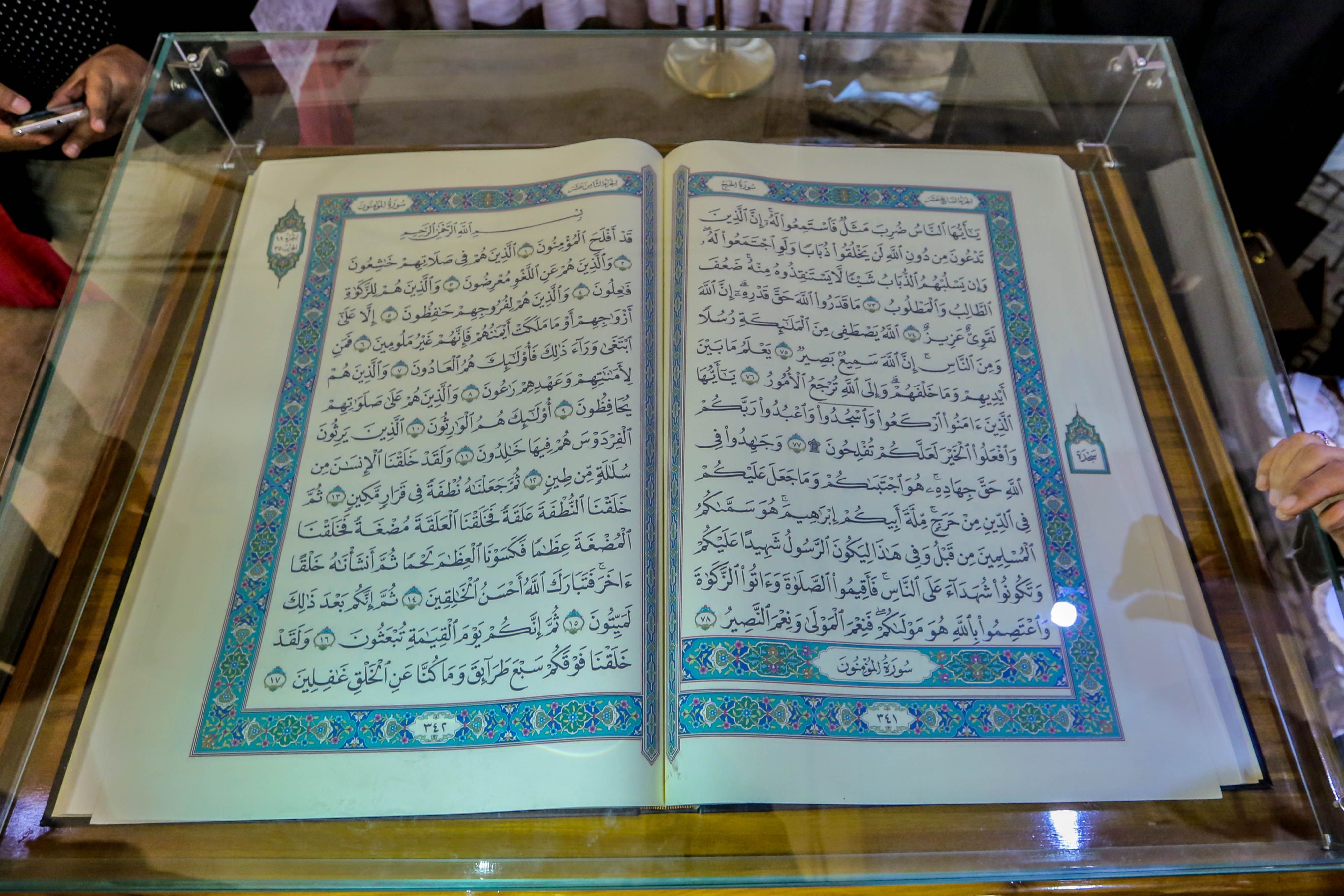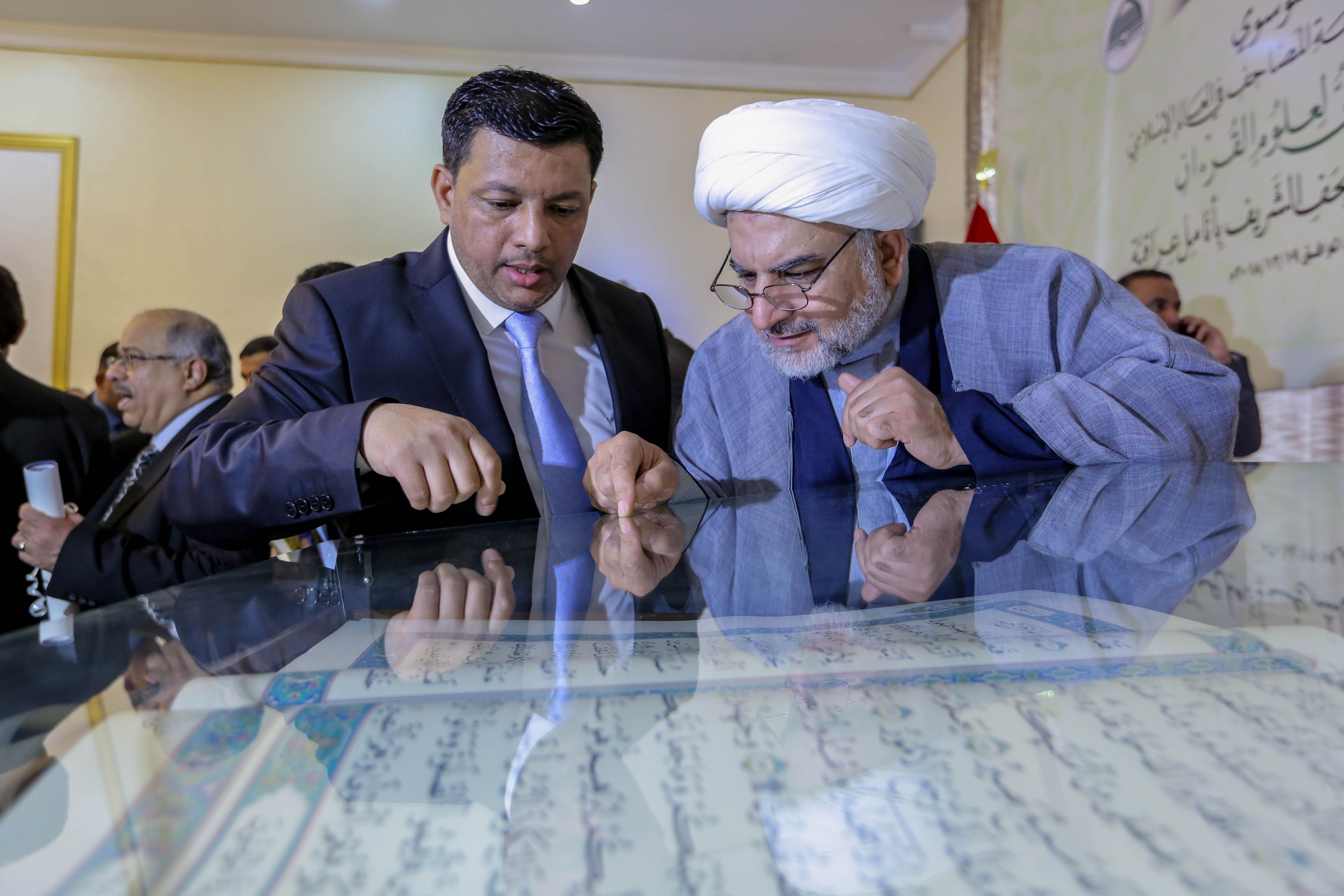 حضر وفد معهد القرآن الكريم التابع للعتبة العباسية المقدسة حفل إنجاز مشروع خط المصحف الكريم الذي خط بأنامل عراقية وأقامه المركز الوطني لعلوم القرآن التابع لديوان الوقف الشيعي، المصحف أنجز خلال عشرة أعوام حيث بدأ العمل بهِ عام 2008 وأنجز في العام الحالي واختير ان يخط بيد الخطاط العراقي هادي الدراجي، أشاد الوفد المبعوث من قبل العتبة العباسية المقدسة لحضور هذا الحفل البهيج هذه الخطوة التي تعد فريدة من نوعها وهو خط مصحف عراقي خالص وبجهود عراقية مباركة.