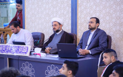 جانب من النّدوة العلميّة الموسومة بـ (الإسهامات العلميّة لمُحمّد بن الجزريّ في علم التجويد) الذي أقامها معهد القُرآن الكريم فرع النّجف الأشرف التابع للعتبة العباسية المقدسة، وكان الباحث في الندوة العلميّة (الدّكتور أحمد جاسم النجفيّ)